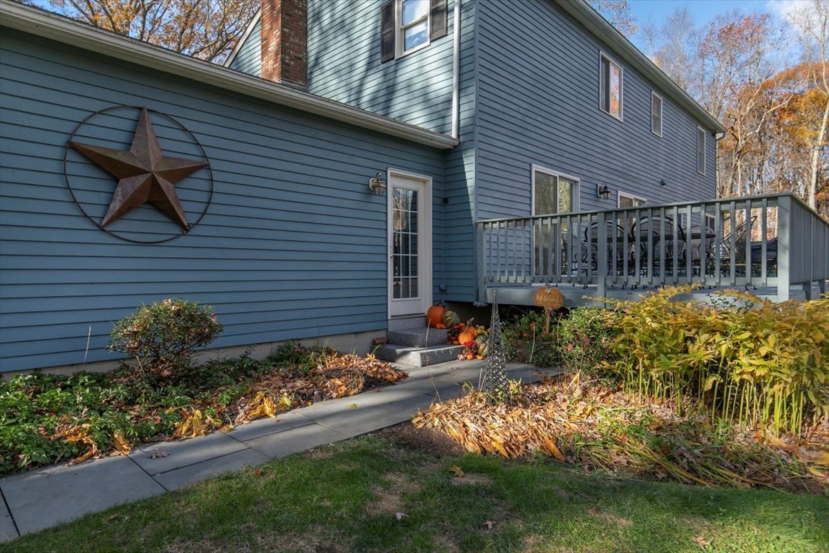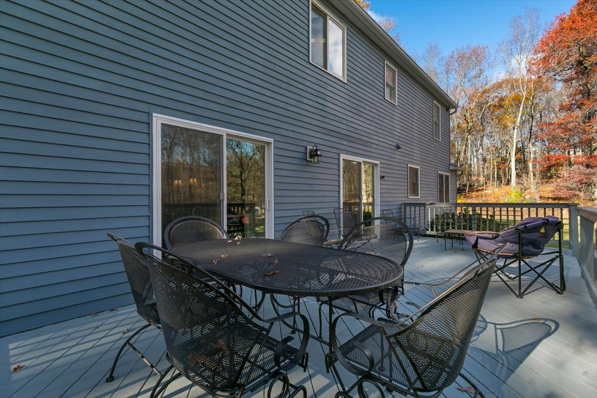 Escape to peace and privacy in this beautifully updated 4 bedroom, 2.5 bath colonial set on 2.57 wooded acres with over 3 acres of adjoining open space. Enjoy an inviting layout with an eat-in kitchen, formal dining room with fireplace, spacious living room, vaulted family room with radiant floors, and a private home office. Recent upgrades include a new roof, skylight, furnace, oil burner, Andersen sliders, gutter guards all completed in 2024 and well tank 2023. Fresh paint inside and out makes this home truly move-in ready. Located in the Newtown School District and convenient to the local train station for commuters, this cozy home combines timeless style, thoughtful updates, and the serenity of Connecticut living. Be in your new home in time for the New Year!