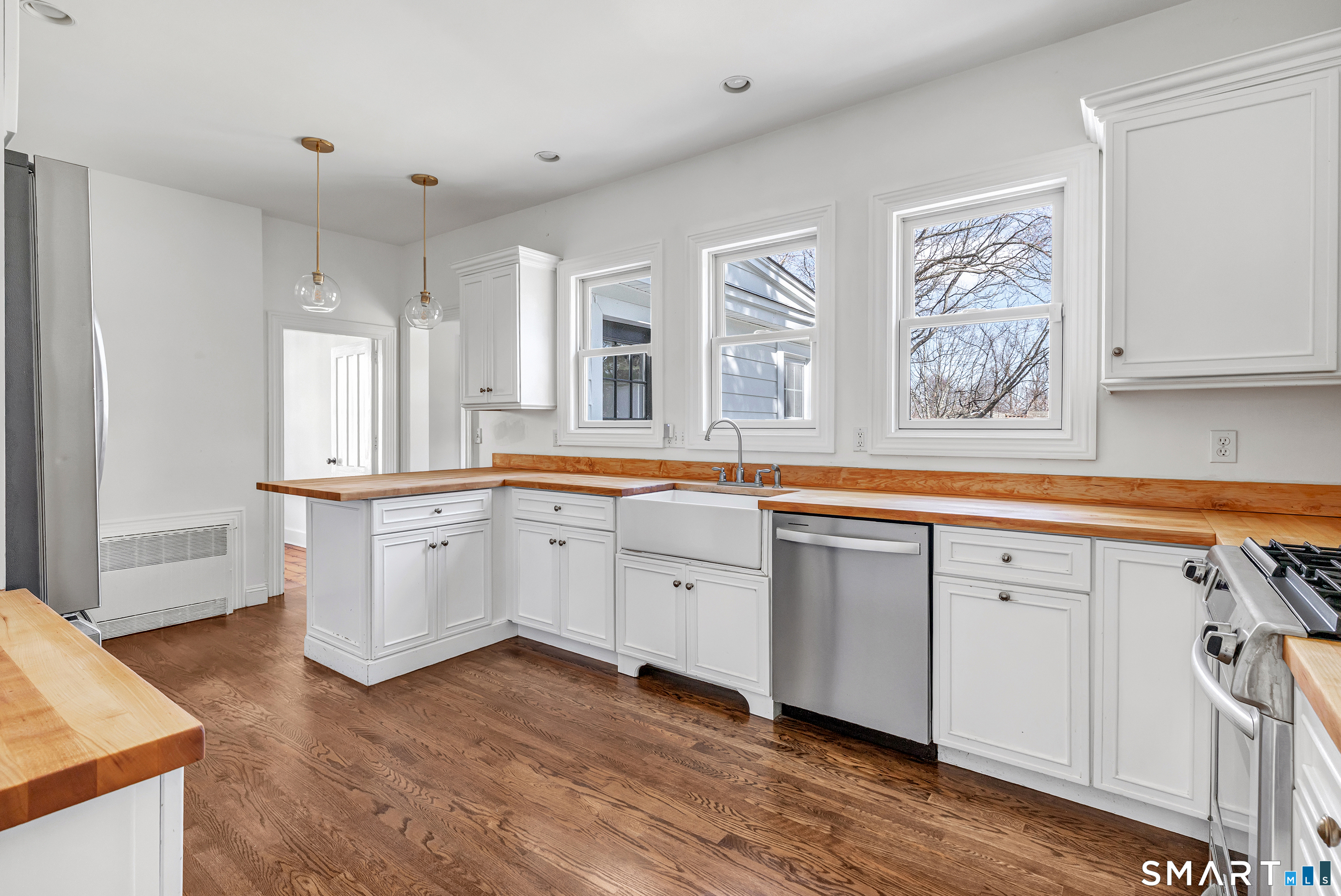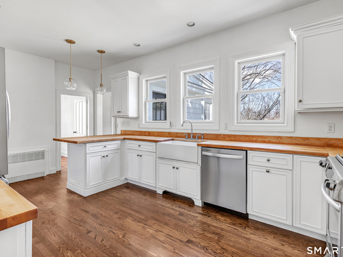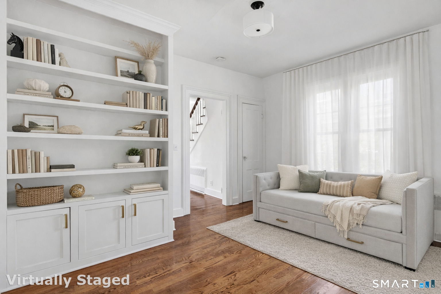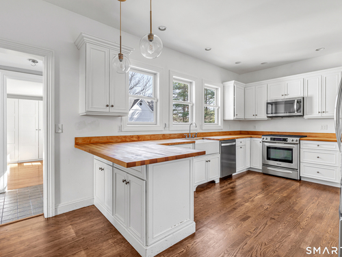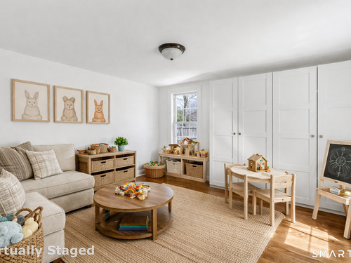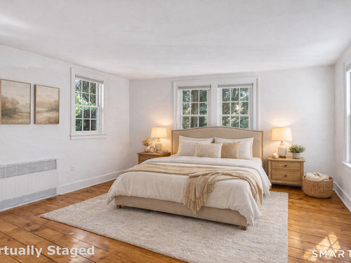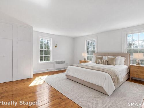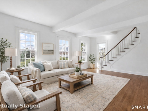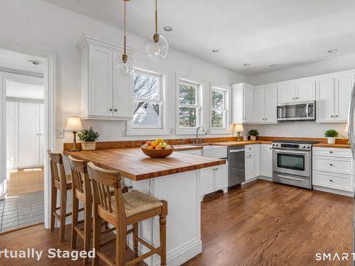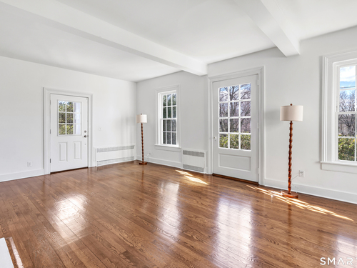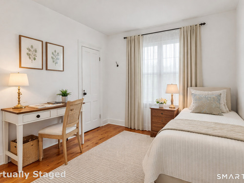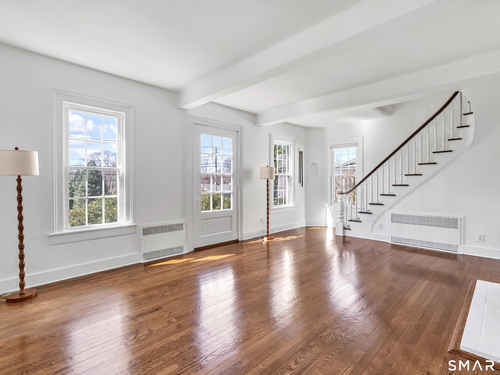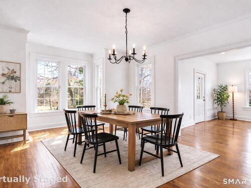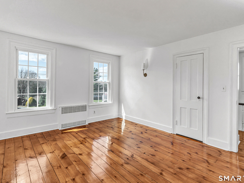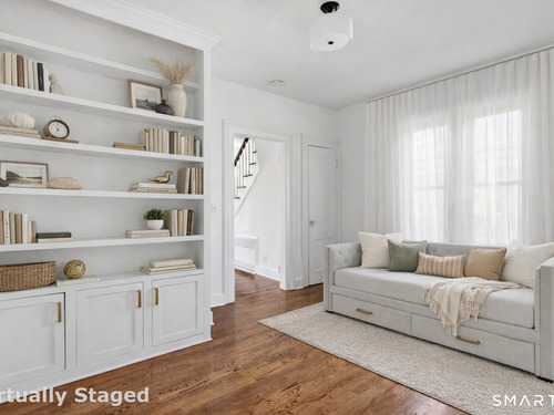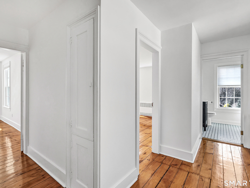 Introducing a truly special Antique Colonial, rich in history, thoughtfully updated, and beautifully suited for modern living. Ideally located in the sought-after Long Hill neighborhood, this distinctive residence, built by Lucius Burroughs in 1855, blends timeless character with the comfort and functionality today's buyers seek. From the moment you step inside, the home feels open and welcoming. With over 2,200 square feet, soaring ceilings, gleaming hardwood floors and oversized windows, natural light fills each room, creating an airy and uplifting atmosphere. The main level offers gracious flexibility. Just off the primary living spaces, a versatile room works well as a family room, playroom, or mudroom. Nearby, a first-floor bedroom sits adjacent to a full bath-ideal for guests or multigenerational living. An additional bedroom on this level, includes built-ins and a closet and may function as a bedroom as originally designed, or as a tv room/ den, library, or home office (see floor plan). At the heart of the home, the spacious kitchen features a timeless color palette and abundant storage, flowing seamlessly into the grand dining area, perfect for gatherings both large and small. The living room with access to the side porch is anchored by a gas fireplace, creating a warm and inviting space to relax. A graceful sweeping staircase rises to the second floor, adding both character and architectural charm.