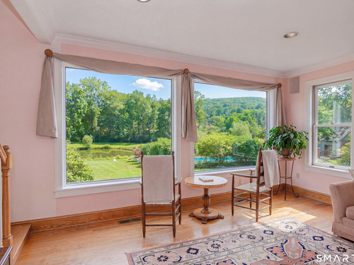 Bay/Bow Window, Beams, Book Shelves, Hardwood Floor