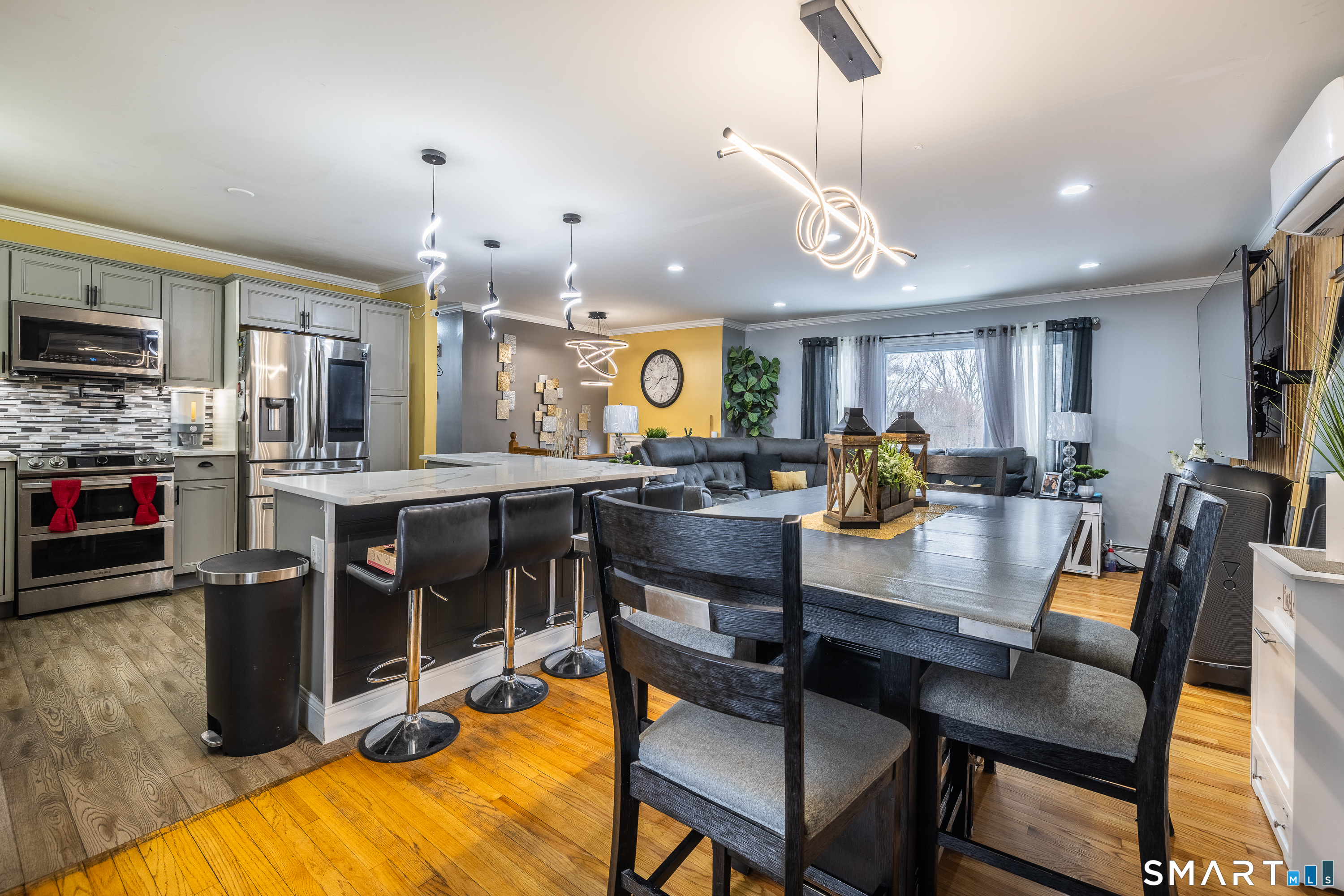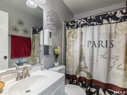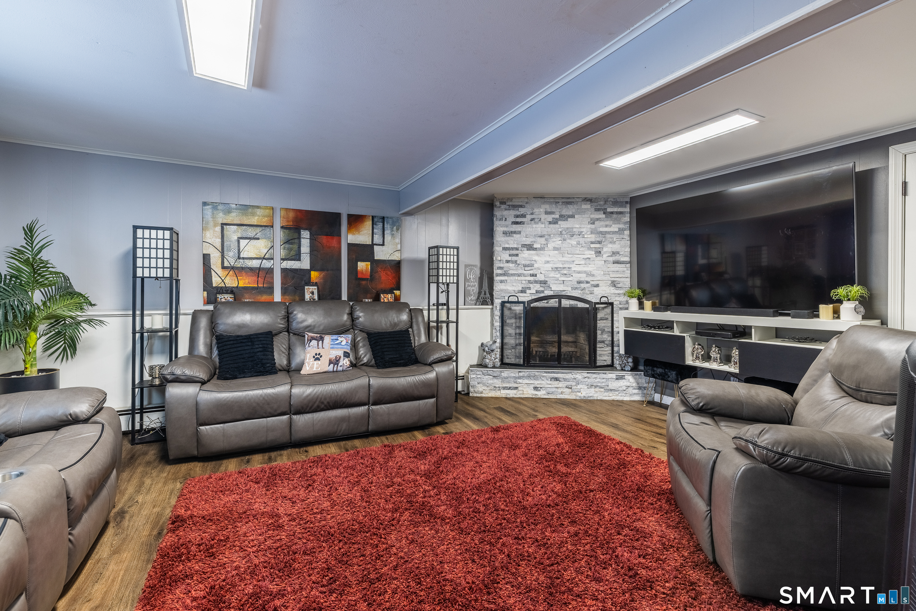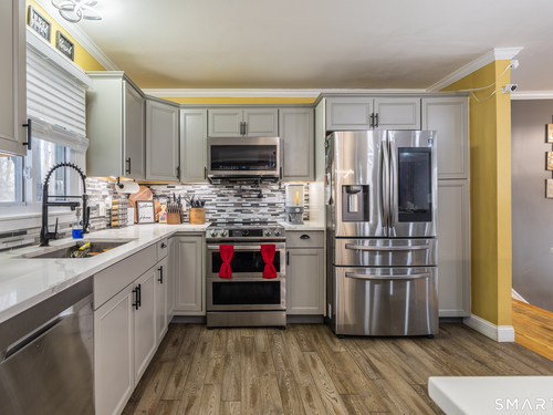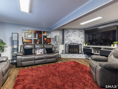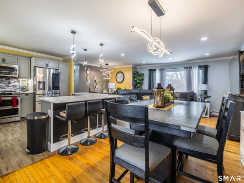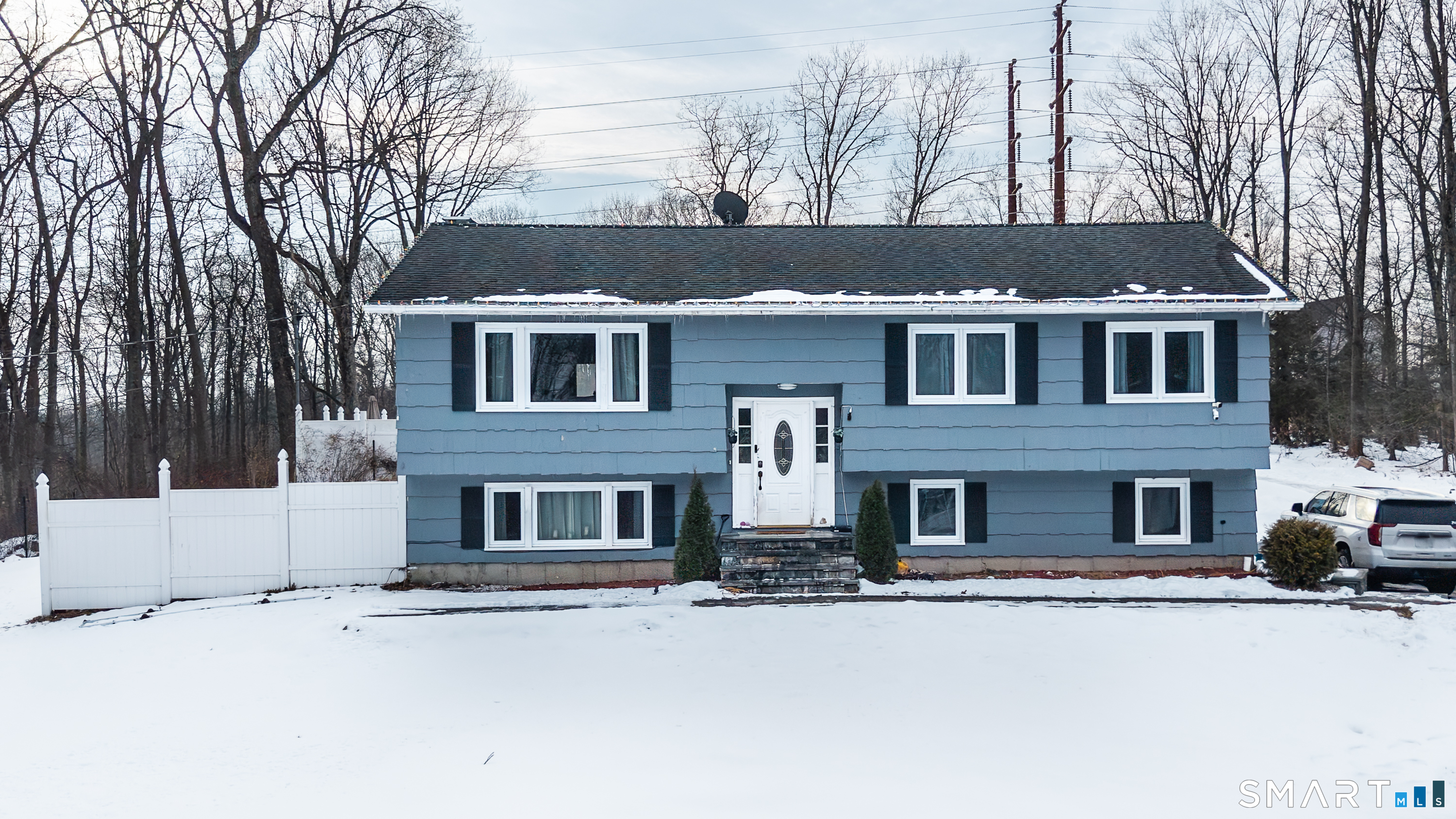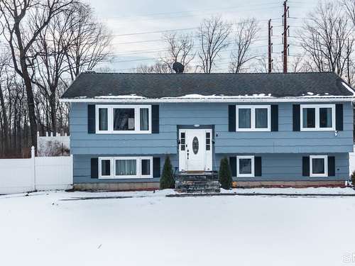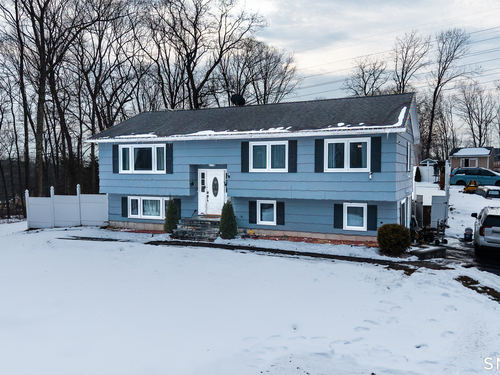 Bright and airy raised ranch located in the desirable White Hills section of Shelton, set on over one acre of land. This home features an open floor plan and a recently remodeled kitchen with wall-to-wall gray cabinetry, a spacious island, quartz countertops, stainless steel appliances, and unique modern light fixtures. The dining room includes sliders leading to a deck overlooking the ultimate backyard retreat. Outdoor features include an inground heated pool with LED lighting, jacuzzi, stone pathways, and two gazebos-perfect for entertaining. The expanded driveway is fully paved to the top, offering parking for at least eight vehicles and includes a section ideal for a basketball court. Interior highlights include an extended primary bedroom with a half bath, two full bathrooms, a large family room with fireplace, two to three additional rooms on the lower level, all newer windows and a designated laundry area. Additional features, include two split systems (one in the living room) and a large, fully finished and insulated she-shed with its own split system. A rare opportunity combining privacy, space, and resort-style amenities.