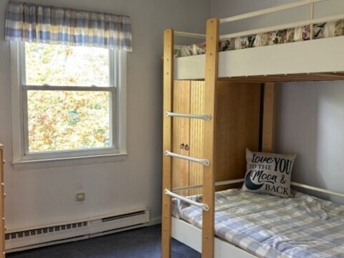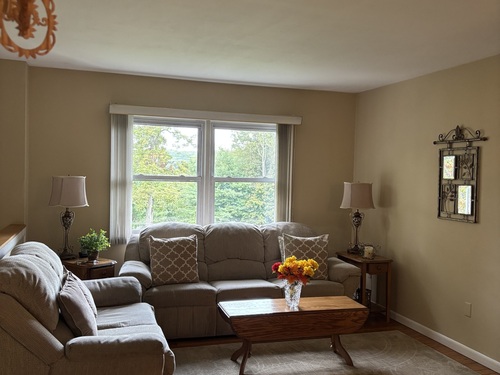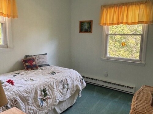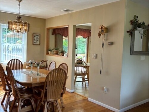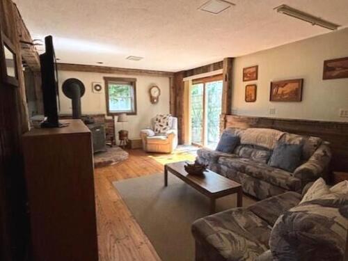 Beams, Wood Stove, Sliders, Hardwood Floor