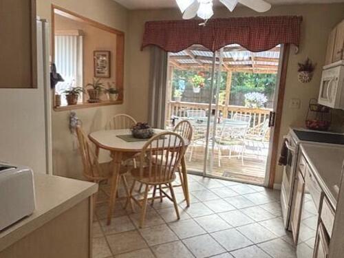 Balcony/Deck, Ceiling Fan, Dining Area, Pantry, Sliders, Tile Floor