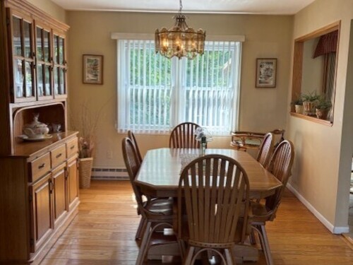 Set on a corner lot, this lovingly maintained raised ranch offers a perfect blend of comfort, convenience, and versatility. Sliders lead to an oversized deck overlooking a private, fenced backyard complete with a gazebo and two sheds-ideal for outdoor entertaining or quiet relaxation. Filled with natural light, the interior features gleaming hardwood floors and the open dining and living rooms provide a welcoming layout and showcase seasonal views of Lake Kenosia. The finished lower level offers exceptional flexibility, whether used as an in-law suite or extended living space. Highlights include a cozy wood stove, pegged wood floors, cedar closet, bedroom, full bath with shower, and office area. Plumbing for a kitchenette is already in place behind the wall, making it easy to create a private apartment. Recent updates include a new roof, garage doors, central AC, and water heater. Located on Danbury's sought-after west side, this home is convenient to shopping, schools, and major routes-yet nestled in a quiet, safe neighborhood. This home has it all!
