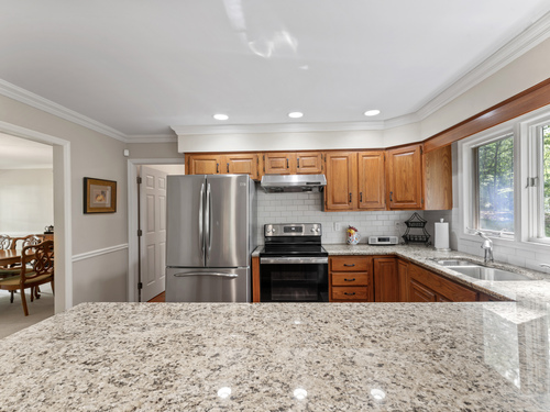 Welcome to 6 Middlebrook Pond Rd, Redding! Beautiful & Charming 8 room, 4 bedroom, 2.5 bath Cape situated on a nice private lot in established tree lined subdivision with underground utilities & Cul-de-sac with close proximity to Huntington & Putnam Memorial State Parks. Main level features include hardwood flooring, crown molding, formal living room with fireplace, built-in bookshelves, large eat-in kitchen with oak cabinetry & granite counters, recessed lighting, SS appliances, breakfast bar, bay window, large pantry & tile floor, formal dining room, family room with brick fireplace and slider to 12'x18' deck overlooking the back yard, laundry room off kitchen with wash tub and access to rear yard & 2 car garage with openers and entry hallway with 1/2 bath. Upper level features include primary bedroom with full bath and double closets, 3 more generous size bedrooms with access to storage space and full bath in hallway with tub and shower combination. Full Basement with Bilko door and plenty of room for more finished living space if desired, newer mechanicals installed in 2021, air radon mitigation system & more! A MUST SEE HOME!