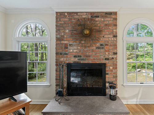 Fireplace, Sliders, Hardwood Floor