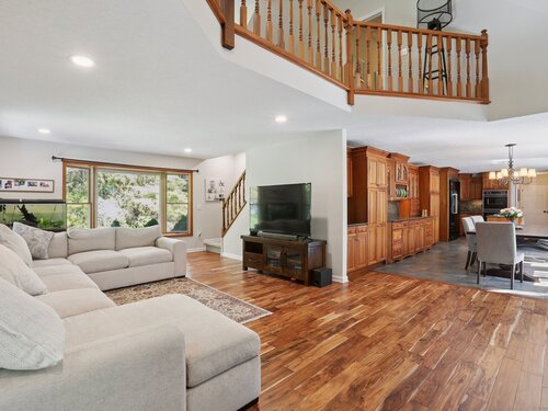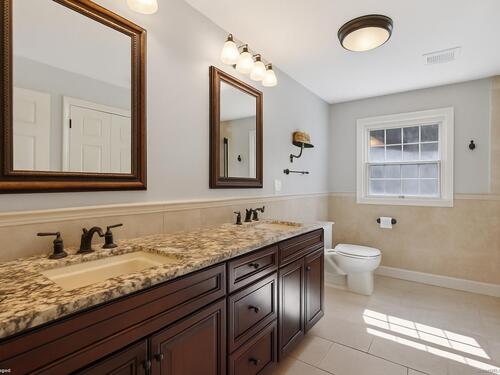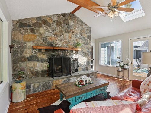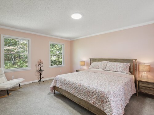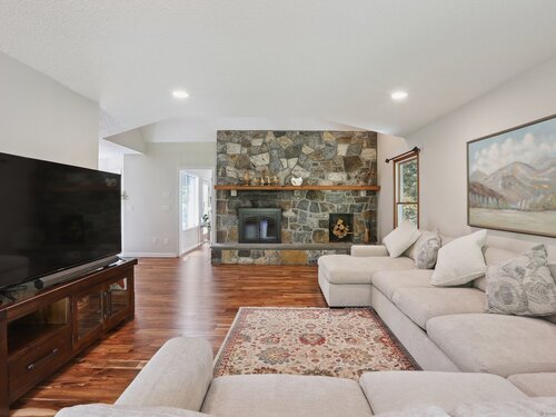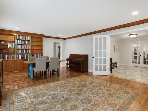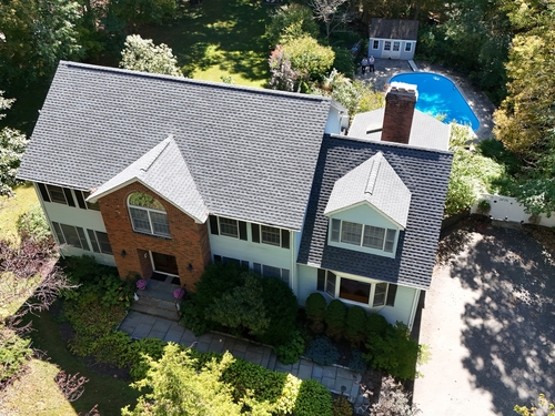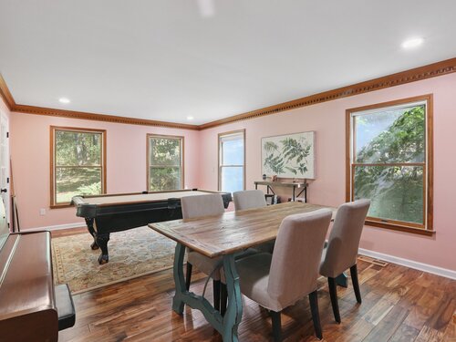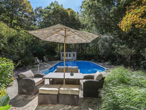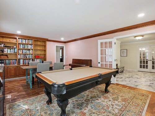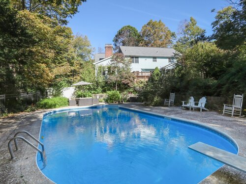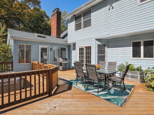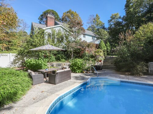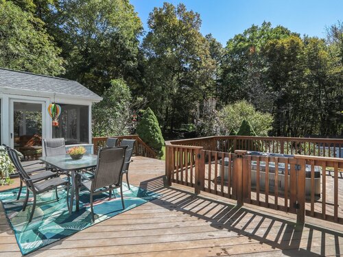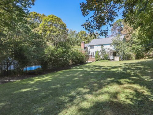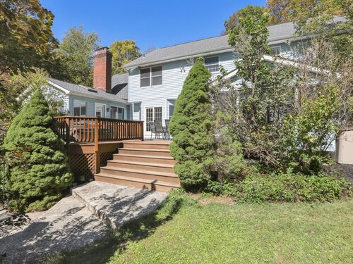This beautifully remodeled 4-bedroom, 2 full and 2 half-bath Colonial offers 3,474 sq. ft. of living space and sits on 3 private acres at the end of a cul-de-sac. Designed for both everyday comfort and entertaining, the home features a heated inground pool, expansive mahogany deck with hot tub, and a screened-in porch overlooking the serene property. The updated kitchen boasts granite counters and Viking appliances, while the formal dining room, living room, family room, and sunroom all showcase hardwood floors. The family room impresses with vaulted ceilings and a wood-burning fireplace, complemented by a second fireplace for added charm. Upstairs, four spacious bedrooms with new wall-to-wall carpeting provide comfort, along with a versatile loft space. Additional upgrades include new crown molding and updated interior doors. A perfect blend of elegance and functionality in a sought-after private setting.