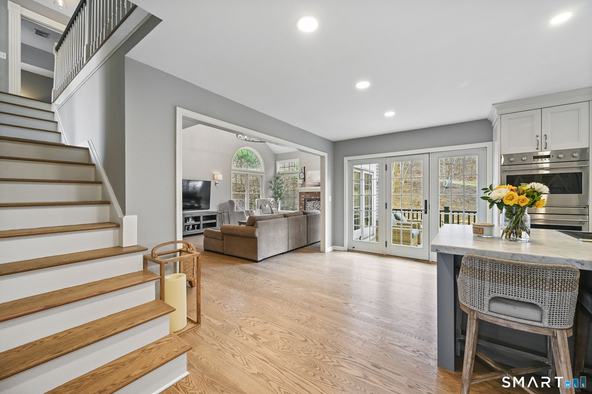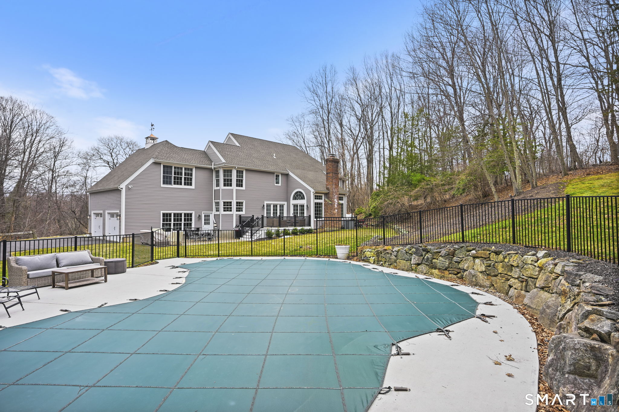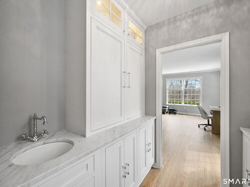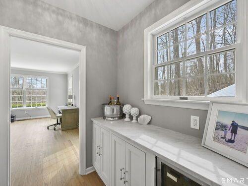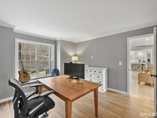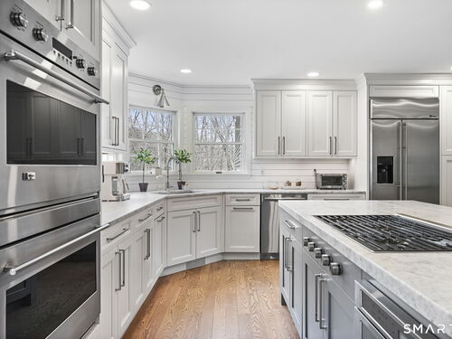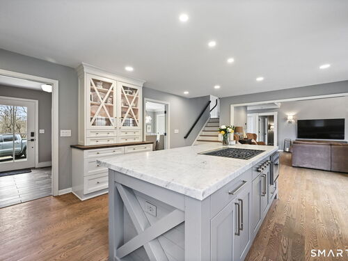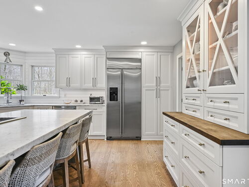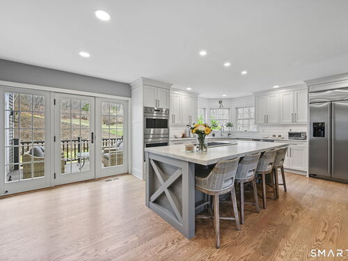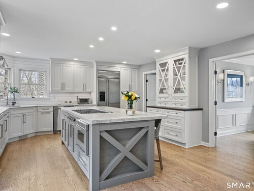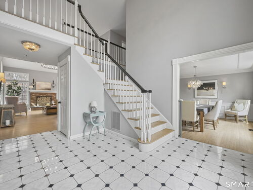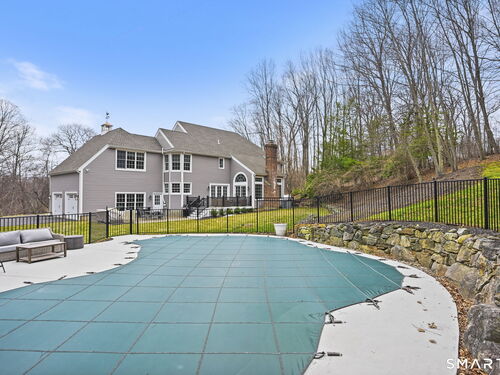 Welcome to this beautifully renovated 4-bedroom, 2.5-bath Colonial nestled in a highly desirable subdivision, where timeless design meets modern luxury. Step inside to a dramatic two-story foyer that sets the tone for the rest of the home. The main level features newer hardwood flooring and an open, flowing floor plan ideal for both everyday living & entertaining. At the heart of the home is a stunning, custom-designed kitchen complete with built-in appliances, marble countertops, and high-end cabinetry. The sun-drenched family room impresses with its vaulted ceiling and cozy wood-burning fireplace, creating a warm and inviting space. Additional main-level highlights include a private office with French doors, a butler's pantry with wet bar, a formal living room, and a convenient mudroom off the two-car garage with custom built-ins. Upstairs, you'll find refined carpentry and four generously sized bedrooms, including a luxurious primary suite featuring a tray ceiling and a well appointed full bath. A second full bath serves the additional bedrooms. The finished lower level offers a versatile recreation room, perfect for a playroom, media space, or home gym. Outside, the property is truly exceptional-professionally landscaped with elegant stone walls, ambient landscape lighting, and a gorgeous in-ground heated pool that transforms the backyard into a private oasis. This home combines sophisticated style, thoughtful upgrades, and an unbeatable location.