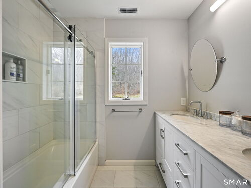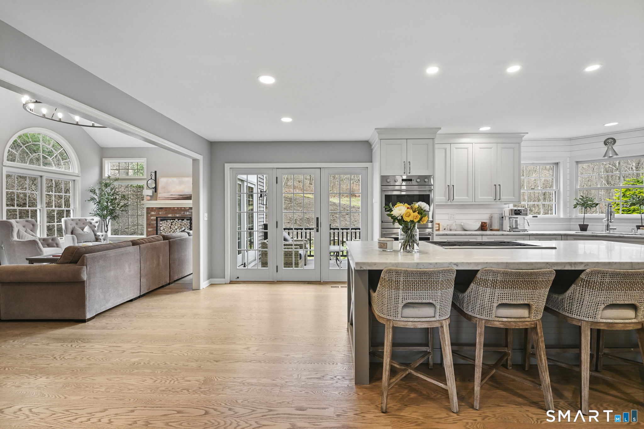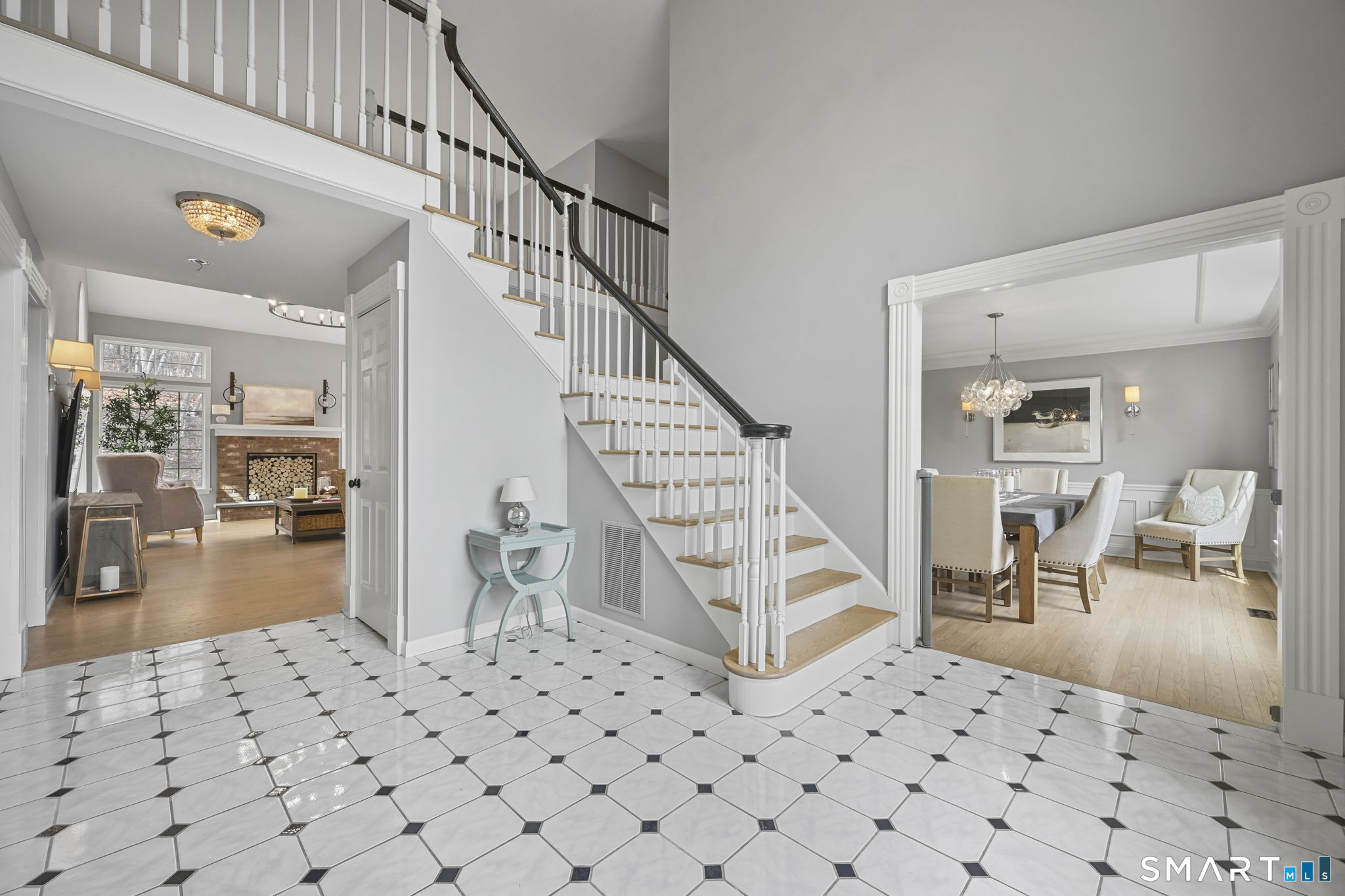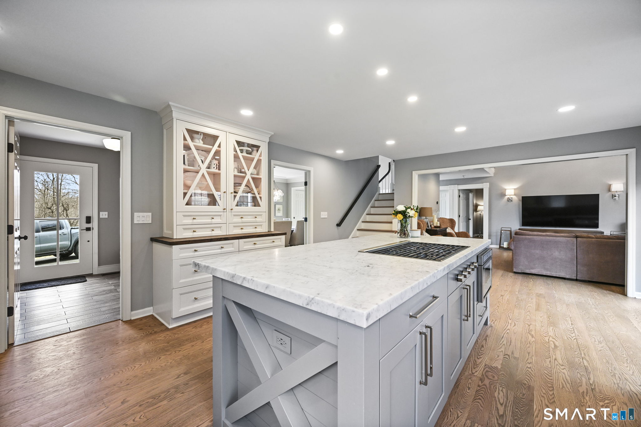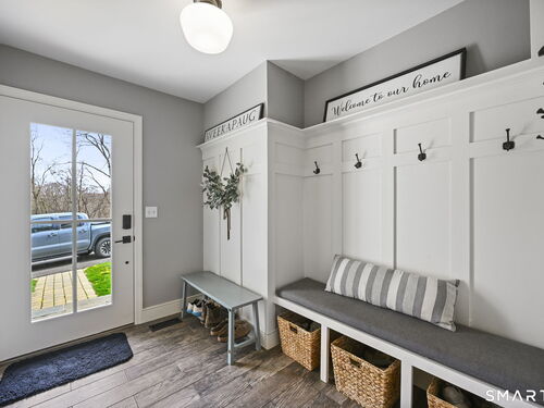 Welcome to this beautifully renovated 4-bedroom, 2.5-bath Colonial nestled in a highly desirable subdivision, where timeless design meets modern luxury. Step inside to a dramatic two-story foyer that sets the tone for the rest of the home. The main level features newer hardwood flooring and an open, flowing floor plan ideal for both everyday living & entertaining. At the heart of the home is a stunning, custom-designed kitchen complete with built-in appliances, marble countertops, and high-end cabinetry. The sun-drenched family room impresses with its vaulted ceiling and cozy wood-burning fireplace, creating a warm and inviting space. Additional main-level highlights include a private office with French doors, a butler's pantry with wet bar, a formal living room, and a convenient mudroom off the two-car garage with custom built-ins. Upstairs, you'll find refined carpentry and four generously sized bedrooms, including a luxurious primary suite featuring a tray ceiling and a well appointed full bath. A second full bath serves the additional bedrooms. The finished lower level offers a versatile recreation room, perfect for a playroom, media space, or home gym. Outside, the property is truly exceptional-professionally landscaped with elegant stone walls, ambient landscape lighting, and a gorgeous in-ground heated pool that transforms the backyard into a private oasis. This home combines sophisticated style, thoughtful upgrades, and an unbeatable location.