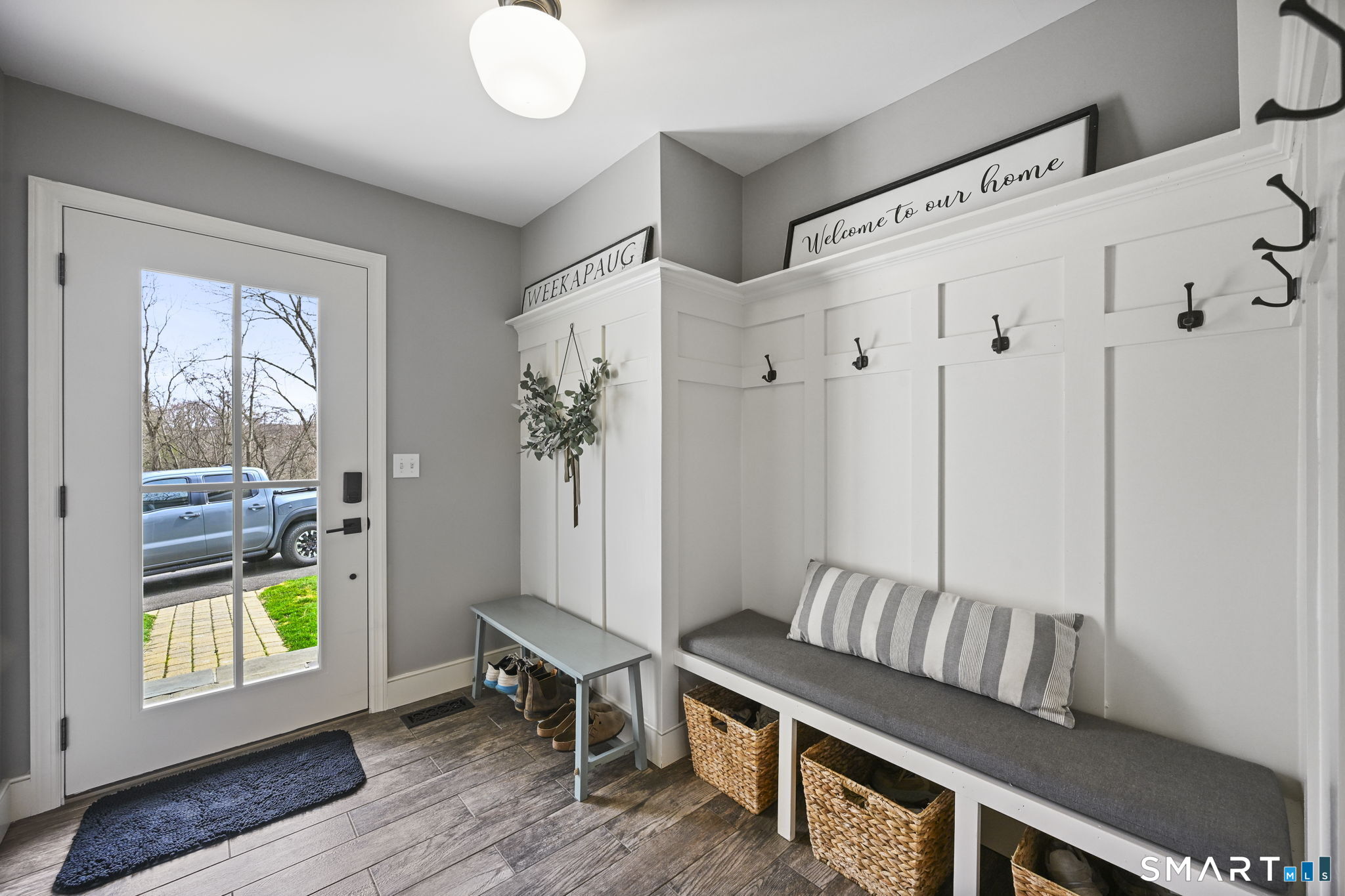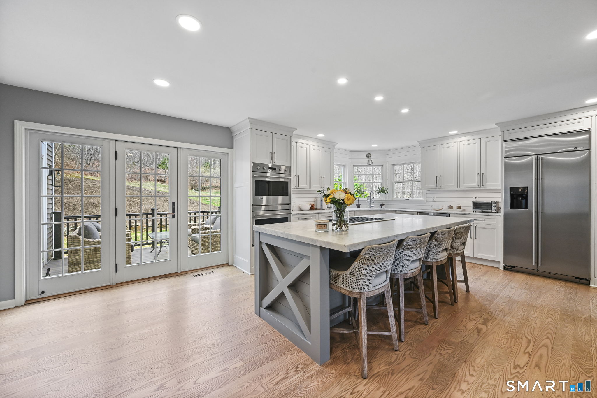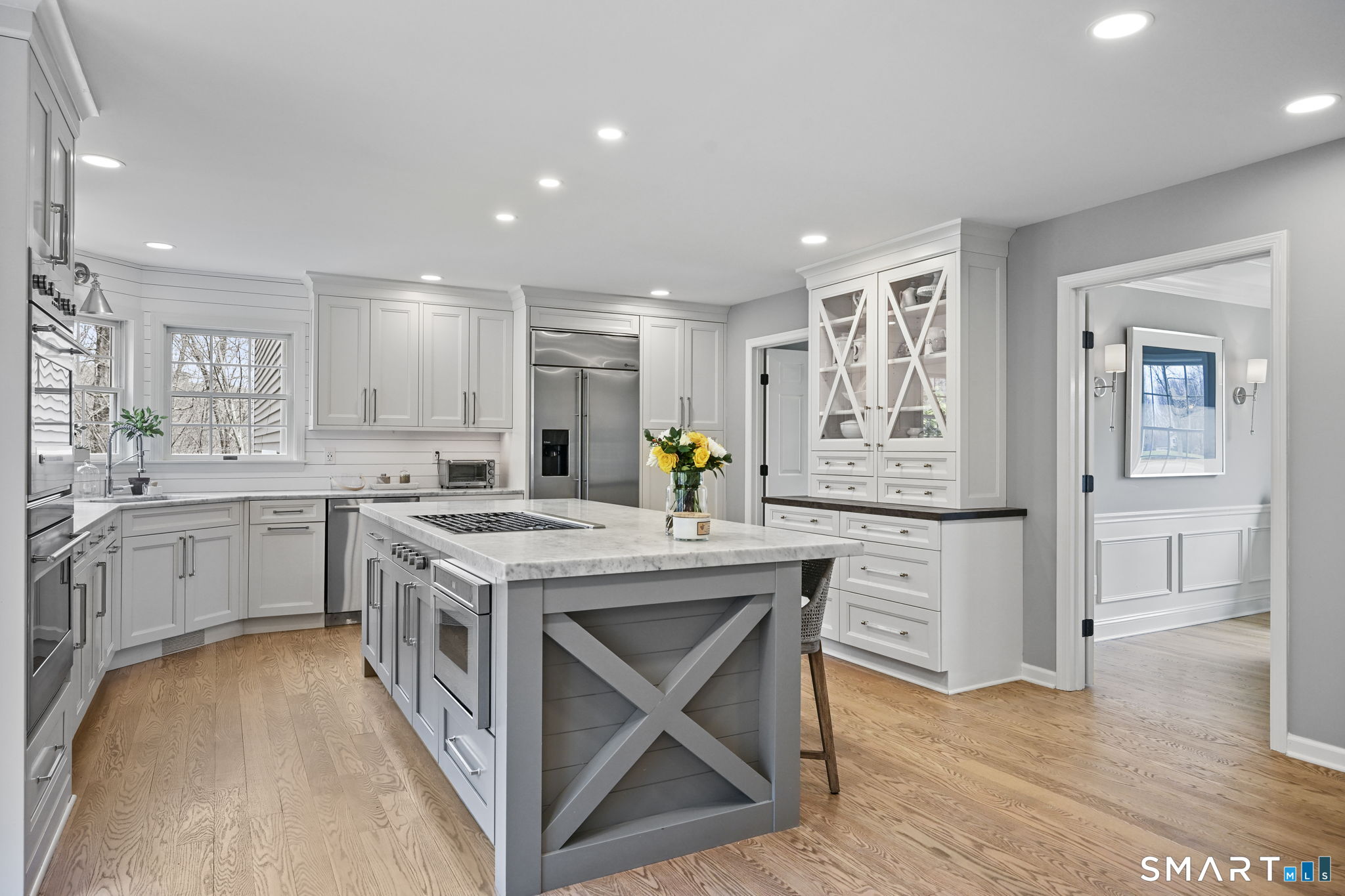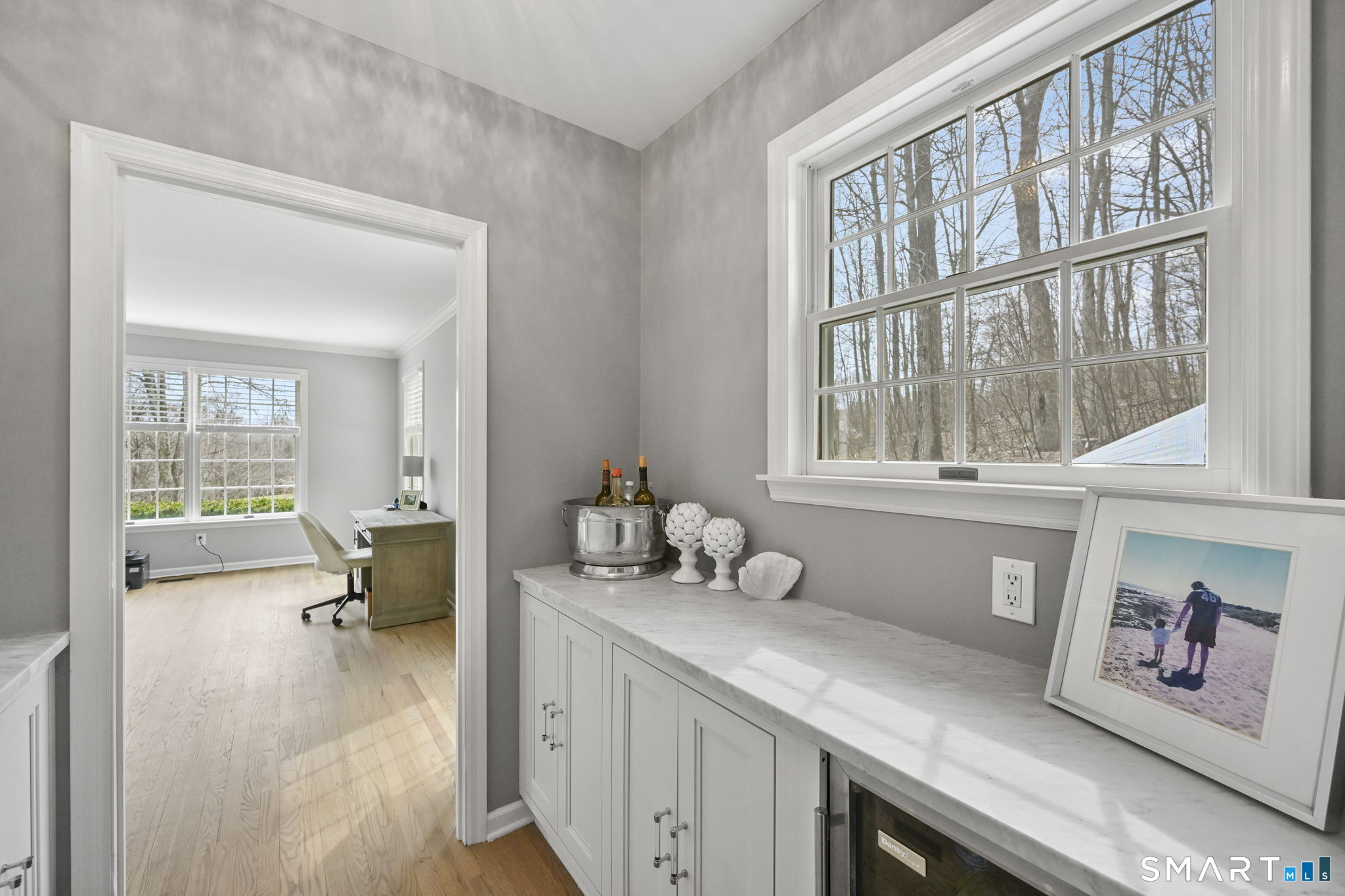 Welcome to this beautifully renovated 4-bedroom, 2.5-bath Colonial nestled in a highly desirable subdivision, where timeless design meets modern luxury. Step inside to a dramatic two-story foyer that sets the tone for the rest of the home. The main level features newer hardwood flooring and an open, flowing floor plan ideal for both everyday living & entertaining. At the heart of the home is a stunning, custom-designed kitchen complete with built-in appliances, marble countertops, and high-end cabinetry. The sun-drenched family room impresses with its vaulted ceiling and cozy wood-burning fireplace, creating a warm and inviting space. Additional main-level highlights include a private office with French doors, a butler's pantry with wet bar, a formal living room, and a convenient mudroom off the two-car garage with custom built-ins. Upstairs, you'll find refined carpentry and four generously sized bedrooms, including a luxurious primary suite featuring a tray ceiling and a well appointed full bath. A second full bath serves the additional bedrooms. The finished lower level offers a versatile recreation room, perfect for a playroom, media space, or home gym. Outside, the property is truly exceptional-professionally landscaped with elegant stone walls, ambient landscape lighting, and a gorgeous in-ground heated pool that transforms the backyard into a private oasis. This home combines sophisticated style, thoughtful upgrades, and an unbeatable location.