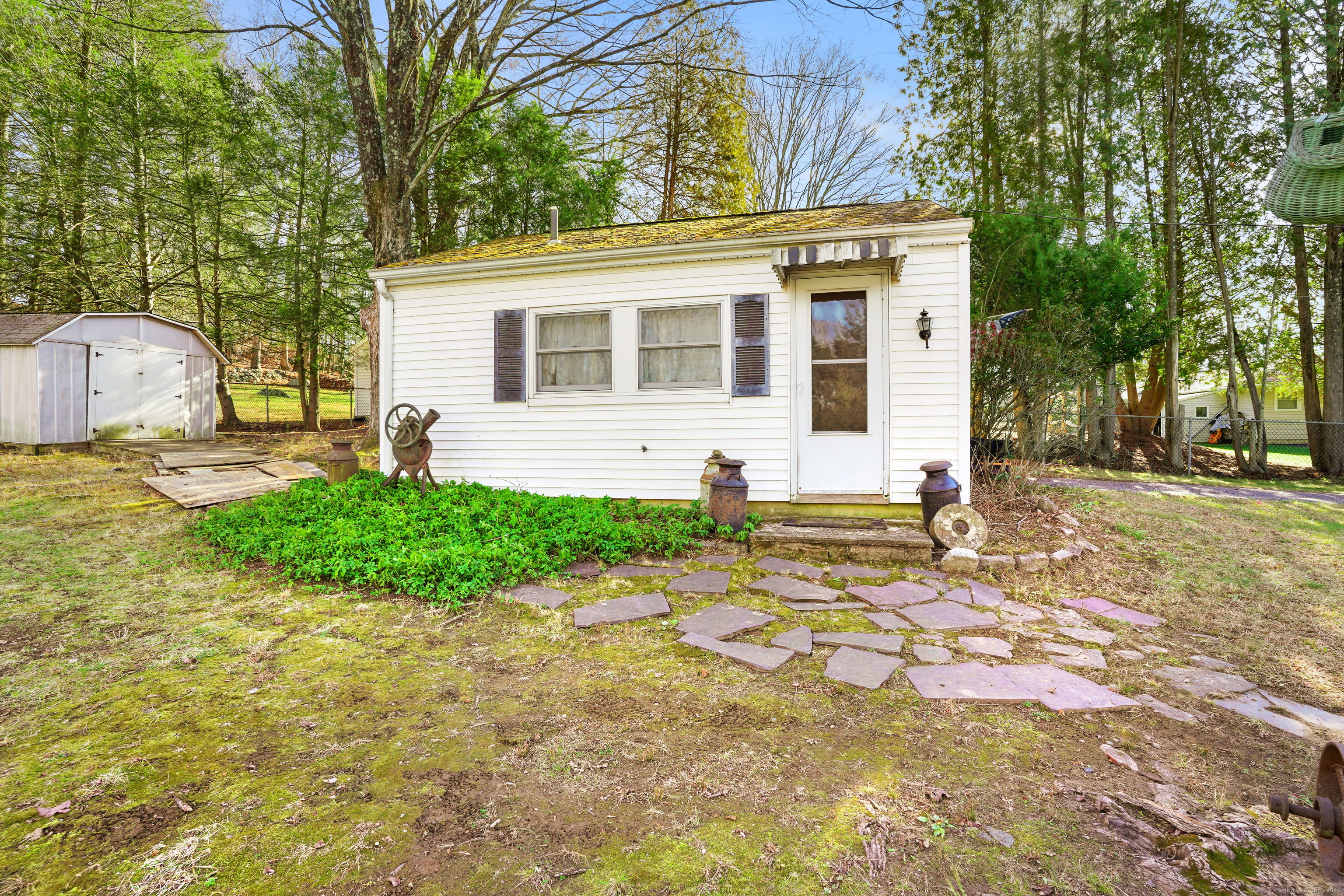 Charming 1952 2-bedroom ranch on a quiet dead-end street, set on a 1-acre lot with an inviting in-ground pool. Home offered "as-is" and brimming with possibility. Original hardwood floors (even under carpeting) flow through the main level, anchored by a welcoming family room perfect for cozy gatherings. 1-car garage opens directly to the basement, where you'll also find the laundry area, making daily routines convenient. Step out back to your own peaceful retreat: in-ground pool & cabana, stone BBQ, patio, and mature landscaping where birds are daily visitors - all ensuring exceptional privacy and peaceful evenings under the stars. The perfect backdrop for summer entertaining or quiet nature-filled moments. Back building has full bath and was used for guests (sold as is). Just minutes from hiking and biking at nearby state parks and the vibrant shops, cafes, and historic charm of downtown Bethel, ideally located for commuters with flexible drives in every direction and quick Metro-North access. Proudly served by award-winning Bethel Public Schools. A great find for first-time buyers or downsizers seeking character, space, and top-tier schools in an idyllic location. Schedule your private showing today! Sold As-Is.