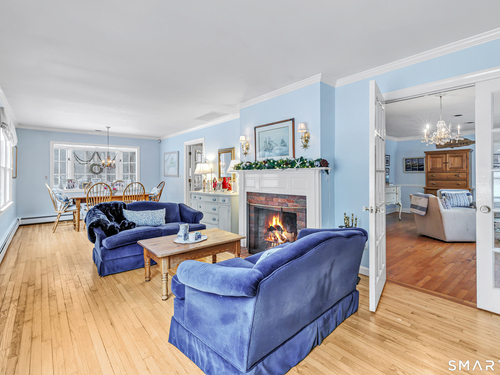A GREAT OPPORTUNITY TO MOVE IN, EXPAND, OR CREATE YOUR DREAM HOME. Just minutes from downtown Westport, this 3-bedroom, 2-full-bath ranch offers a rare opportunity in a prime location. The home features a bright living and dining area with a wood-burning fireplace, opening into an oversized family room-perfect for entertaining-all with hardwood floors throughout. A central hallway leads to three bedrooms and two full baths. Additional highlights include an oversized detached two-car garage that is both heated and cooled, a new furnace and hot water heater (2022), central air, and a roof approximately 10 years old. Endless possibilities!