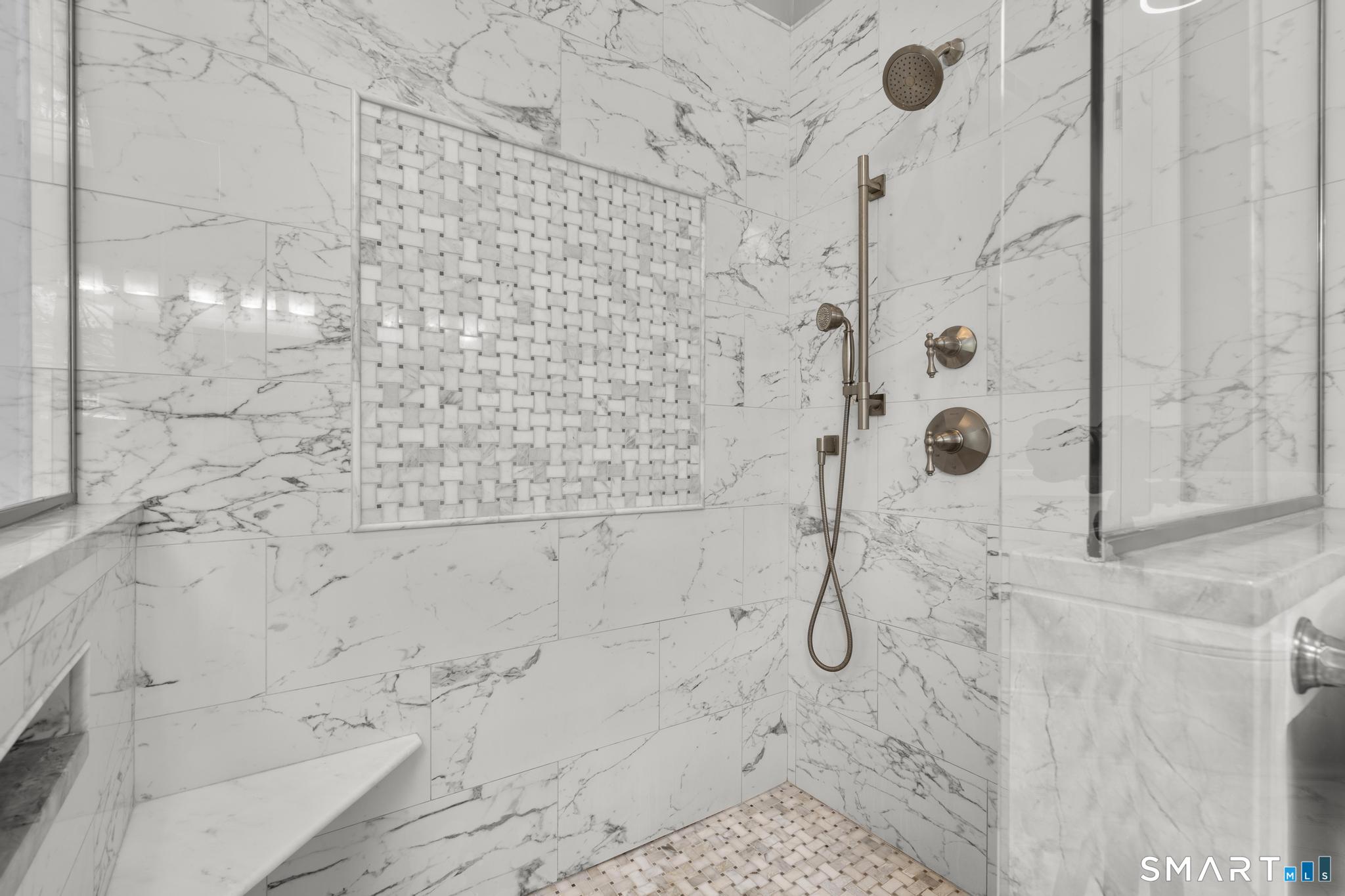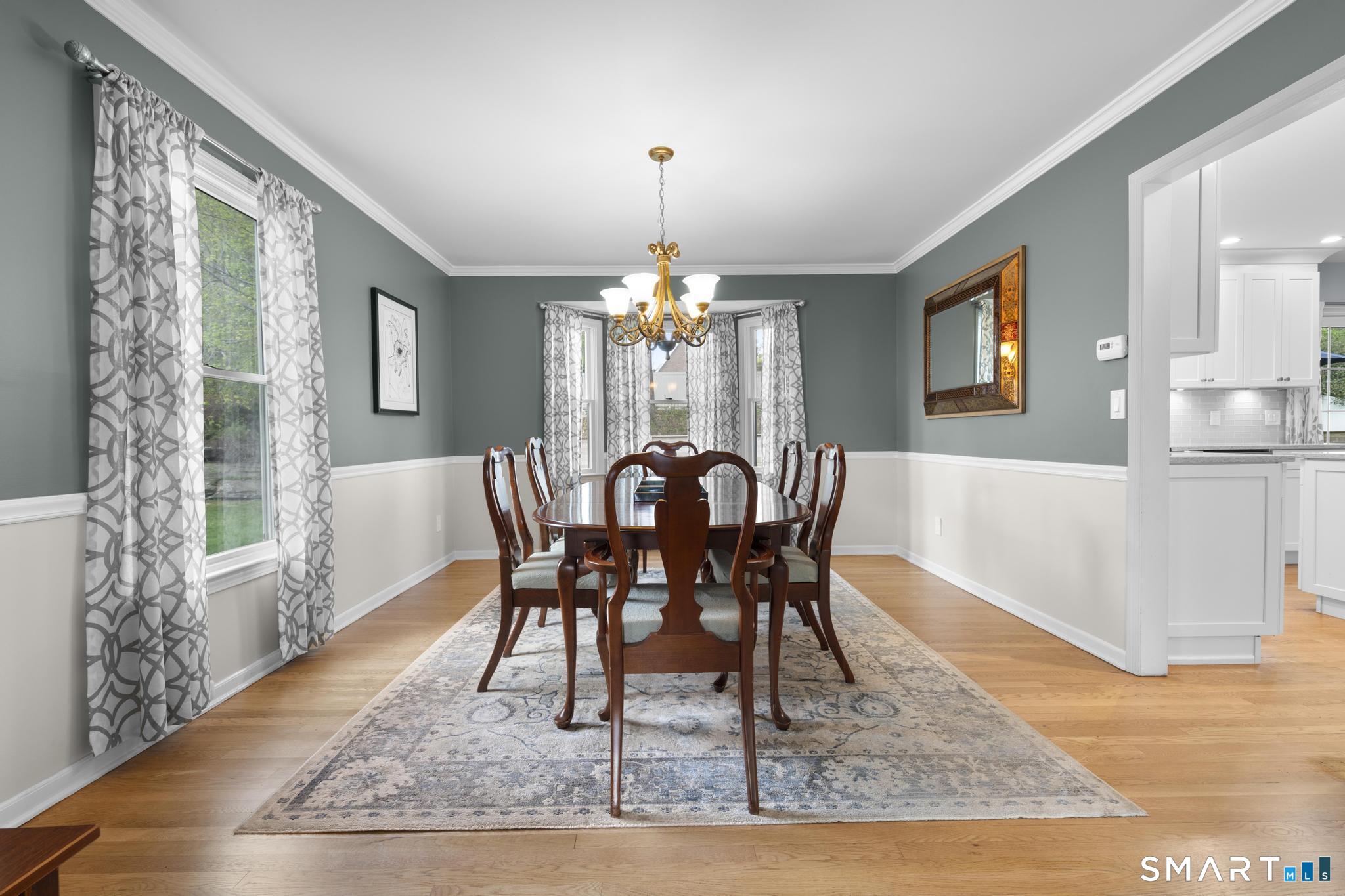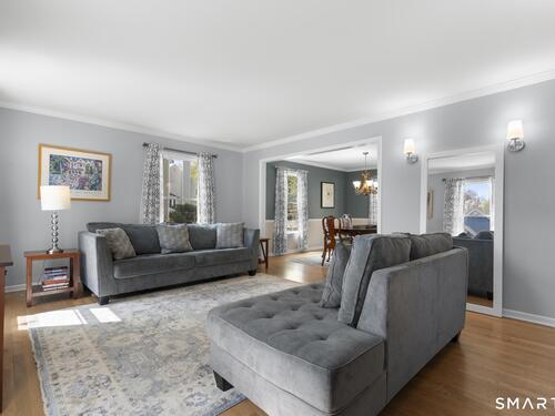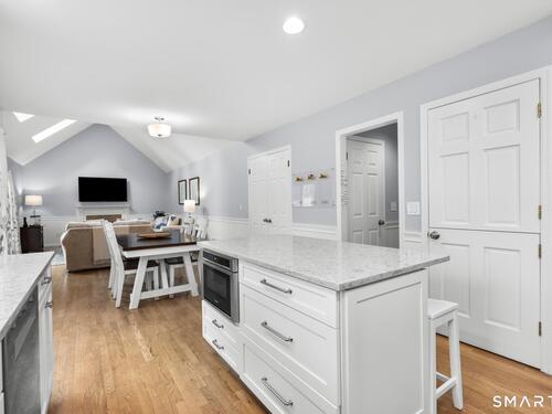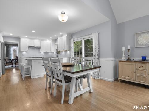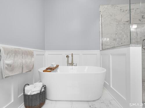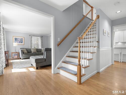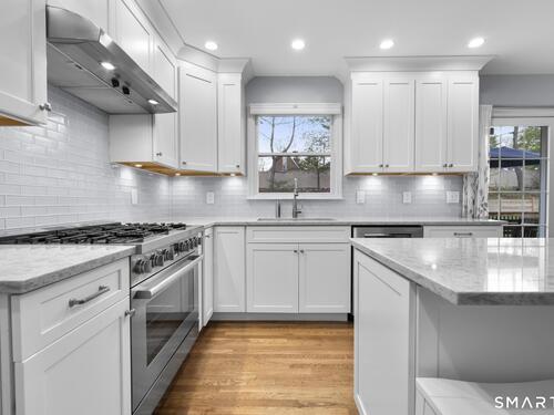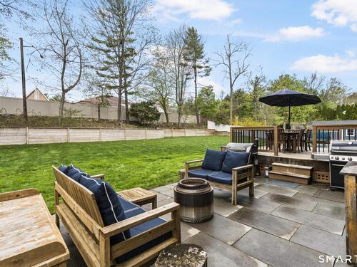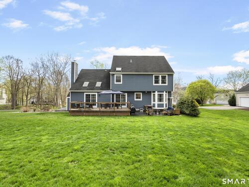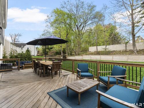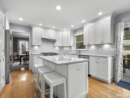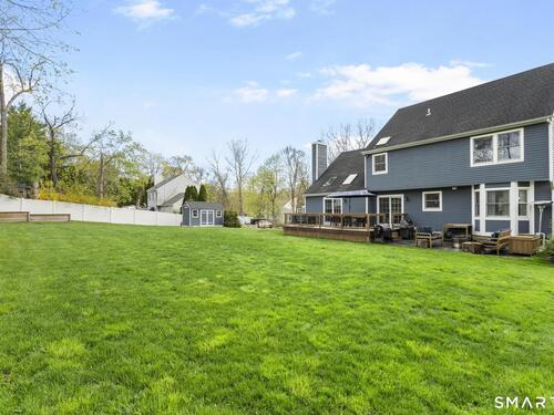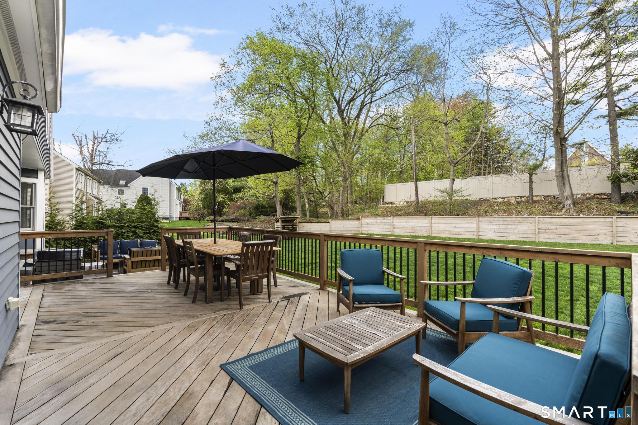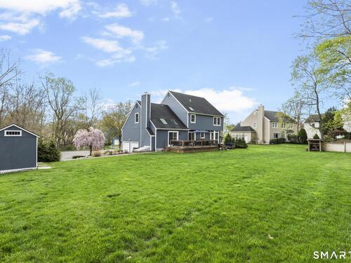 Tucked away on a quiet cul-de-sac in Stamford's highly sought-after Newfield neighborhood, this beautifully updated 4 bedroom, 2.5 bath center hall Colonial offers the perfect blend of elegance, comfort, & everyday functionality. Designed for both modern living & effortless entertaining, the home features a seamless flow with spacious formal living & dining rooms, ideal for gatherings. The stunning, brand new eat in kitchen with stainless steel Bosch appliances & center island opens to a sun drenched family room with vaulted ceilings, skylights, & a wood burning fireplace. A convenient main level laundry room adds to the home's thoughtful layout. Two sets of sliders lead to an oversized IPE deck & bluestone patio, creating an exceptional outdoor setting overlooking the expansive, .46 acre property framed by lush, mature plantings. The luxurious primary suite is a true retreat, complete with vaulted ceilings, custom millwork, heated floors, & a spa inspired bath with dual vanity, soaking tub, & walk in shower. Three additional spacious bedrooms & a beautifully renovated hall bath complete the upper level. A walk up attic offers excellent storage & future expansion potential, while the expansive finished lower level provides incredible flexibility for a playroom, gym, and/or home office. A large two car garage completes the home. Enjoy the convenience of city water, sewer, & gas, all just minutes to shopping, dining, parks, houses of worship, & Metro North for an easy commute.