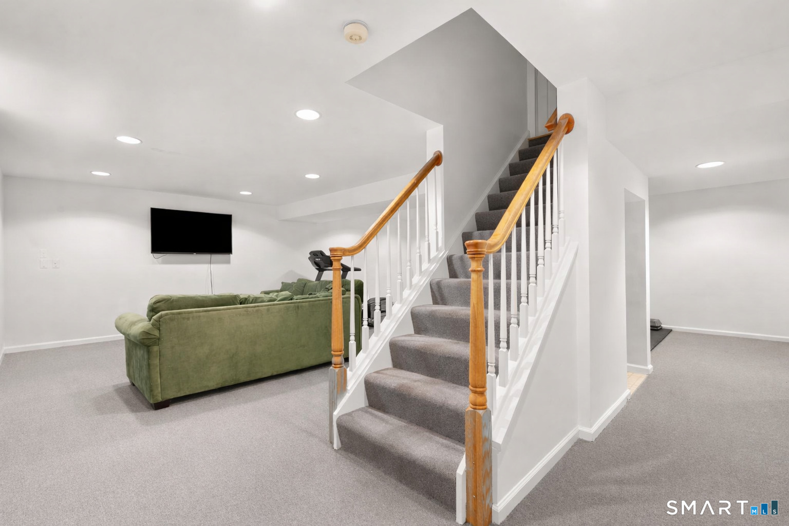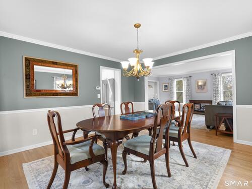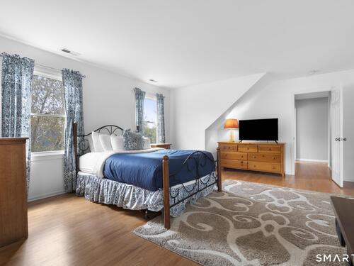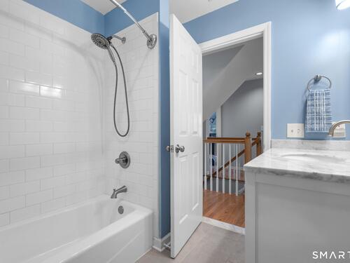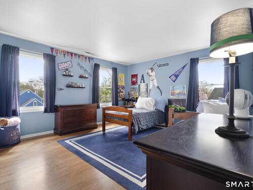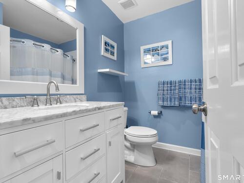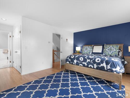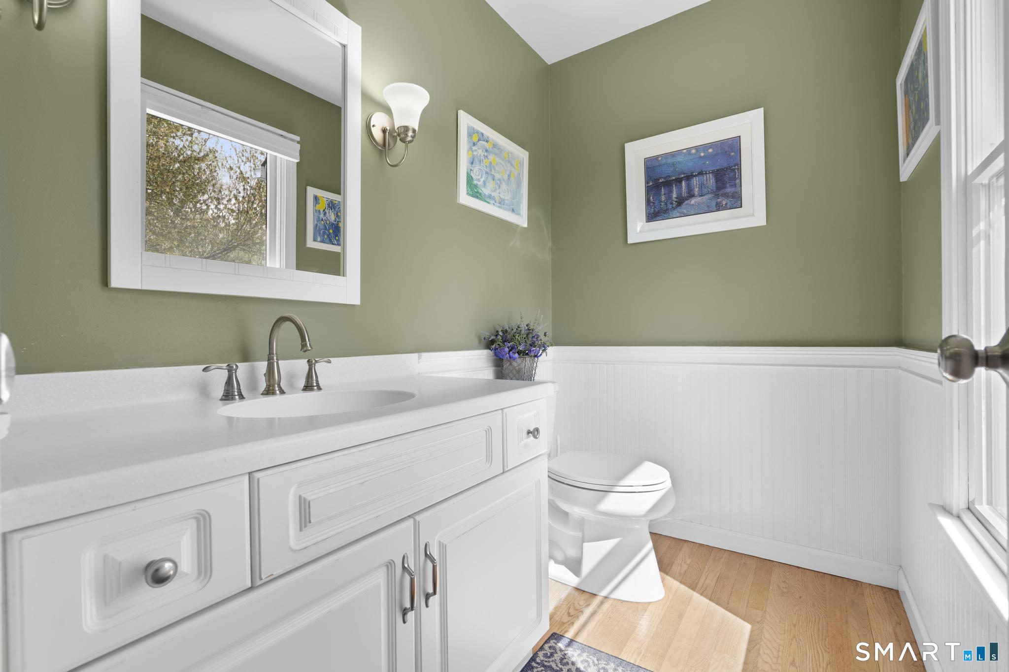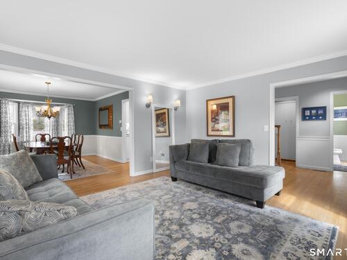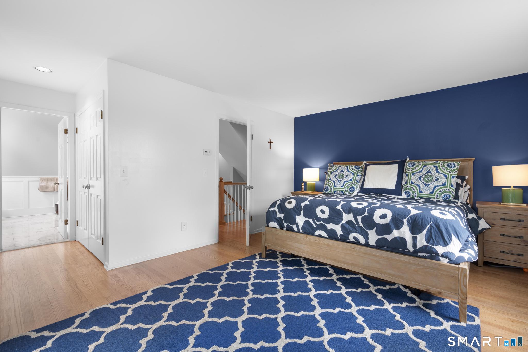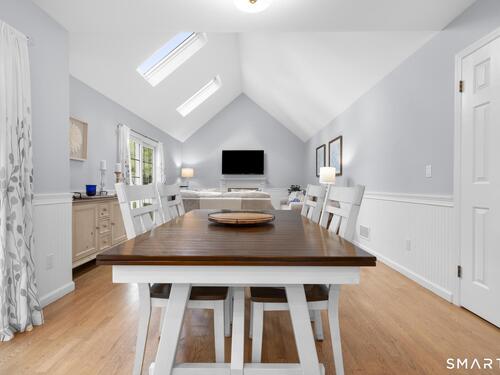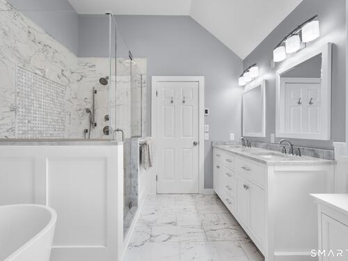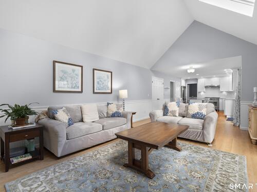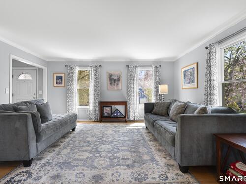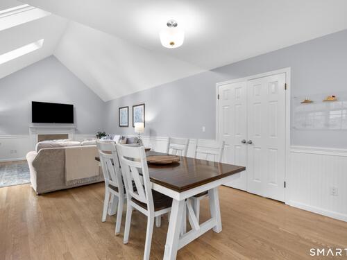 Tucked away on a quiet cul-de-sac in Stamford's highly sought-after Newfield neighborhood, this beautifully updated 4 bedroom, 2.5 bath center hall Colonial offers the perfect blend of elegance, comfort, & everyday functionality. Designed for both modern living & effortless entertaining, the home features a seamless flow with spacious formal living & dining rooms, ideal for gatherings. The stunning, brand new eat in kitchen with stainless steel Bosch appliances & center island opens to a sun drenched family room with vaulted ceilings, skylights, & a wood burning fireplace. A convenient main level laundry room adds to the home's thoughtful layout. Two sets of sliders lead to an oversized IPE deck & bluestone patio, creating an exceptional outdoor setting overlooking the expansive, .46 acre property framed by lush, mature plantings. The luxurious primary suite is a true retreat, complete with vaulted ceilings, custom millwork, heated floors, & a spa inspired bath with dual vanity, soaking tub, & walk in shower. Three additional spacious bedrooms & a beautifully renovated hall bath complete the upper level. A walk up attic offers excellent storage & future expansion potential, while the expansive finished lower level provides incredible flexibility for a playroom, gym, and/or home office. A large two car garage completes the home. Enjoy the convenience of city water, sewer, & gas, all just minutes to shopping, dining, parks, houses of worship, & Metro North for an easy commute.