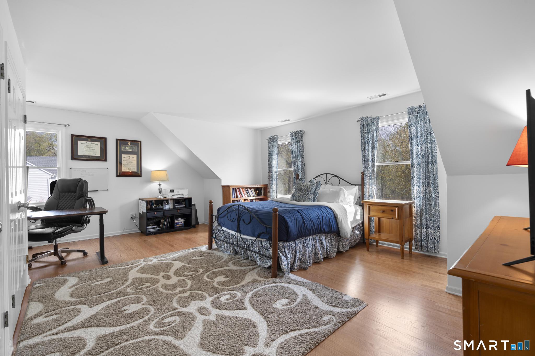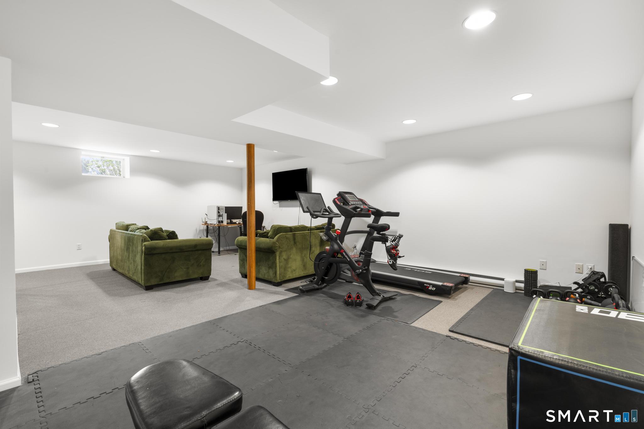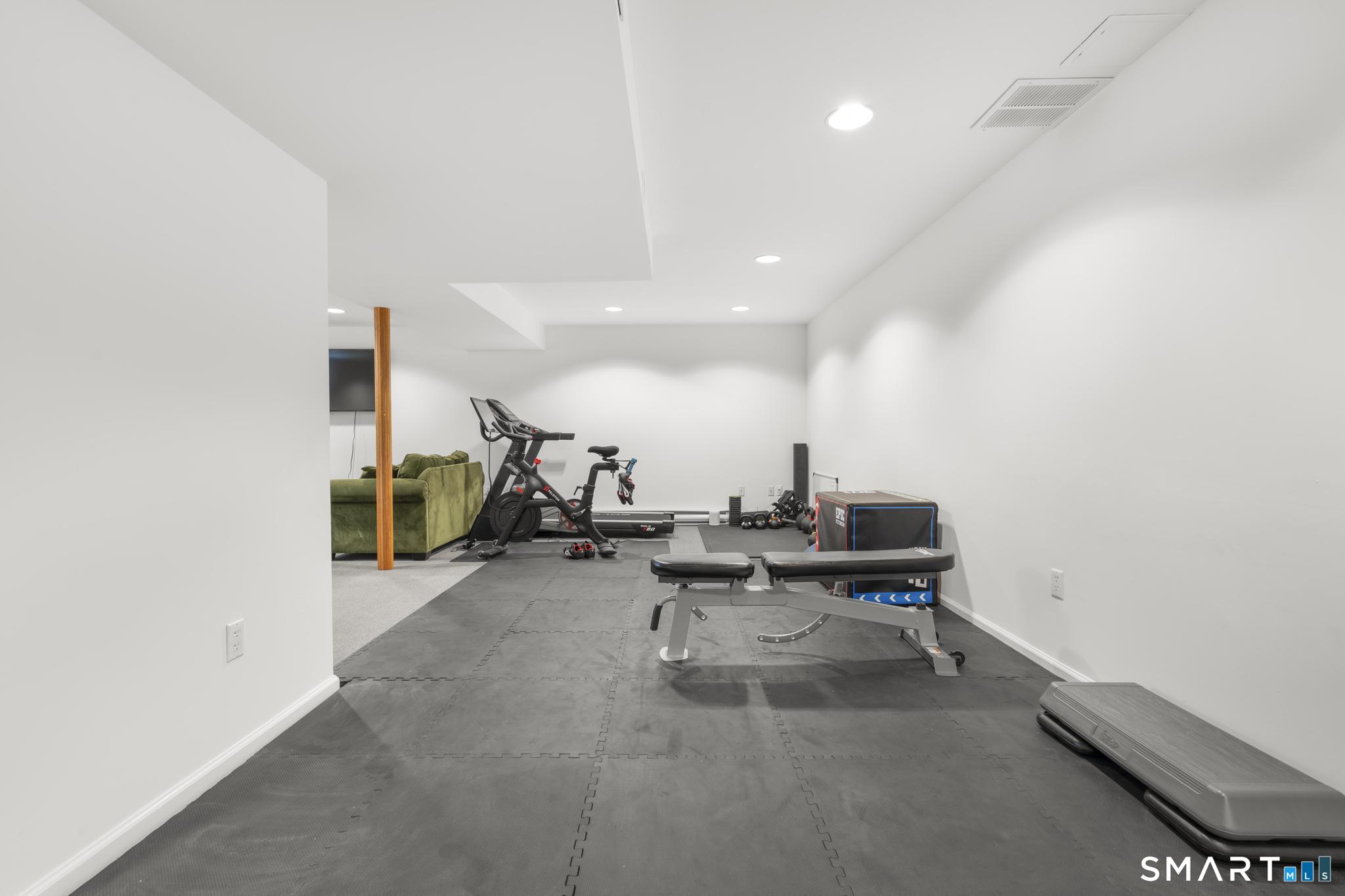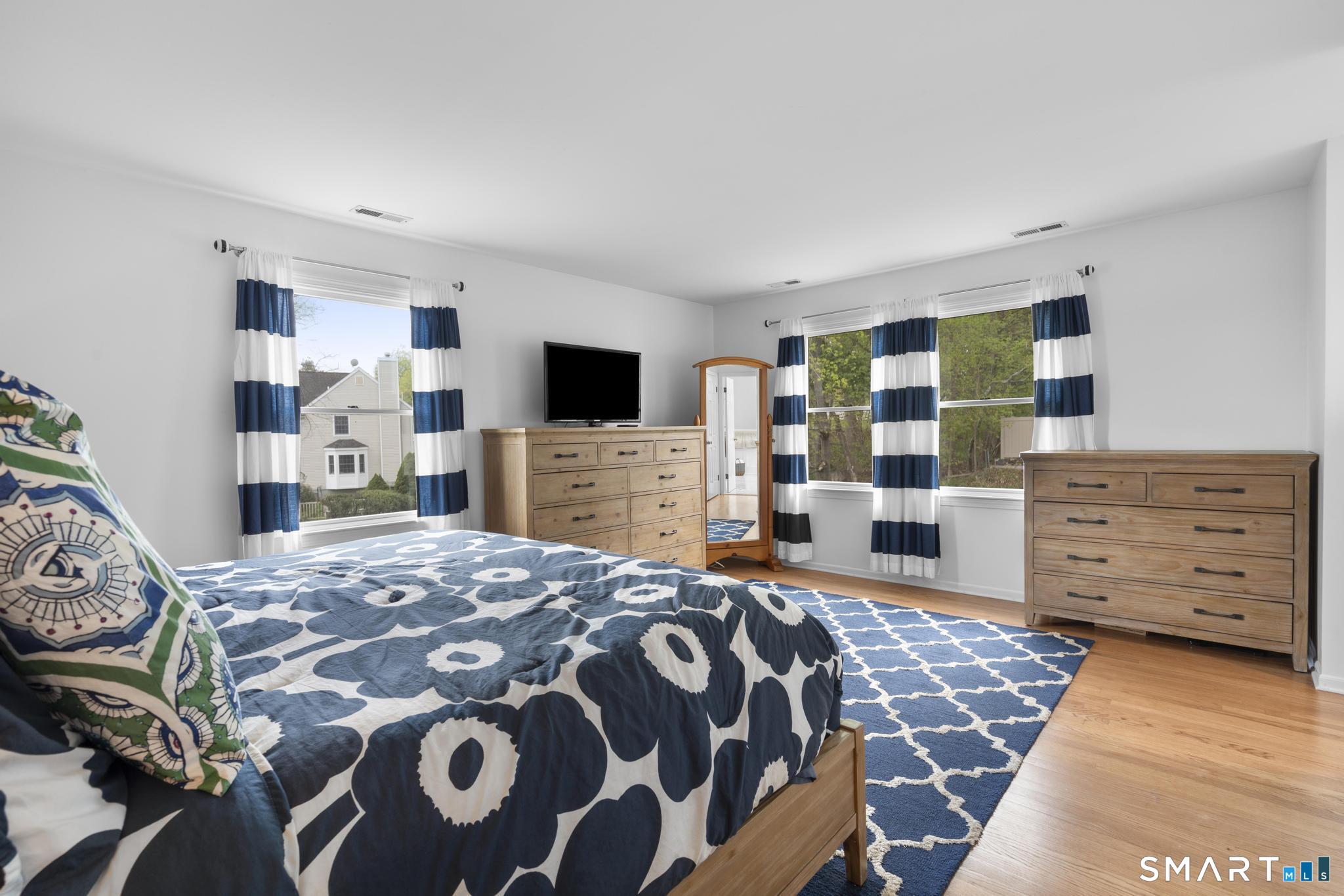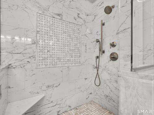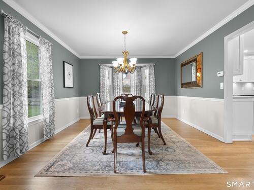 Tucked away on a quiet cul-de-sac in Stamford's highly sought-after Newfield neighborhood, this beautifully updated 4 bedroom, 2.5 bath center hall Colonial offers the perfect blend of elegance, comfort, & everyday functionality. Designed for both modern living & effortless entertaining, the home features a seamless flow with spacious formal living & dining rooms, ideal for gatherings. The stunning, brand new eat in kitchen with stainless steel Bosch appliances & center island opens to a sun drenched family room with vaulted ceilings, skylights, & a wood burning fireplace. A convenient main level laundry room adds to the home's thoughtful layout. Two sets of sliders lead to an oversized IPE deck & bluestone patio, creating an exceptional outdoor setting overlooking the expansive, .46 acre property framed by lush, mature plantings. The luxurious primary suite is a true retreat, complete with vaulted ceilings, custom millwork, heated floors, & a spa inspired bath with dual vanity, soaking tub, & walk in shower. Three additional spacious bedrooms & a beautifully renovated hall bath complete the upper level. A walk up attic offers excellent storage & future expansion potential, while the expansive finished lower level provides incredible flexibility for a playroom, gym, and/or home office. A large two car garage completes the home. Enjoy the convenience of city water, sewer, & gas, all just minutes to shopping, dining, parks, houses of worship, & Metro North for an easy commute.