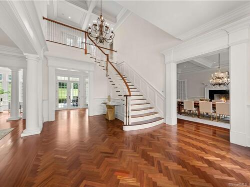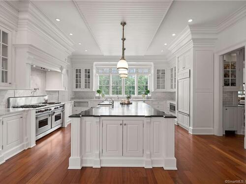Welcome to a truly exceptional New Canaan architectural masterpiece built in 2004, nestled on a majestic private lane occupied by only 6 estates, enveloped by serene forests and 48 acres of reservoir conservancy. This picturesque estate offers a tranquil escape and sense of openness with intricate millwork and wainscoting adorning every corner, 9 to 12-foot ceilings on every level and sun-drenched spaces throughout. Spanning over 11,000 square feet, with an additional 4,000SF+ lower level, with 6 bedrooms, 7.2 baths on 4.7 acres with room to add a custom pool, step inside to discover a seamless blend of ultimate privacy and modern luxuries throughout 4 finished levels. Immerse yourself in the serenity just 5 minutes to downtown New Canaan and an hour to NYC, where luxury and tranquility converge in perfect harmony.