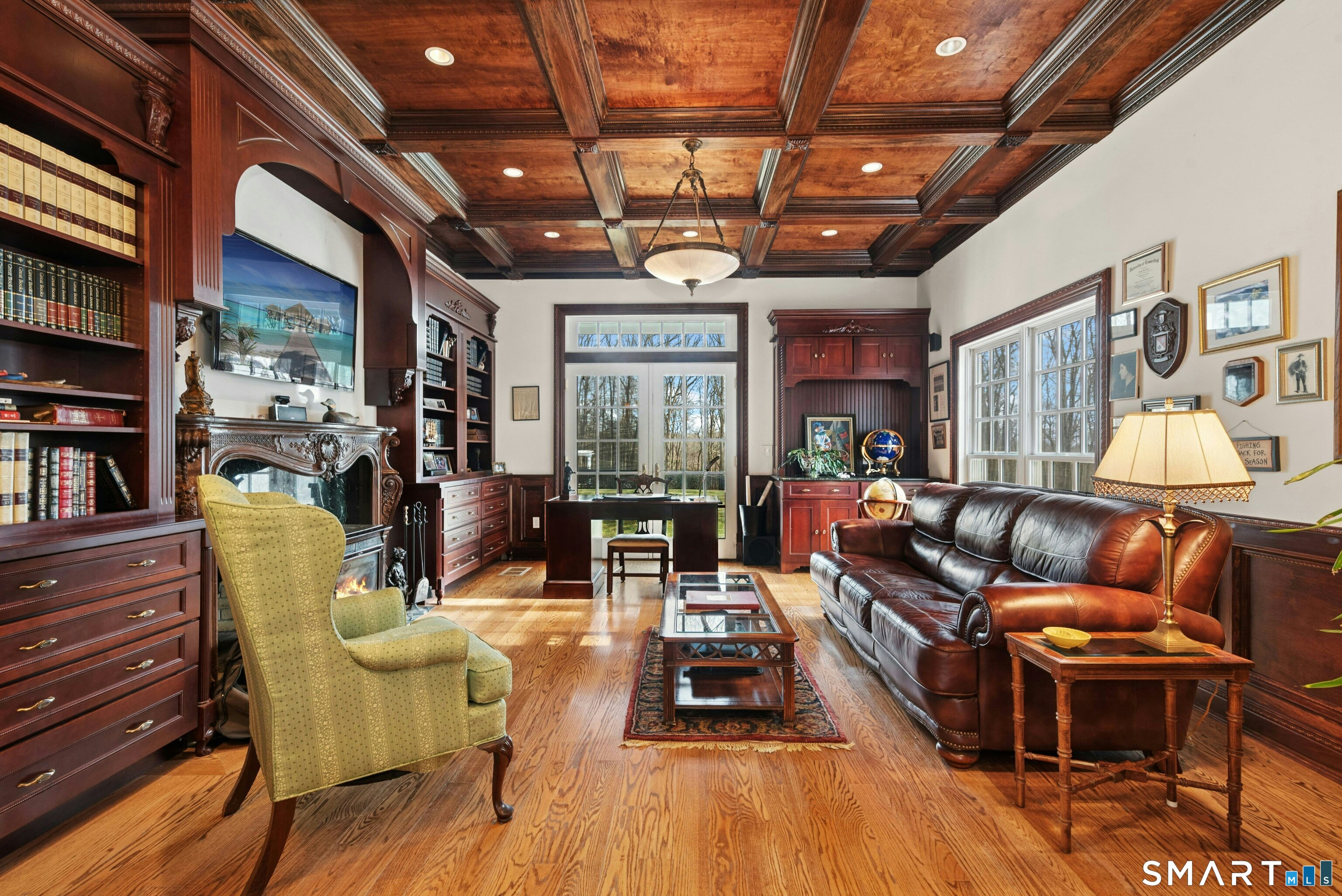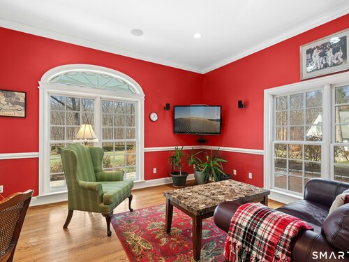 Palladian Window(s), 9 ft+ Ceilings, Built-Ins, Fireplace, Hardwood Floor