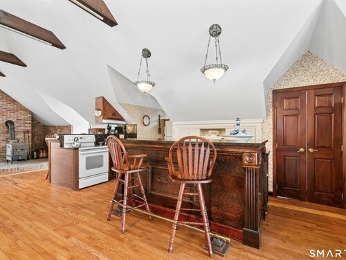 9 ft+ Ceilings, Built-Ins, Wet Bar, Fireplace, Wood Stove, French Doors
