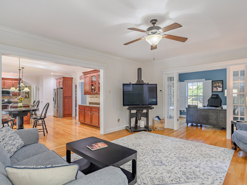 Ceiling Fan, Fireplace, French Doors, Hardwood Floor
