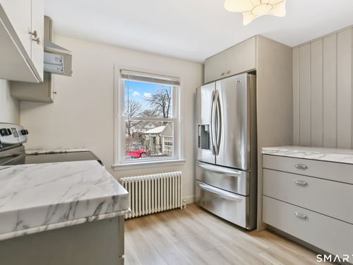 A classic Cape Cod home with a modern renovated appeal in the desirable North End in close proximity to Sacred Heart University. Recent renovations include a new roof, siding and updated electrical panel. Upon entering your spacious living/ dining room area which flows into your modern farmhouse kitchen with stainless steel appliances and custom marble countertops providing ample workspace! Adjacent to the kitchen is a wonderful 3 season room which is perfect for dining or simply relaxing. There are 2 bedrooms on the main level or a home office and a full bath with a designer deep soaking tub. The upper-level features 2 additional bedrooms and another updated bath. The lower level is partially finished with space for multiple uses and a half bath. Freshly painted and refinished floors. The work has been done for the new owners to enjoy! See agent remarks for additional details.
