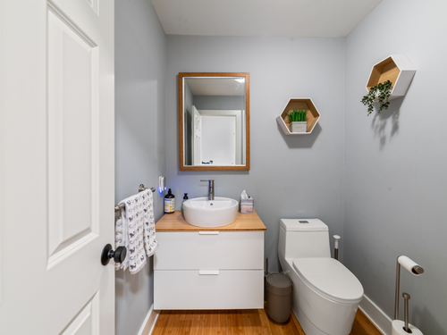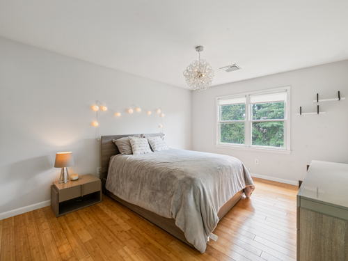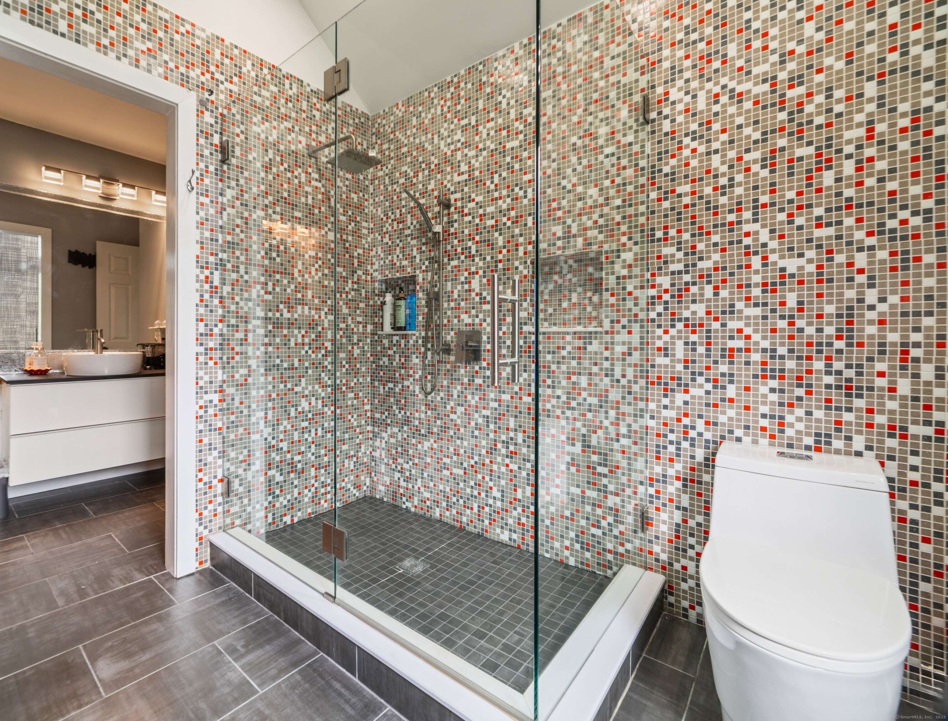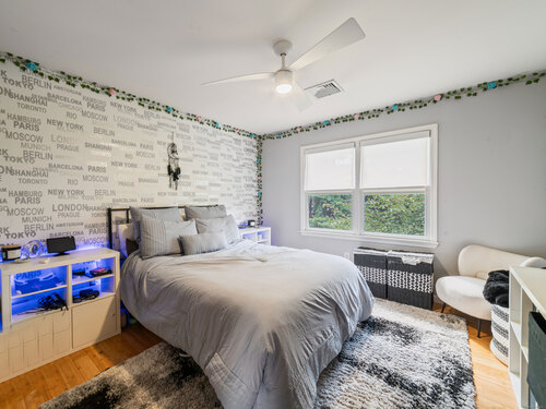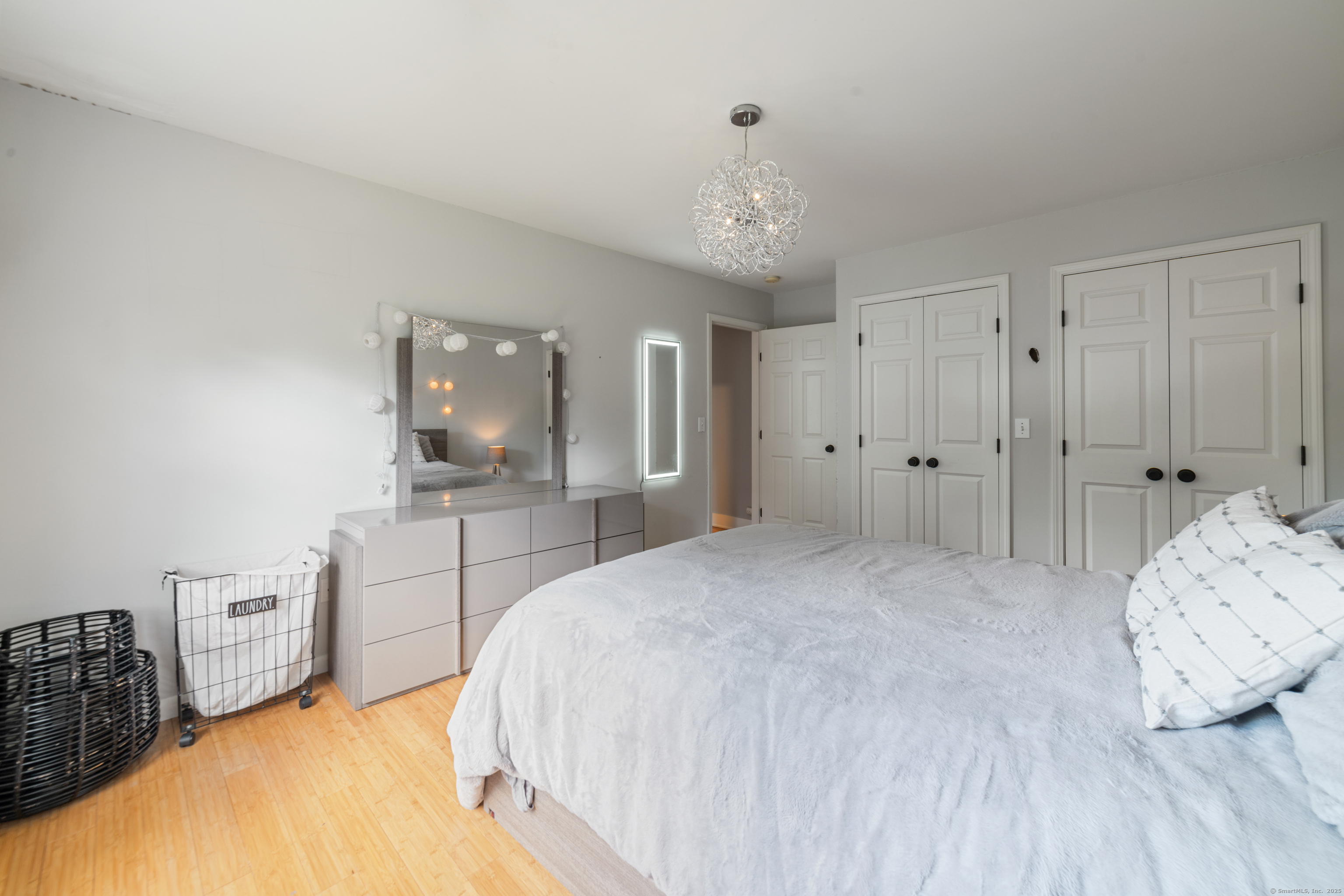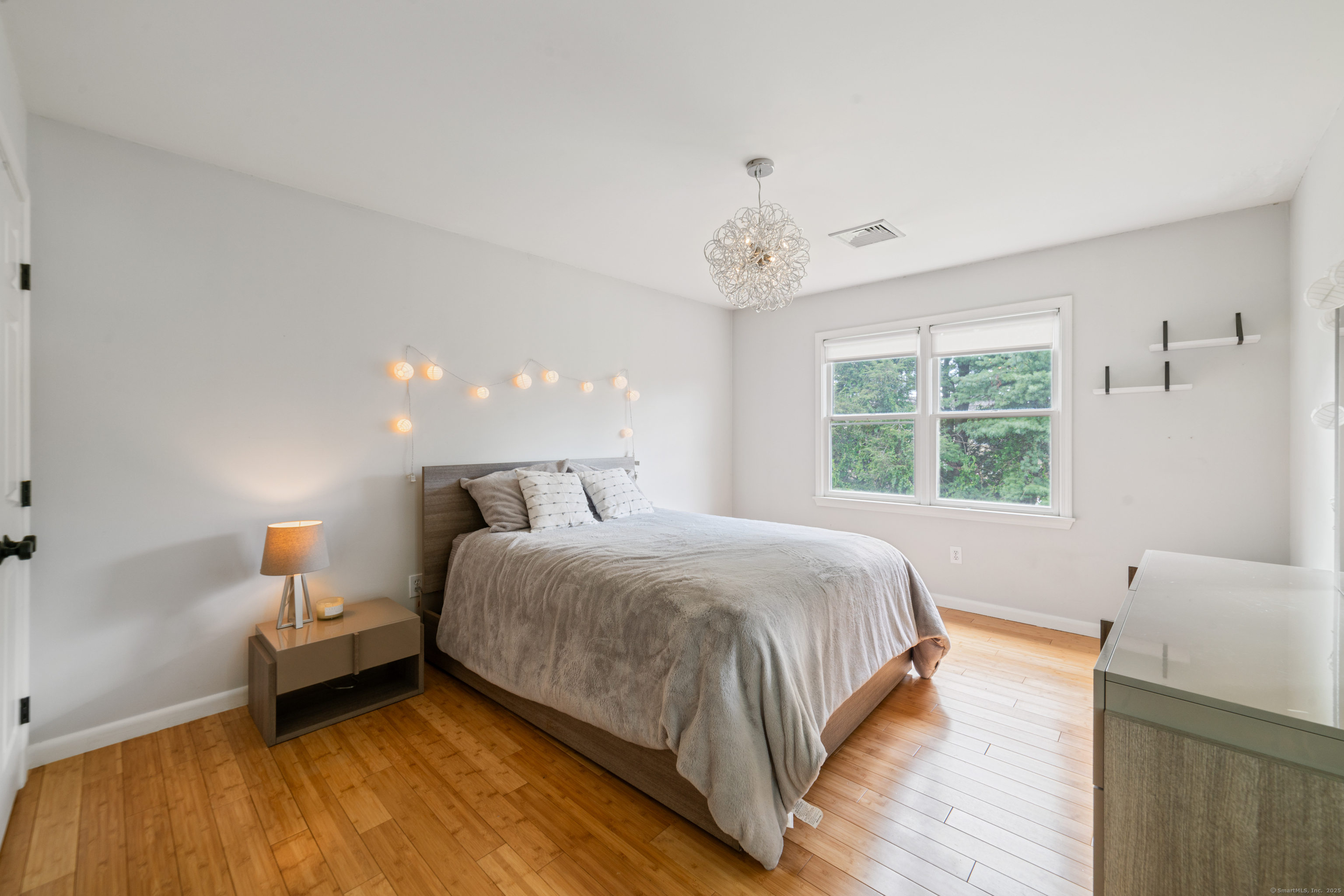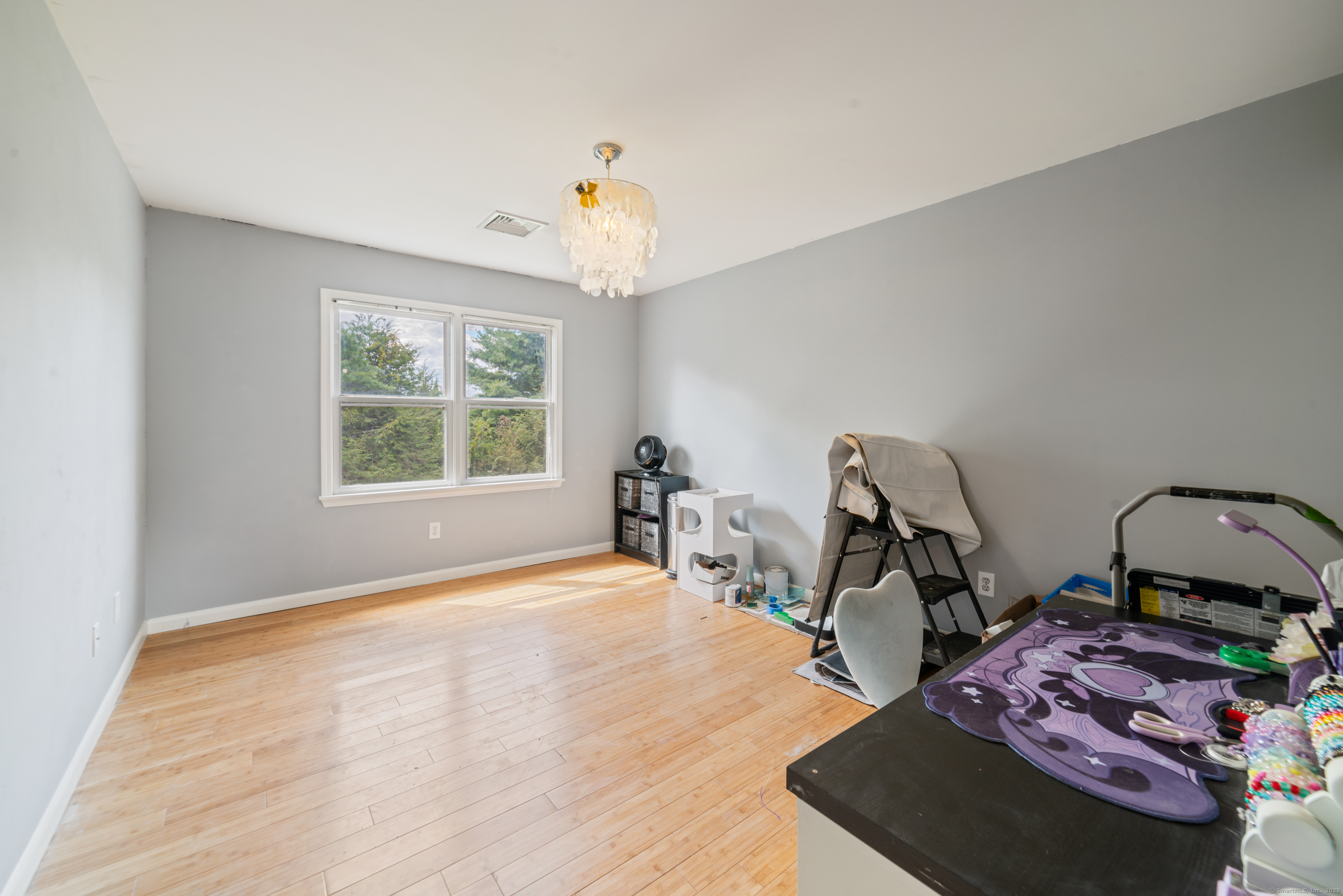 Located in a rural area within Newtown, Connecticut, this colonial home sits on a level, cleared corner lot. Constructed in 1996, the four-bedroom, 2.5-bath residence has been updated with modern aesthetics. The first floor features an open floor plan, with a kitchen equipped with an island, a dining area, a large picture window above the sink, and stainless Kitchen Aide appliances, including a wall oven and microwave. Quartz countertops and contemporary cabinetry are featured in the kitchen. The kitchen flows into the family room. A dining room, and study, are also located on the first floor.The kitchen opens onto a deck with an awning. Bamboo engineered flooring is installed throughout the home first and second floor. A cable-railed stairway with a chandelier lift leads to the second floor. The primary bedroom has ample natural light and includes a walk-in closet, a walk-in shower, and a soaking tub. Three additional bedrooms and a full bath with a walk-in shower are also located on the second floor. Additional features of the property include a dog fence, a generator, a water filtration system, and a propane-fueled continuous water heater. The home also offers a partially finished basement, an electric dog fence and a electric charger for your car in the garage.