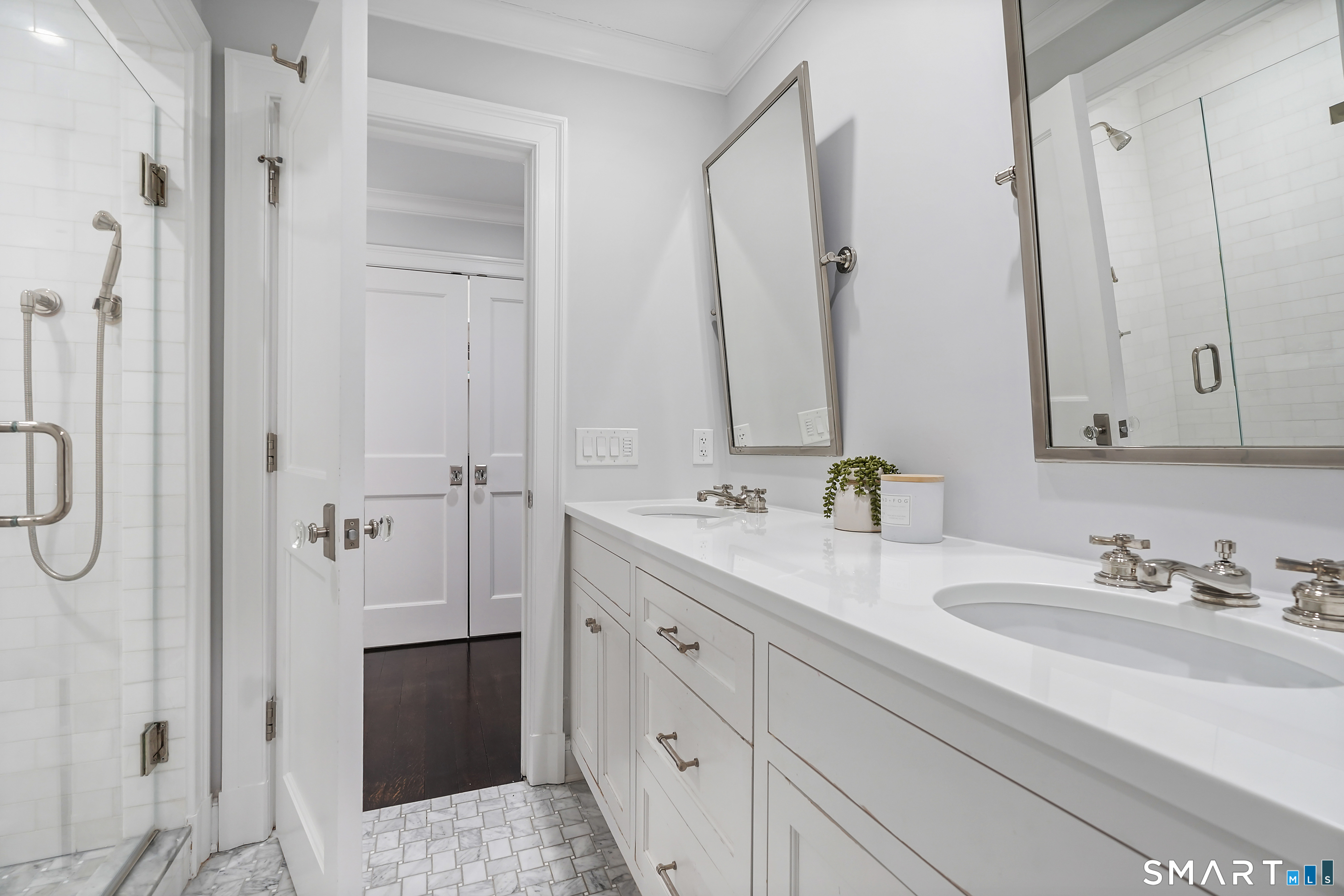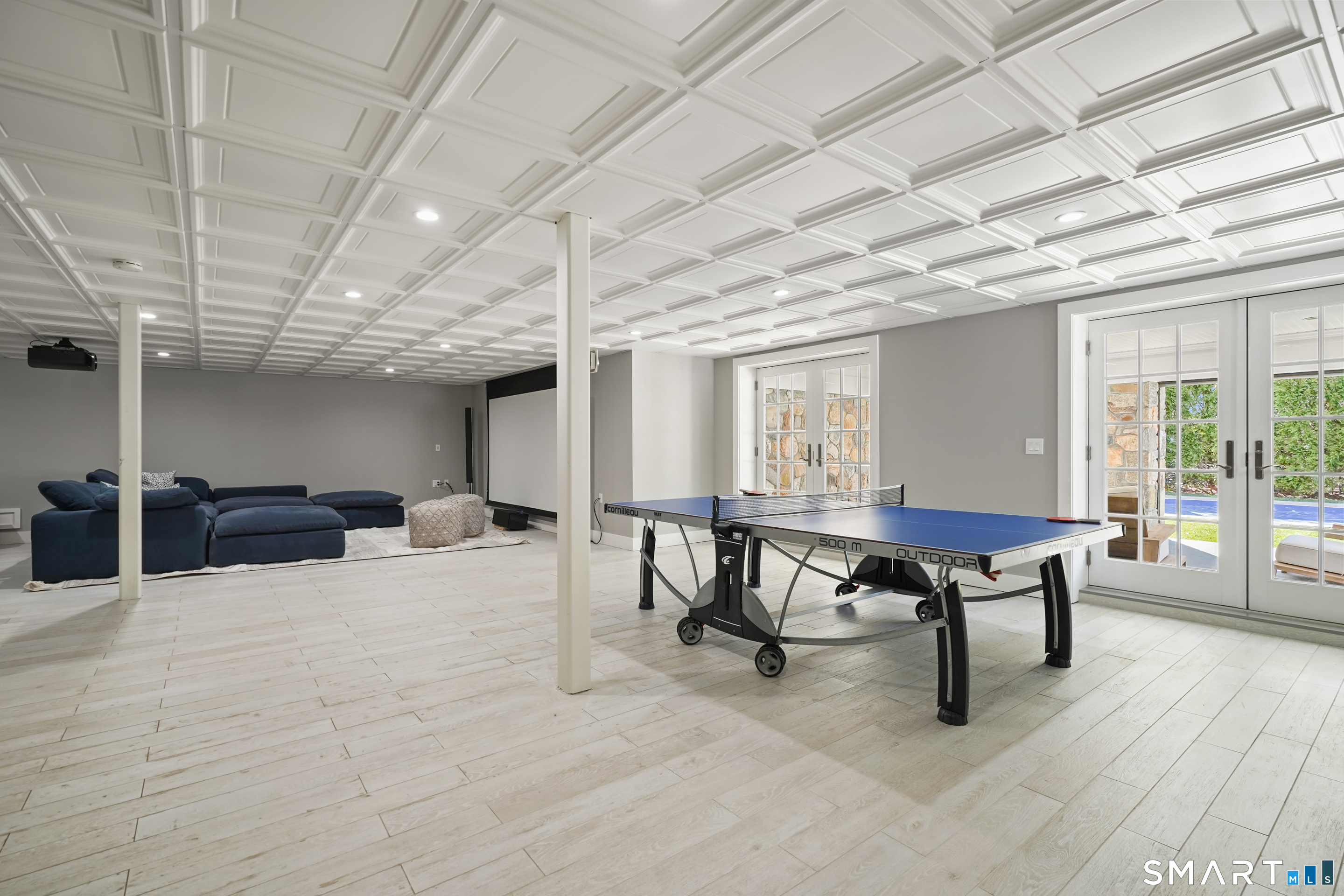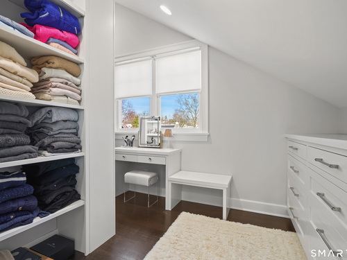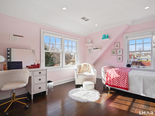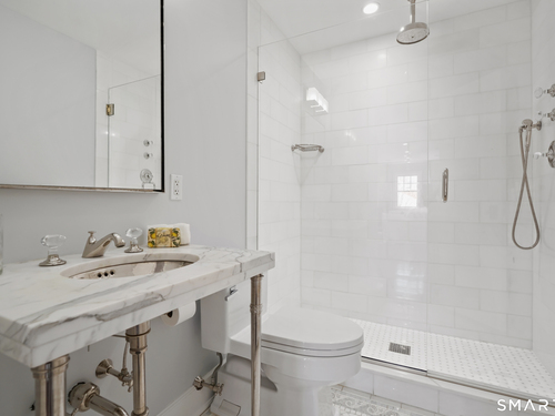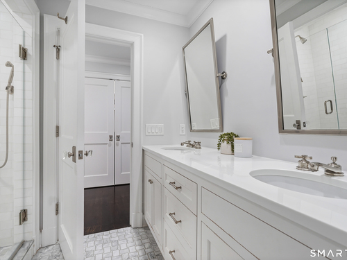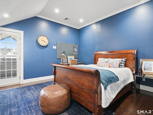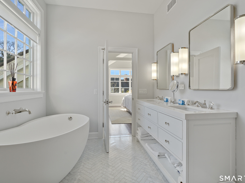 Welcome to 7 Grimes Road, a rare opportunity within one of Old Greenwich's private waterfront associations known for its relaxed, community-oriented feel. Where the sound is part of your day, not just your view. Private beach, boating and raft docks, think Sag Harbor, just an hour from NYC, no Jitney required. On a quiet cul-de-sac, with over 5000 SF this turnkey home was designed for everyday living and entertaining. A covered front porch leads to formal living and dining rooms, a relaxed family room, and a partially vaulted eat-in Putnam Design kitchen complete with Wolf and Sub-Zero appliances, all extending to a rear south facing deck overlooking the pool, terrace and detached 240 SF potential Cabana. A main level office with full bath provides flexibility for WFH, au pair, or guests. The upper level, with views of the Sound and beyond, includes a primary suite and three additional bedrooms. Vaulted ceilings bring in southern light throughout. The primary suite is defined by a well-appointed bath, two custom walk-in closets, and a dedicated dressing room. Two hall baths feature Waterworks hardware and Kohler Veils. Among the additional bedrooms, one includes a private balcony. Modern systems include a generator, tankless hot water, radiant heat across the lower and main levels, and central air. Smart home features include WiFi, Nest and Tekmar 521 thermostats, security, and multi-zoned audio throughout the first floor and outdoor spaces.