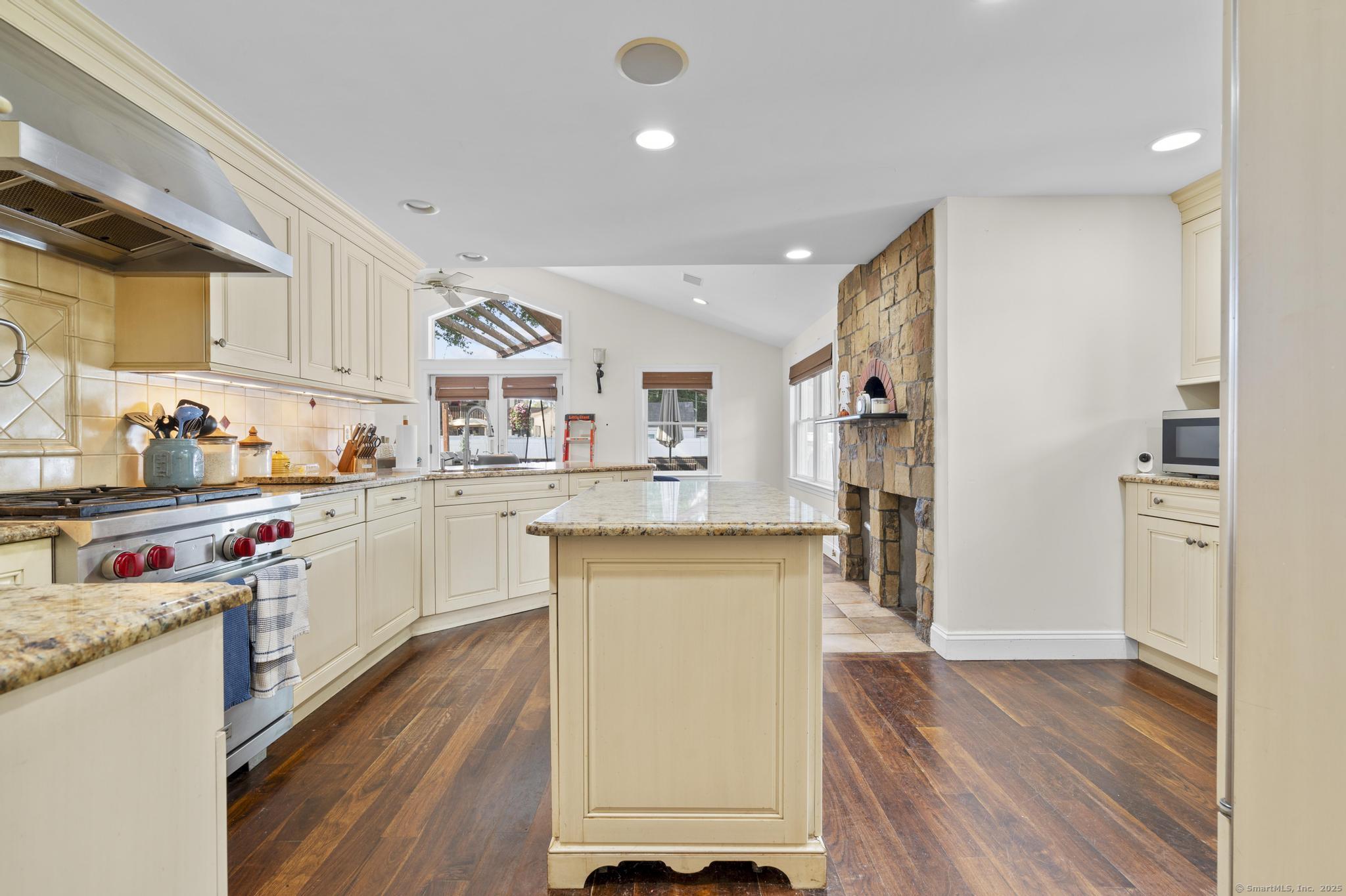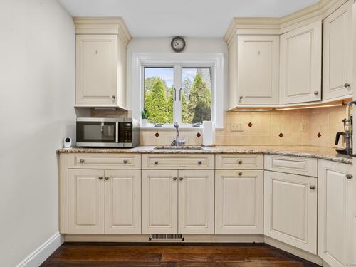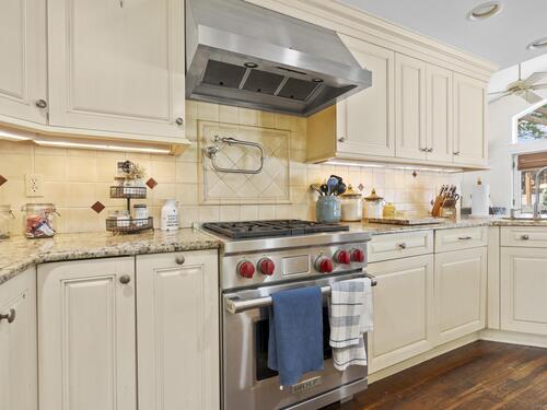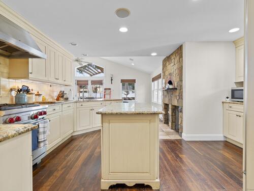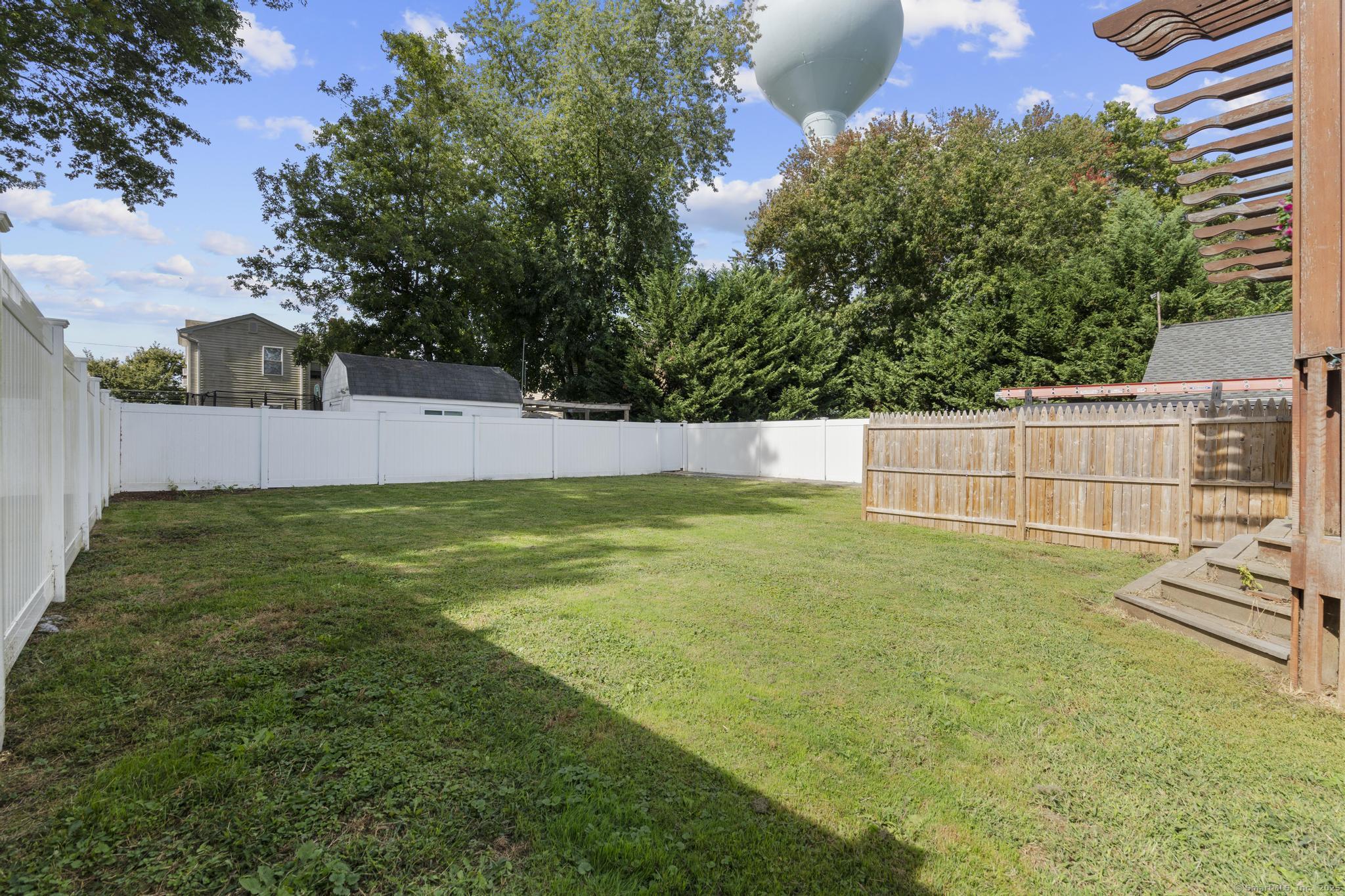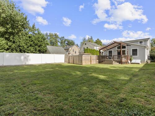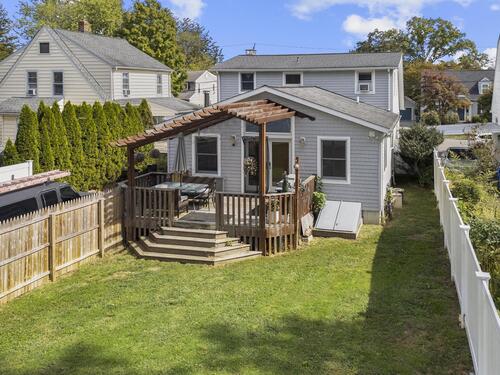 Nestled on a quiet dead-end street in the heart of Brookside, this beautifully expanded Cape Cod home offers the perfect blend of comfort, character, and modern convenience. Step inside to discover an open, light-filled layout featuring soaring 12+ foot ceilings in the living room, rich hardwood floors, and oversized windows. The main level boasts a spacious primary suite and a thoughtfully designed floor plan ideal for both everyday living and entertaining. Enjoy seamless indoor-outdoor living with sliding glass doors that open to a generous wood deck, overlooking a fully fenced, professionally landscaped backyard .The updated chef's kitchen is a standout, featuring premium appliances, elegant stone countertops, and a custom-built stone pizza oven - perfect for hosting unforgettable gatherings. A built-in home audio system adds ambiance throughout the home. The expansive basement, with over 7-foot ceilings and the full footprint of the home, offers endless potential for finishing into additional living space. A standout feature is the ~400 sq/ft detached "shed" - fully insulated, wired with electricity.