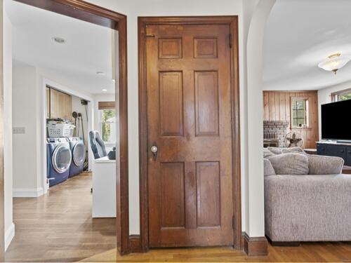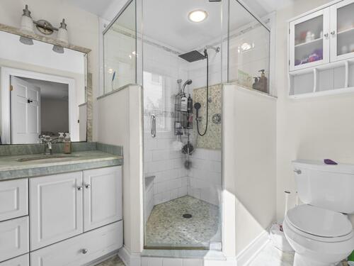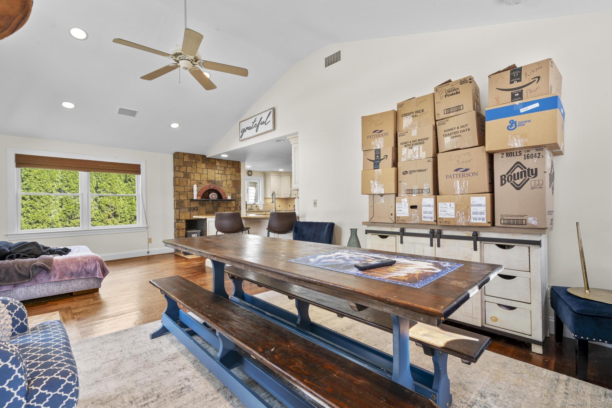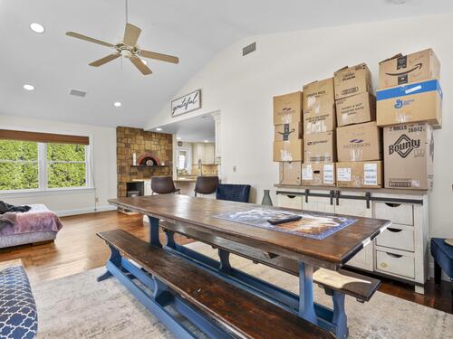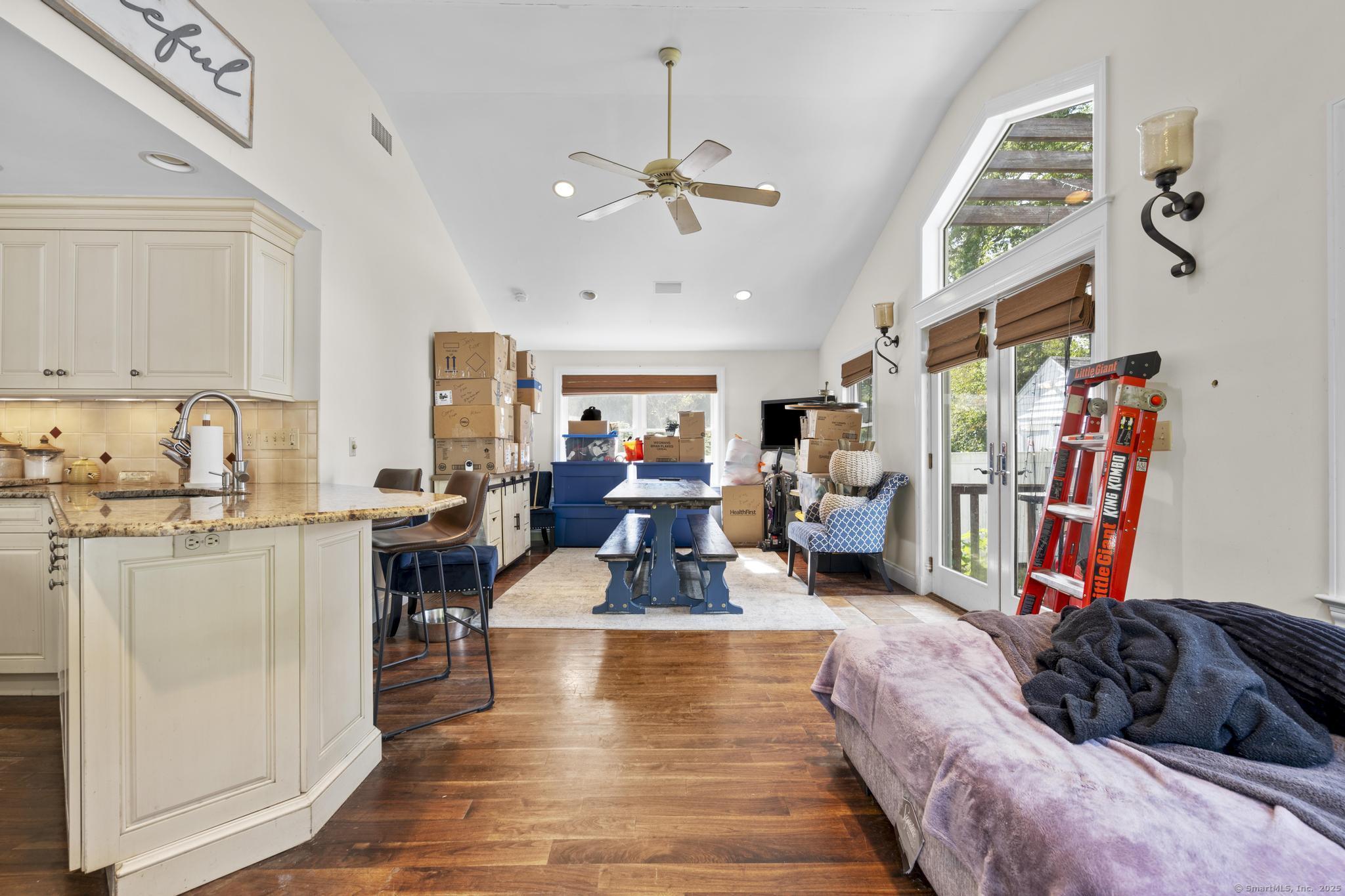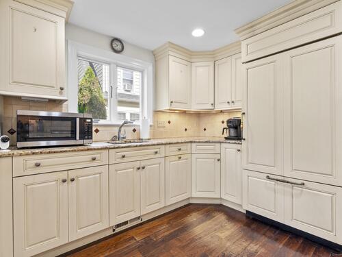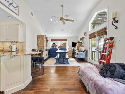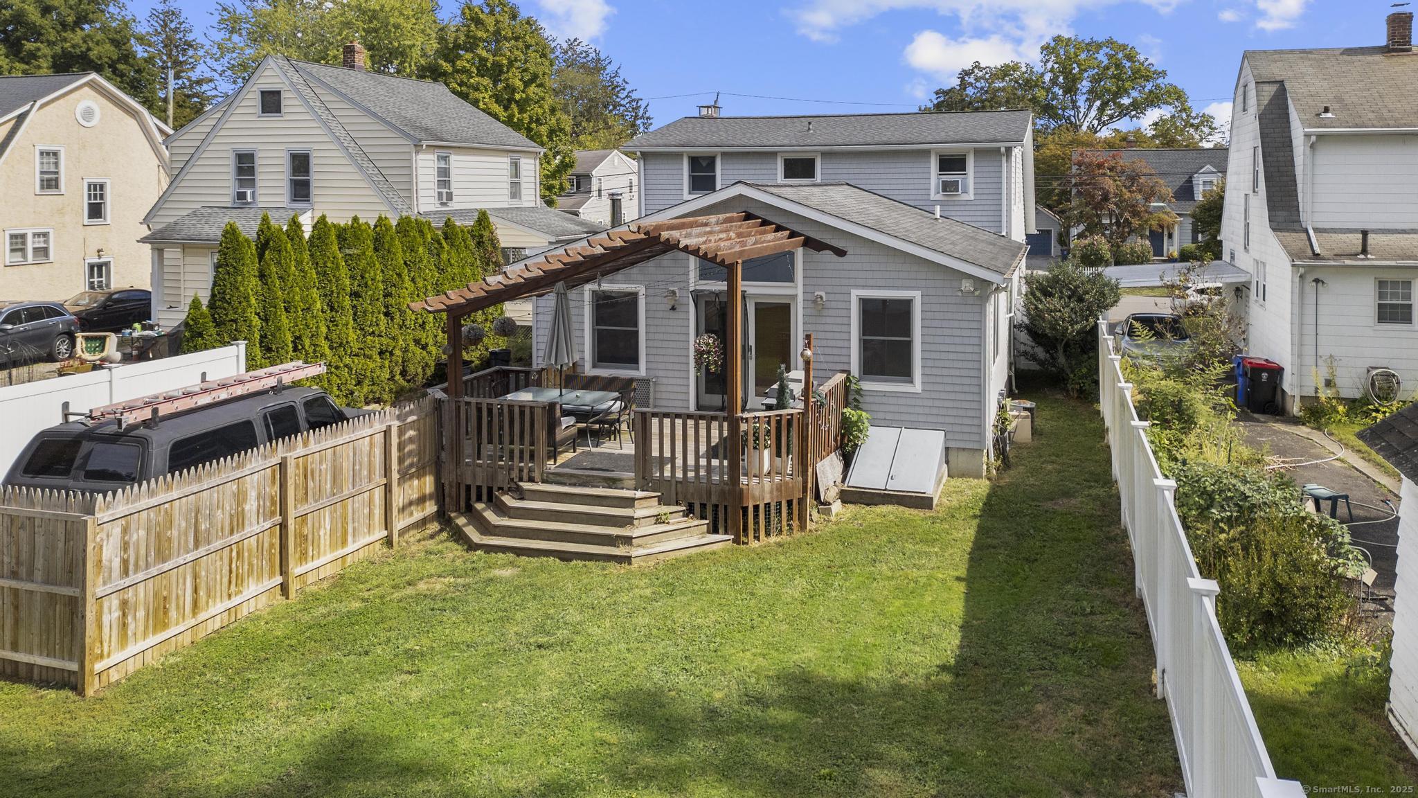 Nestled on a quiet dead-end street in the heart of Brookside, this beautifully expanded Cape Cod home offers the perfect blend of comfort, character, and modern convenience. Step inside to discover an open, light-filled layout featuring soaring 12+ foot ceilings in the living room, rich hardwood floors, and oversized windows. The main level boasts a spacious primary suite and a thoughtfully designed floor plan ideal for both everyday living and entertaining. Enjoy seamless indoor-outdoor living with sliding glass doors that open to a generous wood deck, overlooking a fully fenced, professionally landscaped backyard .The updated chef's kitchen is a standout, featuring premium appliances, elegant stone countertops, and a custom-built stone pizza oven - perfect for hosting unforgettable gatherings. A built-in home audio system adds ambiance throughout the home. The expansive basement, with over 7-foot ceilings and the full footprint of the home, offers endless potential for finishing into additional living space. A standout feature is the ~400 sq/ft detached "shed" - fully insulated, wired with electricity.