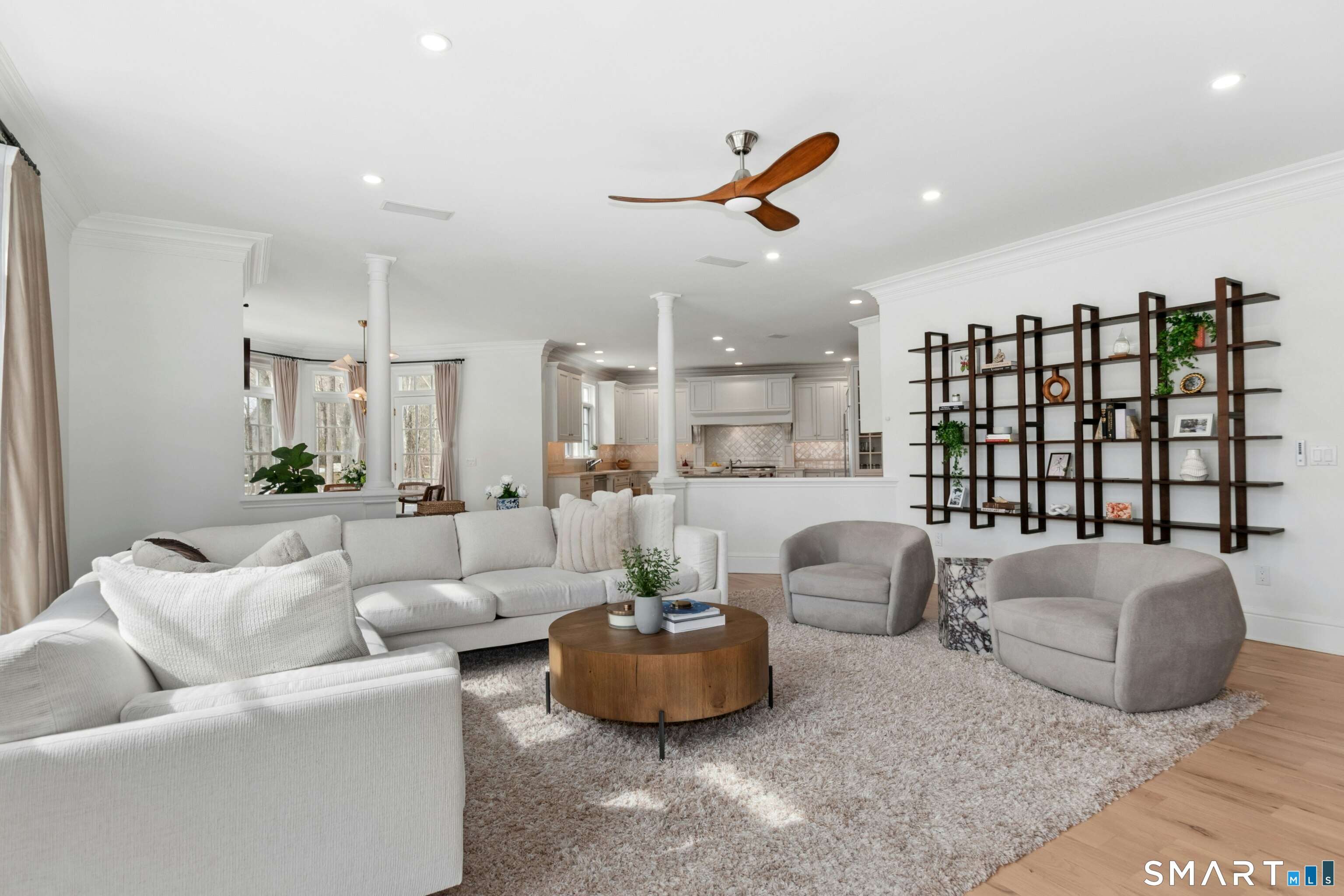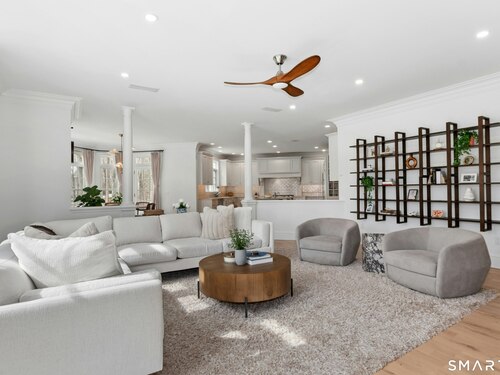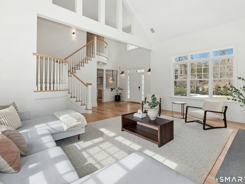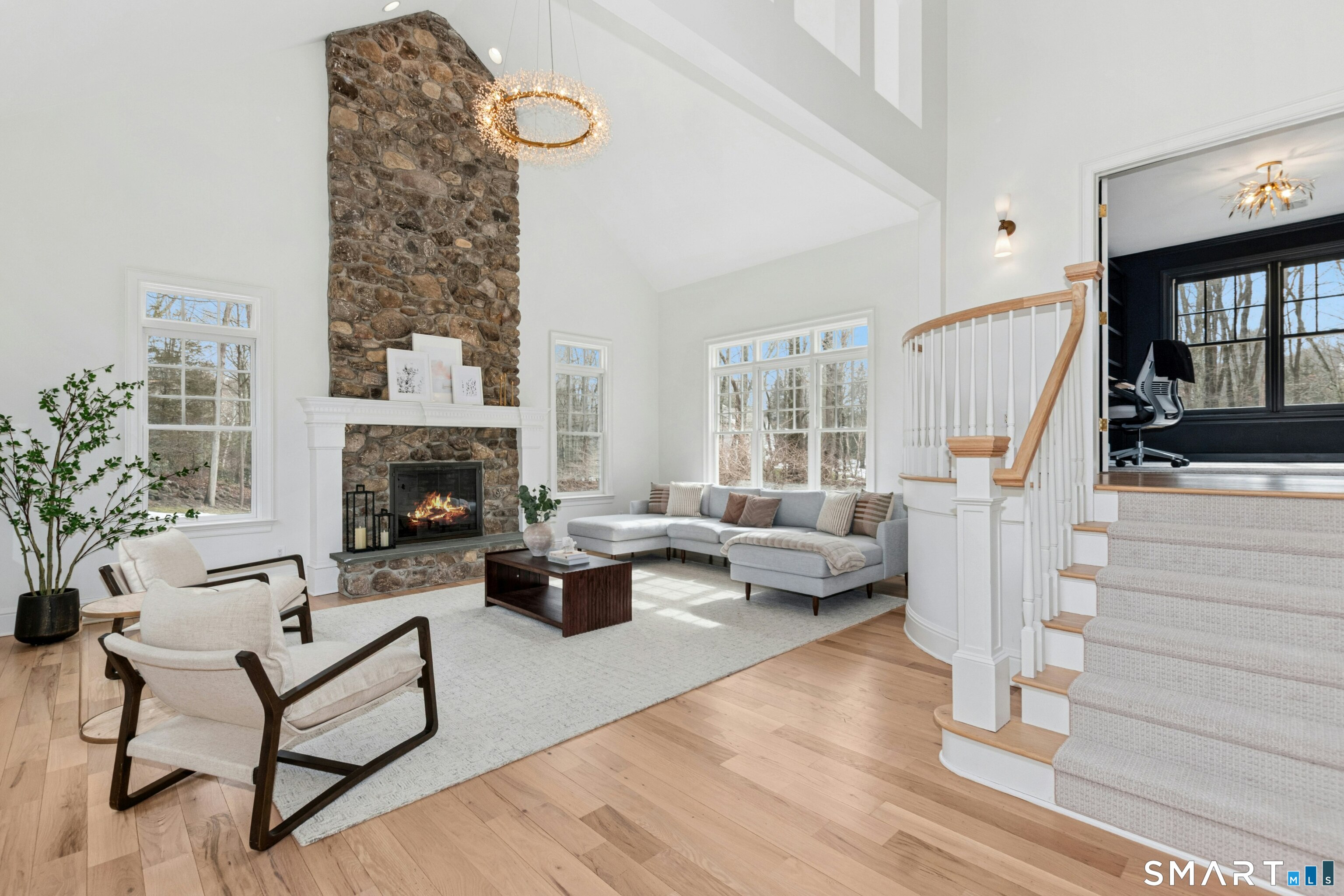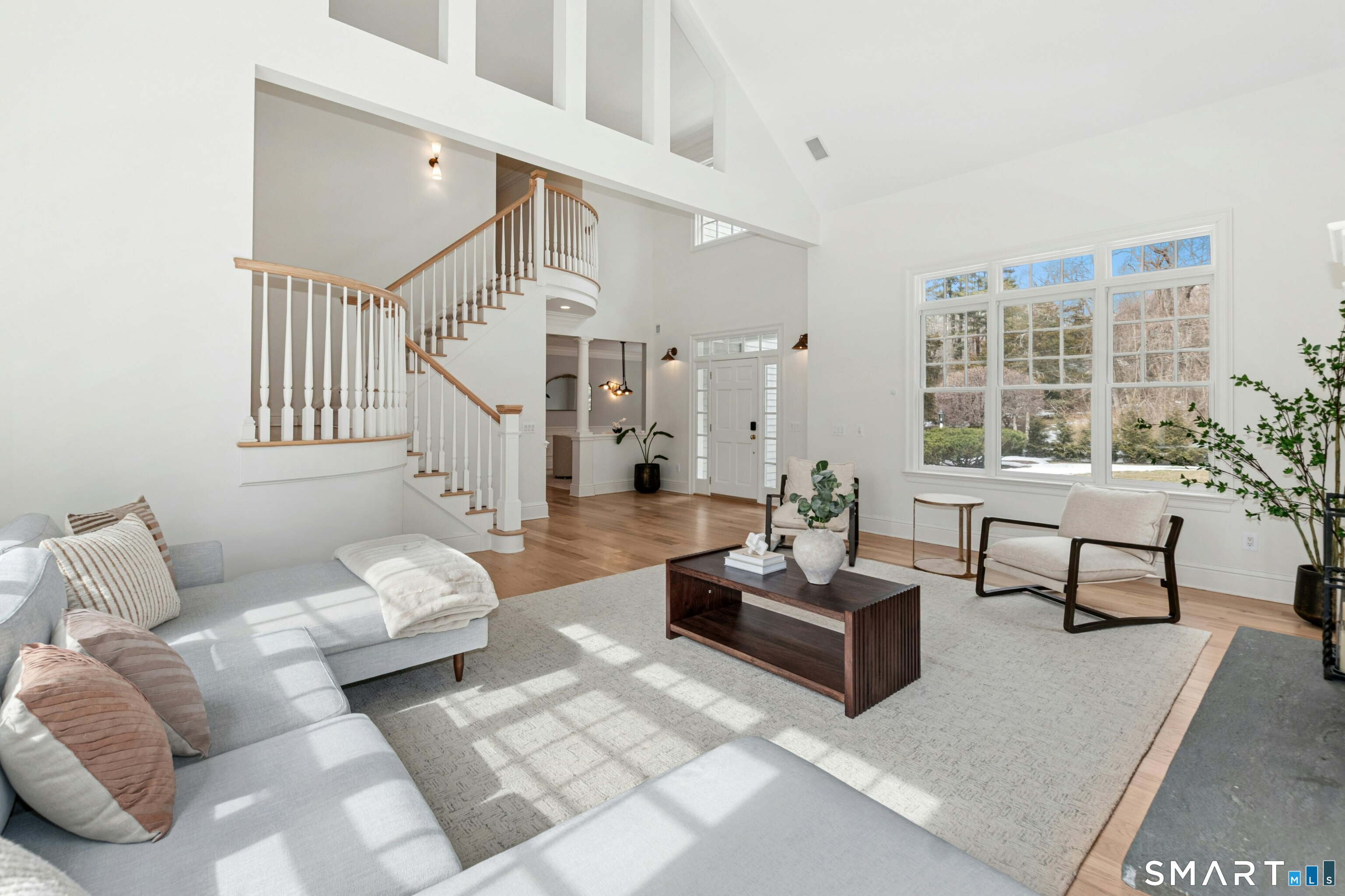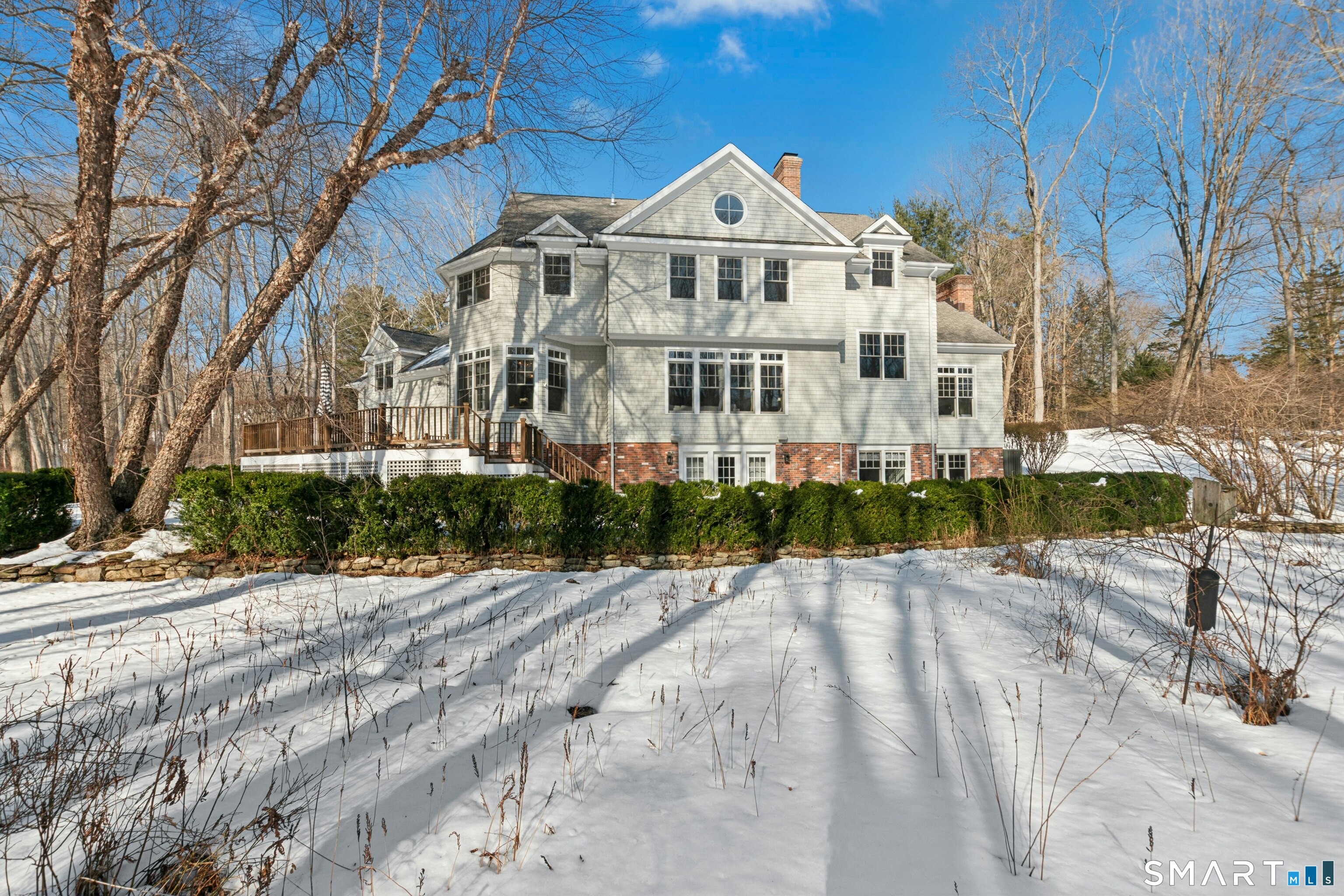 The address says it all-7 Homeward Lane is home in every sense of the word. This architect-designed Nantucket-style colonial is a welcome departure from the ordinary, blending timeless elegance with modern functionality. Nestled on a professionally landscaped, flat, park-like 2.55-acre property, it offers stunning curb appeal coupled with absolute peace and privacy. Step inside this light-filled home, where soaring ceilings and dramatic spaces make a striking first impression. The Great Room features 26-foot ceilings and a 2-story fireplace, while the home is enhanced by masterful millwork, custom built-ins, renovated bathrooms, fresh paint, new lighting, and refinished random-width hardwood floors in a light, modern hue. The large white chef's kitchen features a generous island and oversized breakfast room with patio access, high-end appliances including a new 48-inch Wolf range, Bosch dishwasher, and Sub-Zero refrigerator, & opens to a welcoming family room. The primary suite is paneled and vaulted, with a 2-sided fireplace, sitting area, his-and-her walk-in closets, and spa-like bath. All 5 bedrooms feature their own designated bathrooms. A dedicated office & flexible spaces on the 3rd floor and lower level could serve as offices, media rooms, playrooms, or exercise areas. Ample storage, a Tesla/EV charger, new boiler, water treatment system, and HVAC complete this thoughtfully designed home. This wonderful retreat offers everything the most discerning buyer could desire.