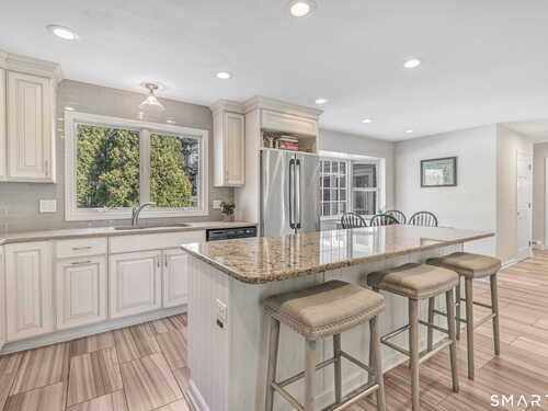 Some homes & neighborhoods feel different, where the setting is just as special as the home itself, w/ quiet streets, a hidden neighborhood tot lot & a true sense of connection. You'll find all that and more at 7 Lafayette Dr, where timeless design meets everyday comfort. A classic Colonial facade sets the tone for a thoughtfully designed interior offering both flow and function. The foyer is flanked by a sun-drenched formal living room with a dry bar and built-in wine rack, and a spacious family room anchored by a white brick fireplace. At the heart of the home, the updated eat-in kitchen features a breakfast nook, island with seating and storage, pantry wall, stainless steel appliances, double ovens, and glass tile backsplash, with a bay window overlooking the backyard. The dining room easily accommodates both large gatherings and intimate dinners. A cozy four-season room with vaulted ceilings and deck access offers year-round enjoyment. A full bath, laundry area, and garage access complete the first floor. Upstairs are 4 bedrooms and two full baths surrounding a large landing. The primary suite includes double closets and a renovated bath with a glass walk-in shower and marble vanity. 3 additional bedrooms share a well-appointed hall bath. Outside, enjoy a flat backyard with mature trees, a tiered deck, fire pit, shed, and wooded backdrop for added privacy. A three-car attached garage completes the home. Located in desirable Joan Estates within Trumbull's Long Hill area.