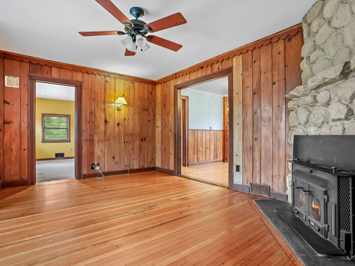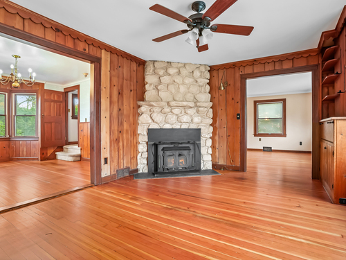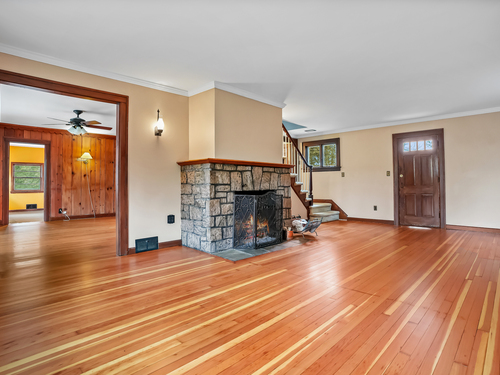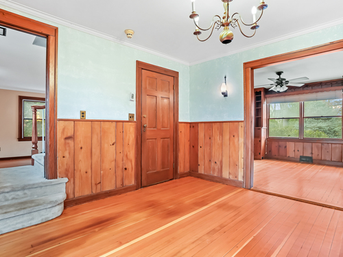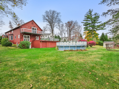 Are you seeking a dreamy early 20th century home with vintage charm, impressive acreage, partially-finished lower-level, and an unparalleled location? Look no further than 7 McNeil Road! Picturesquely nestled on a 2.02+/- acre parcel just moments from restaurants and I-84, this three bedroom, two and a half bath, 2,300+ square foot residence radiates a quintessential Northeastern vibe with a classic farmhouse-red exterior, stunning specimen shrubbery, lush mature trees, and a welcoming granite walkway. Originally built in 1915, the home captures a sensibly stylish, yet pleasant aesthetic of warmth, comfort, and function. Enter inside to find beautifully refinished hardwood floors, soft natural light, rustic wood paneling, spacious family room, and an inviting living room with a woodburning fireplace. Ideal for preparing holiday meals, the kitchen delights with wood cabinets, gas stove, and an expansive custom window overlooking the backyard. Entertain in the adjacent formal dining room, which boasts an original built-in corner hutch and bay windows. Explore the upper-level to discover a spacious primary bedroom with deck access, ample closet space, and an en-suite. Two extra bedrooms and a full bathroom offer cozy accommodations, while the partially finished lower-level ensures flex space with a rec room and separate workbench area.