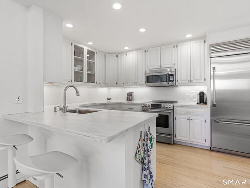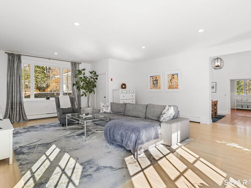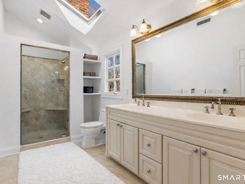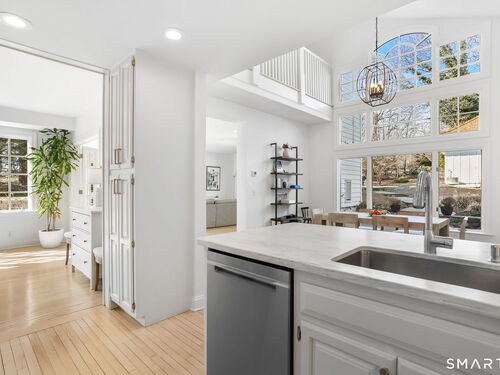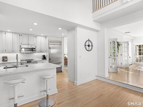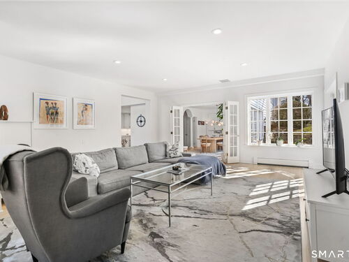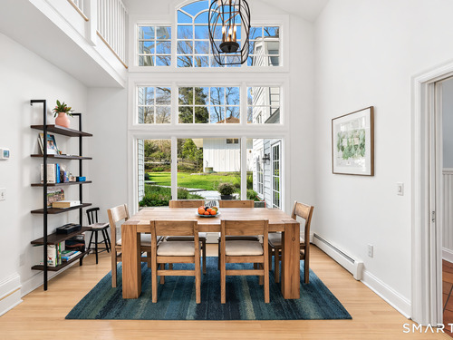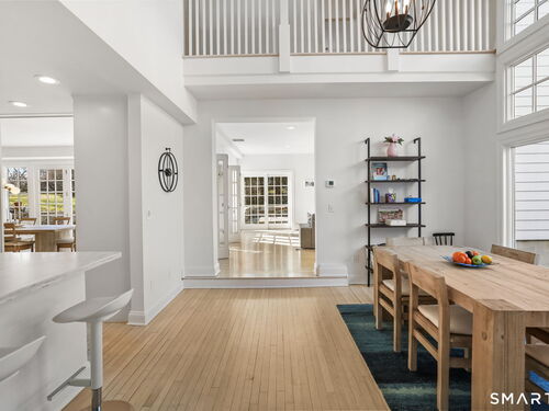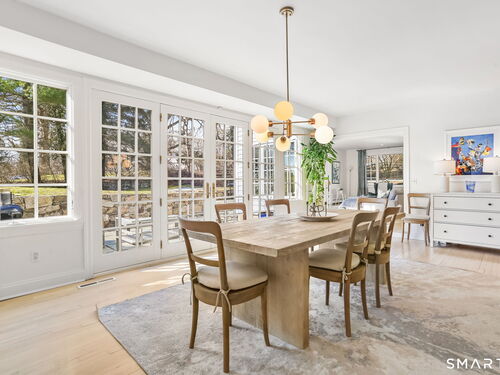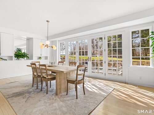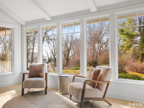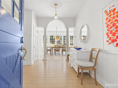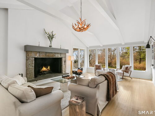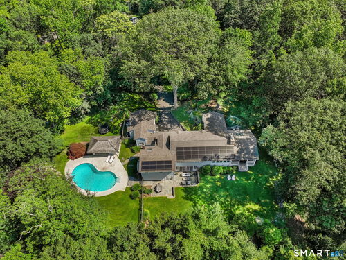 Perched high in the coveted Delafield Island Association, this beautiful colonial with pool and cabana offers a rare combination of privacy, natural light, and effortless indoor outdoor living. Inspired by the relaxed elegance of a California design, the home unfolds with open, airy spaces and dramatic scale. A spectacular two-story wall of windows fills the eat in kitchen with sunlight, creating a striking focal point and connecting the home beautifully to the surrounding landscape. On the other hand, the family room features an oversized fireplace and expansive views of the backyard, with seasonal views of Scott Cove adding to the sense of place. The kitchen flows seamlessly into the living room, creating a natural gathering space at the heart of the home. Upstairs, the primary suite offers a deck overlooking the pool, walk in closet and private bath, complemented by four additional bedrooms that provide flexibility for family, guests and a designated office that opens out to a porch. The windows throughout this home make this home sundrenched! Outside, the property truly shines. An expansive level lawn leads to a heated gunite pool and fully equipped cabana with sink, refrigerator, lighting, bathroom, and storage. Whether hosting summer gatherings or enjoying quiet afternoons locally by the water, the setting is designed for relaxed coastal living. A premier Delafield Island location close to town, train, and beaches, makes this a truly special offering.