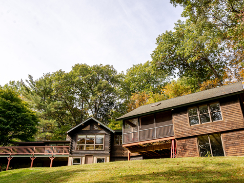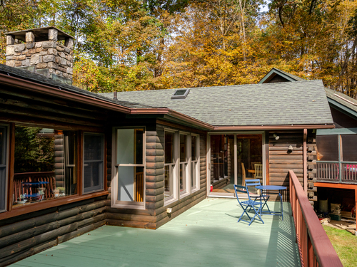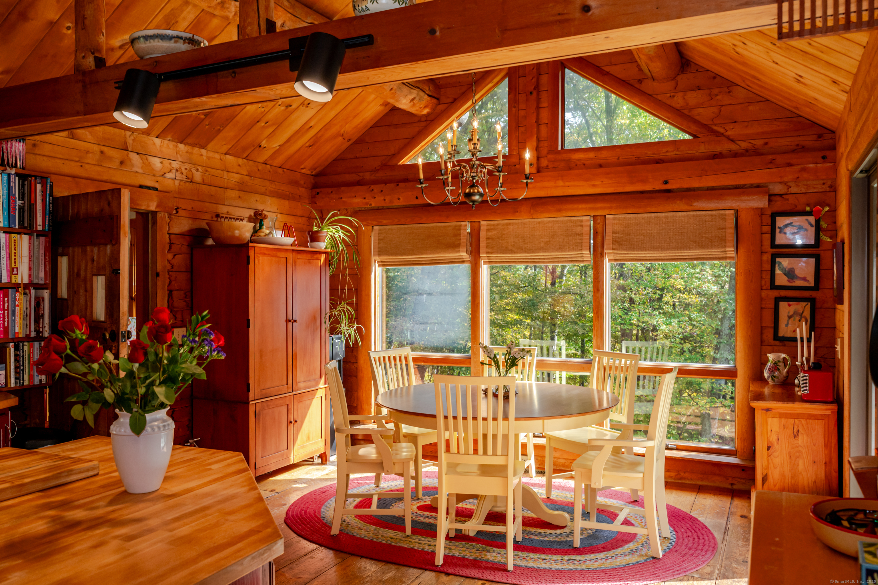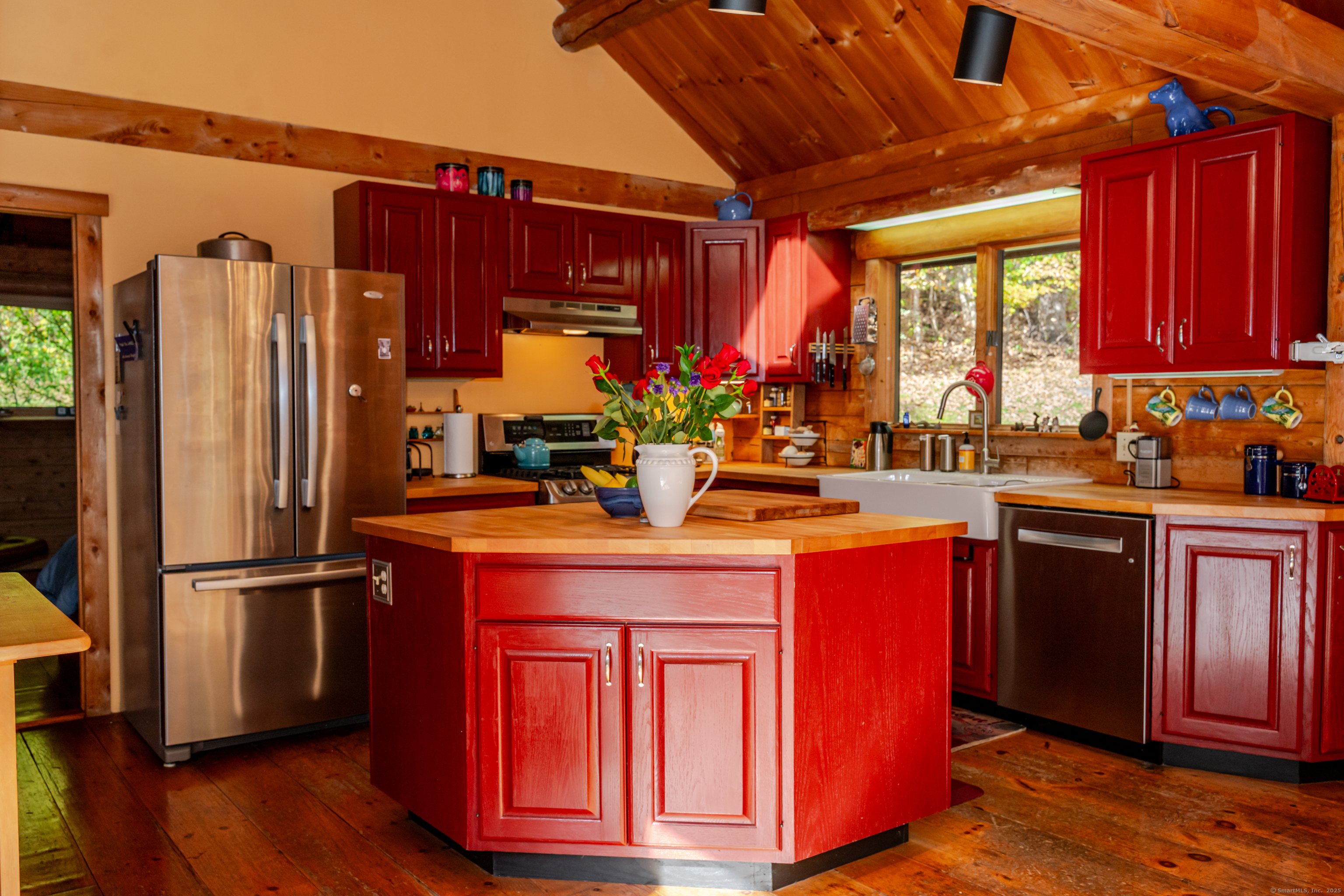 Don't be fooled by first glances, When you pull into the driveway you will see a sweet log home in a peaceful and private landscape, what you don't see is the large newer thoughtful Architect designed addition on the north side of the house. This is the heart of Sherman, a short walk to the store, school, park and library. Charm and character through out ! There is a country kitchen with lots of light, it is a joyful space to create and dine in. The great room, also filled with light, has a soaring stone fireplace. The screen sun porch is the perfect place for a lazy summer nap and for warm weather entertaining. There is a mud room/coat area tucked behind the great room. The large master has an ensuite bath and walk in closet decked out with drawers and shelving. The second bedroom also has an ensuite bathroom. And the third bedroom has a door directly into a bathroom.The basement is HUGE, lots of room for storage and a workshop. The seasonal mountain views are inspiring!