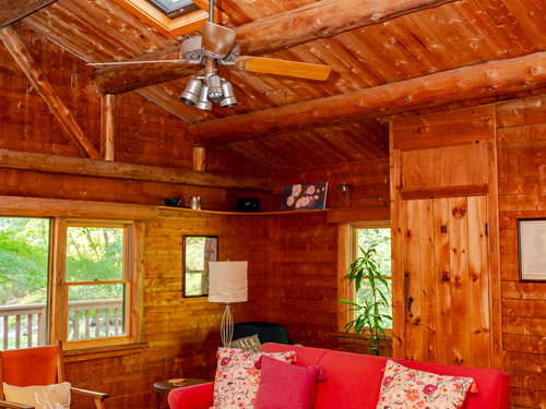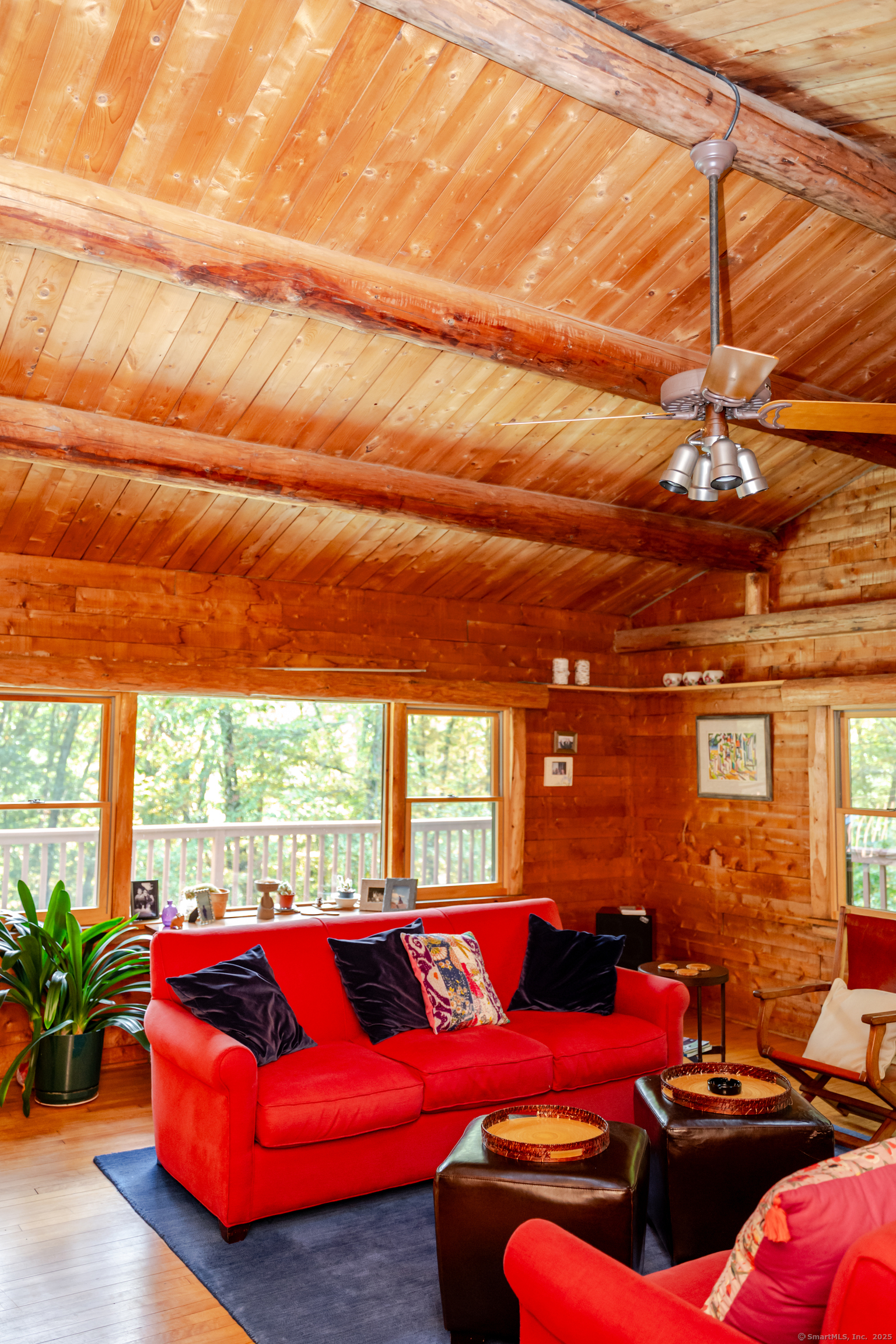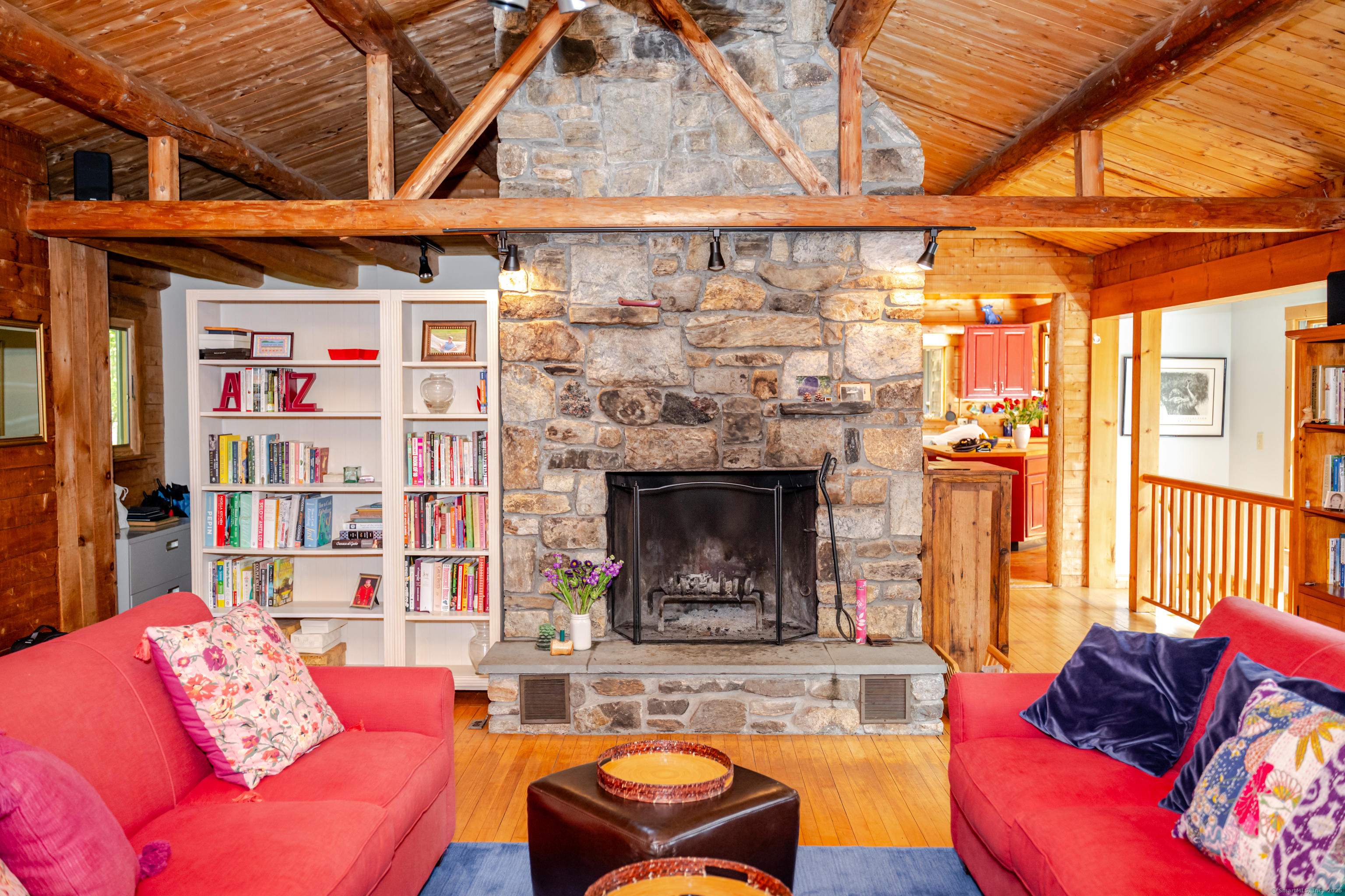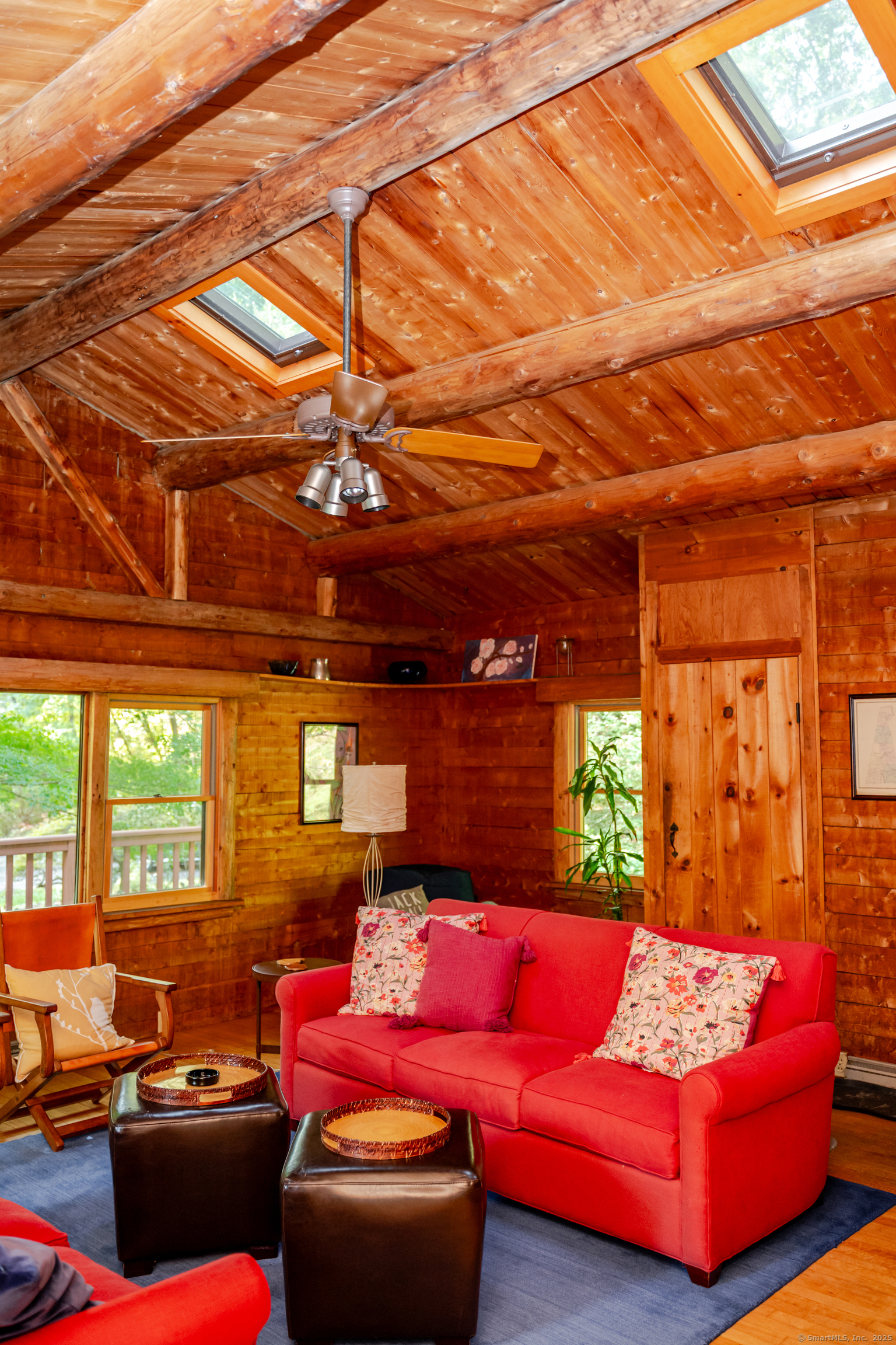 Skylight, Cathedral Ceiling, Beams, Ceiling Fan, Fireplace, Hardwood Floor