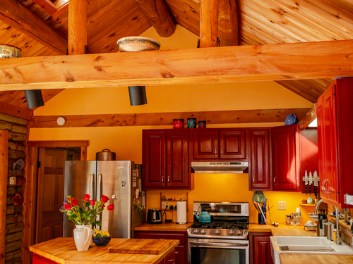 Skylight, Cathedral Ceiling, Beams, Full Bath, Hardwood Floor