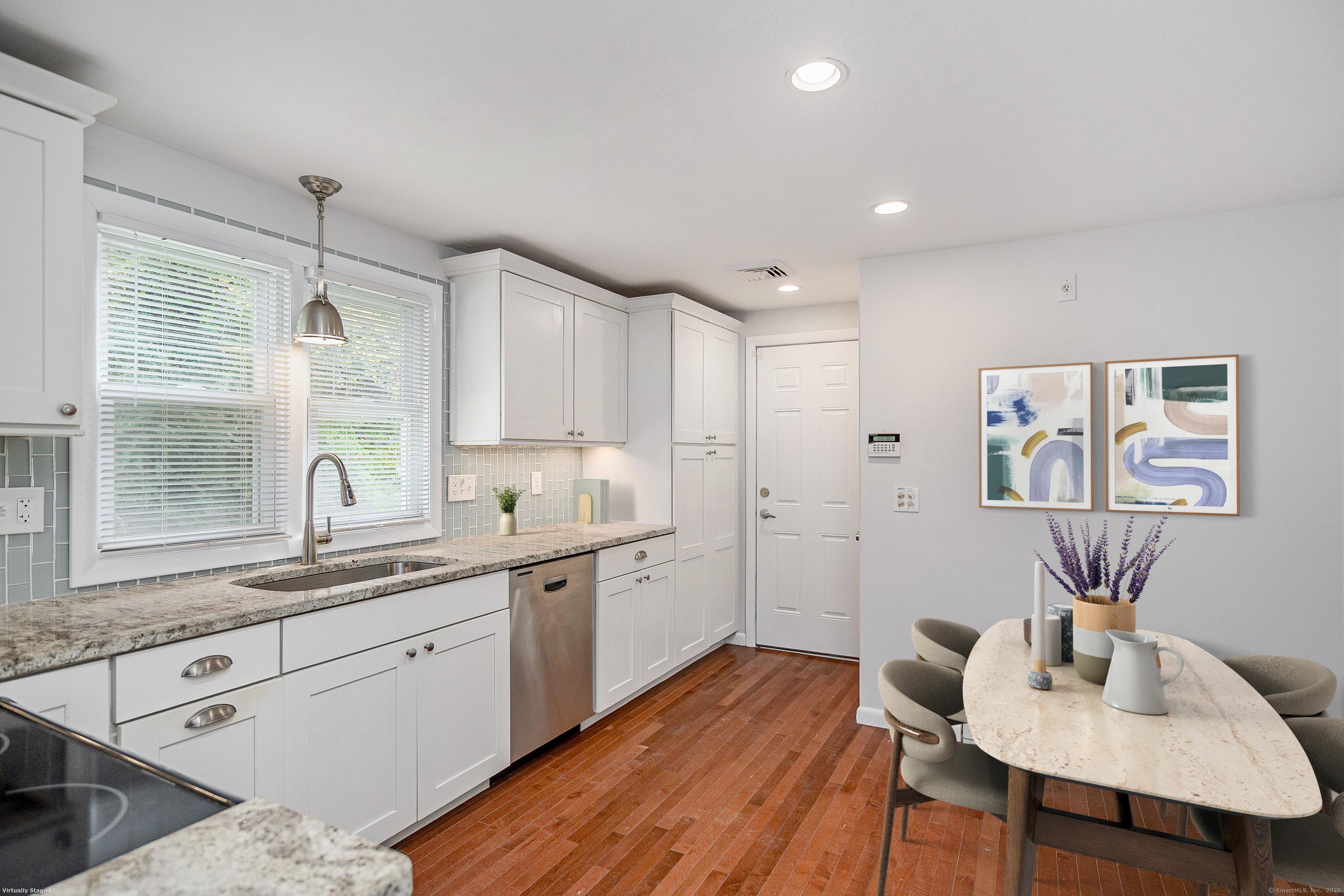 Sweet and Petite!! Fall in love! Step inside to the smell of fresh paint in this adorable updated ranch. An open style floor plan leads to an updated designer eat-in kitchen with granite counters, white cabinetry, and newer stainless appliances, plus a trendy glass backsplash. Listen to the sounds of a crackling wood fire on a chilly fall evening after hosting a dinner in the adjoining dining room. The full bath is completely updated, boasting penny marble tile flooring, white vanity with a stone counter, and beadboard. Full laundry located in the second bedroom. Unfinished lower level awaits your inspiration and imagination for additional living space. The level lot offers a wooded backdrop ideal for throwing a football around, playing soccer, or hosting family barbecues. Hop on nearby I-84, close to shopping, Target, restaurants, Stew Leonard, AMC IMAX Theater & more.