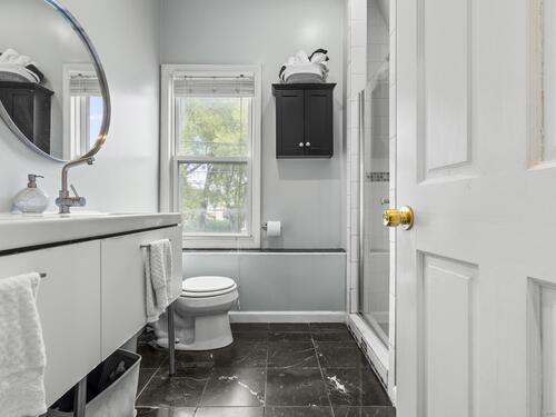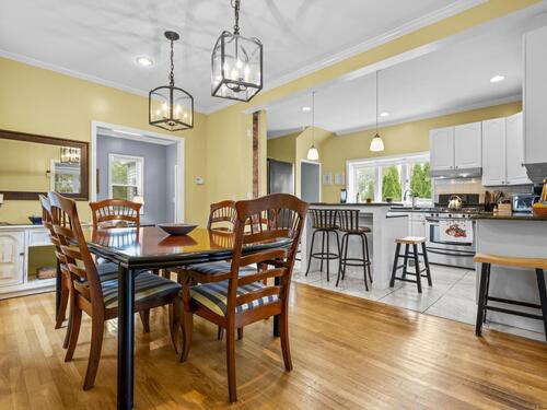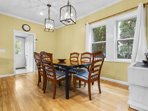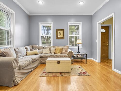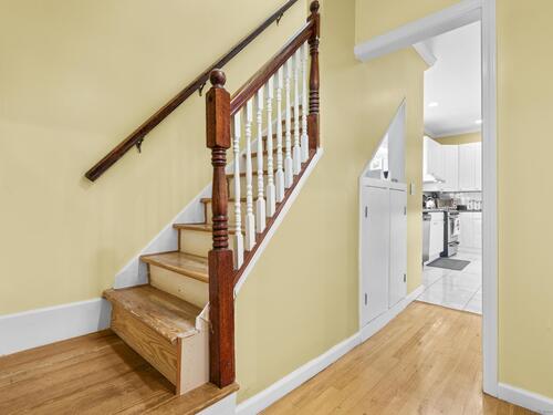 This beautiful home offers modern finishes and thoughtful details throughout. Featuring 9-foot ceilings accented by elegant crown molding, the home feels bright, open, and inviting. The kitchen includes stylish tile flooring, while hardwood floors flow seamlessly through the rest of the home, adding warmth and character. Custom built-ins have been added to maximize storage and make the best use of space. The property sits on a deep, level lot, offering plenty of room for outdoor enjoyment. A spacious patio extends off the back of the house perfect for relaxing or entertaining during the warmer months, the bedroom upstairs also offers a private outdoor balcony. The exterior has been tastefully improved with a finished stone wall and a front walkway, enhancing the home's curb appeal. This home is truly move-in ready and has been meticulously maintained. It's easy to show and ready for its next owner to enjoy. A real gem inside and out!