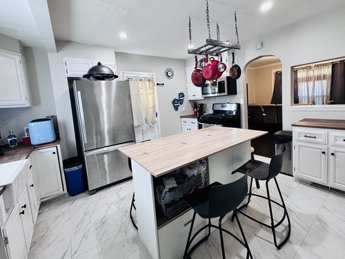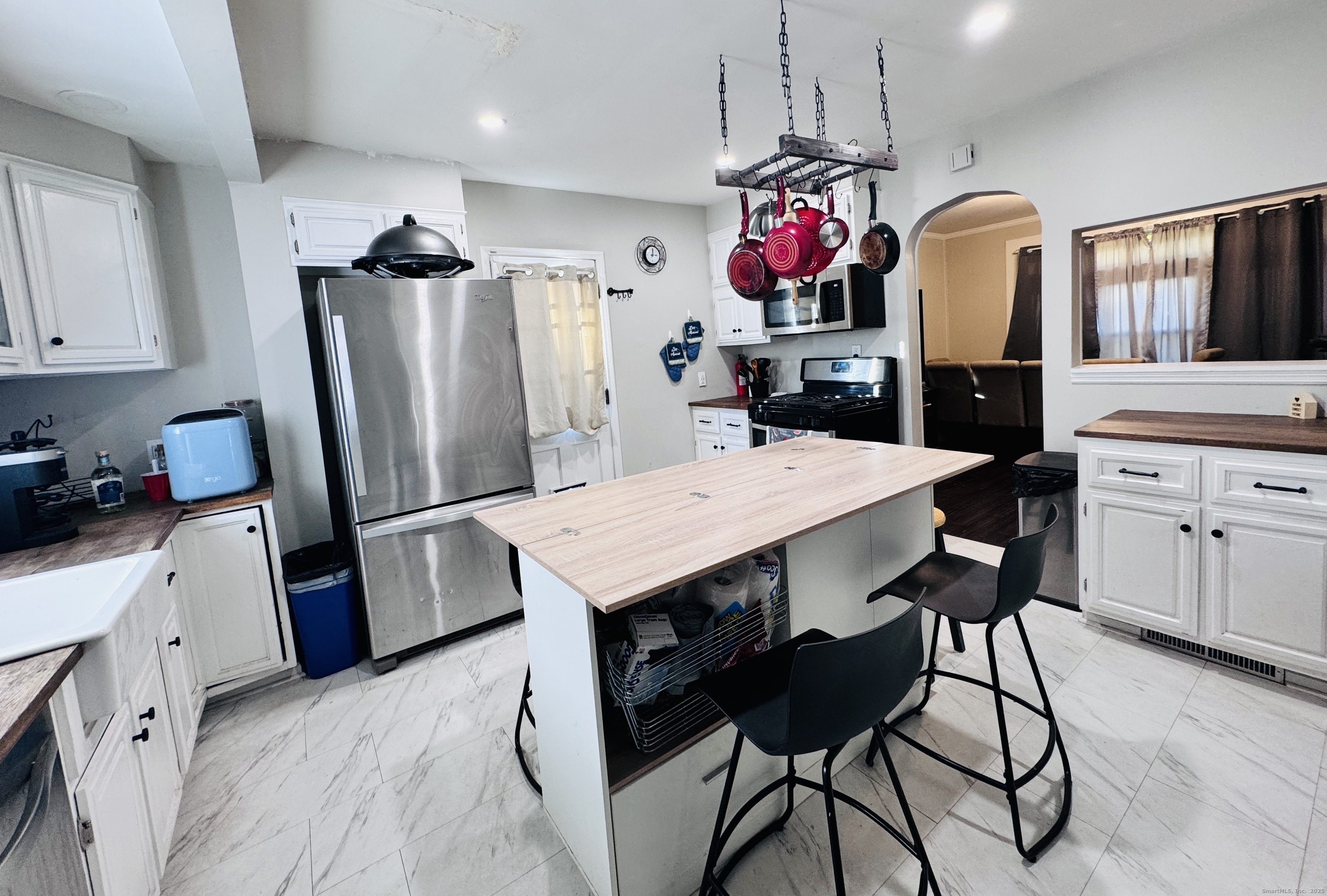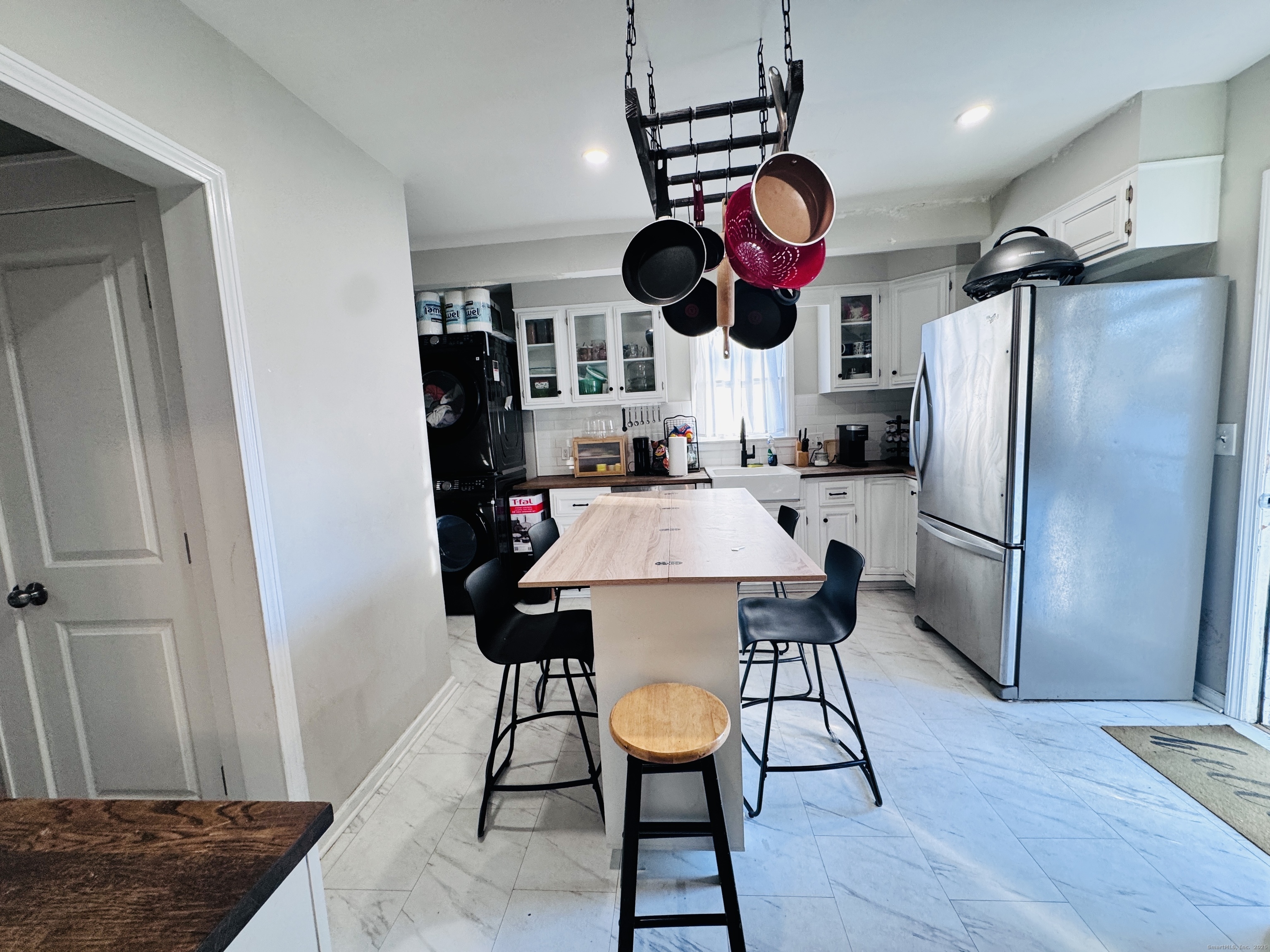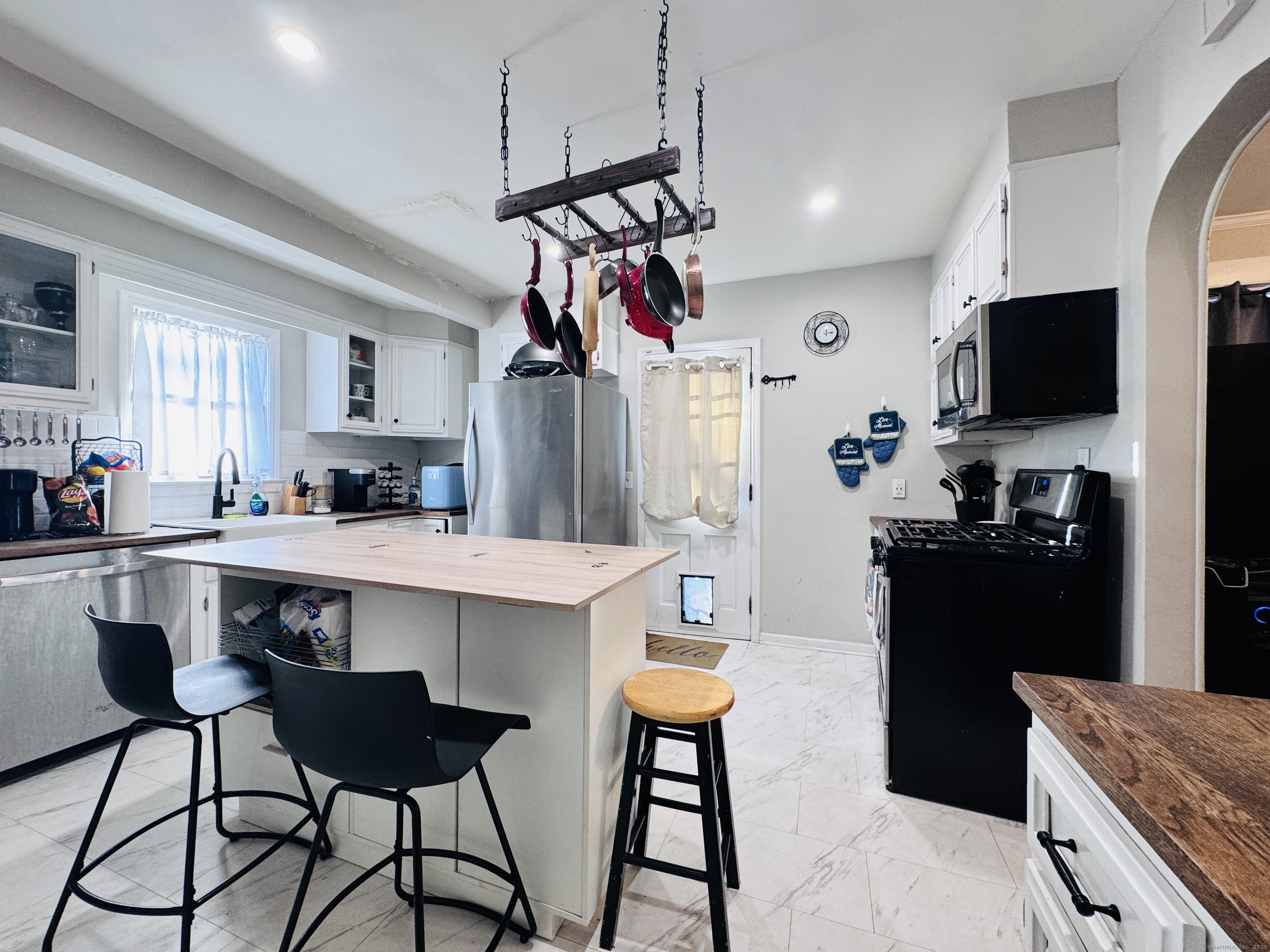 Welcome home to this charming, beautifully updated Colonial! From the moment you step inside, you'll be greeted by a bright, airy atmosphere-perfect for everyday living and effortless entertaining. This inviting 3-bedroom, 1.5-bath home features hardwood floors through-out, recessed lighting, and a stylishly updated kitchen complete with a farm sink, butcher block counters, and stainless steel appliances. Upstairs, you'll find three good sized bedrooms, an updated full bath, and a convenient pull-down attic for extra storage. There's also a full basement, offering even more storage or potential future use. Outside, the level fenced backyard is ideal for relaxing, playing, or hosting, it's all in a great location you're sure to love. Move right in and enjoy!
