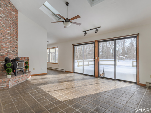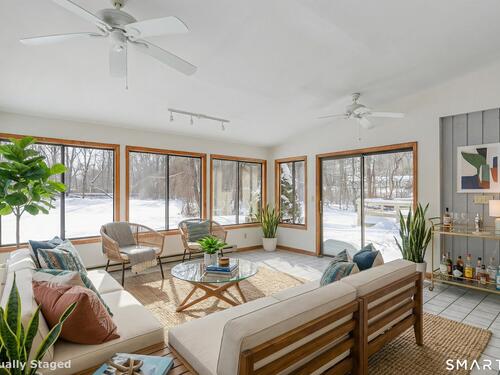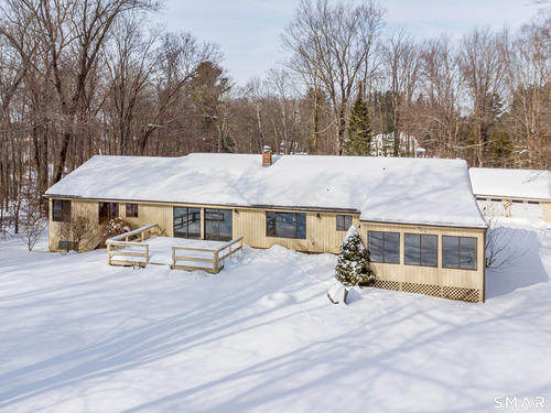 HIGHEST & BEST PLEASE BY WEDNESDAY, FEBRUARY 3rd at 5:00 PM. Nature lives here........ A tree lined driveway nestled in the woods leads to a setting making you feel like you are a world away. Step inside to this sun drenched sprawling ranch offering privacy yet convenient to everything. The welcoming foyer leads to a spacious well lit living room and formal dining room grounded by gleaming hardwood floors. The dramatic family room crowned by a soaring ceiling along with 2 skylights making winter nights cozy when sitting next to the warm wood stove. Step through 2 sets of sliders to an oversized deck perfect for barbecues and stargazing. Don't miss the oversized sunroom with perimeter windows overlooking views of the level backyard. Car lovers will appreciate the additional 2 car detached garage also ideal for storage. Need more space? Bring your imagination to the lower level which can be finished giving you more room. Brand new roof January 2026. Only a few minutes to the sought after quaint village of Bethel known for its historic PT Barnum Square, award winning Dr. Mikes ice cream, restaurants, coffee shops, Bethel train station, boutique shopping ,and more. Only a quick trip to Target & I-84. Excellent Lower Fairfield County commute. Peaceful tranquility awaits you.