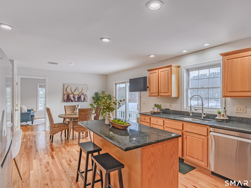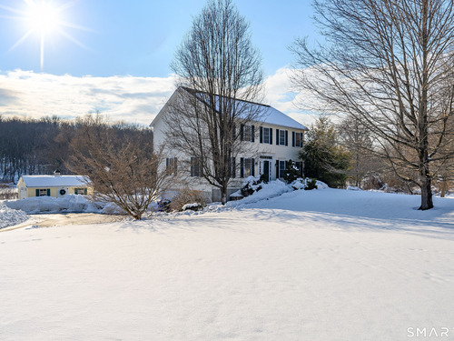 Welcome to 73 Dodgingtown Road, a beautifully maintained 2001 Colonial set on a level lot with wonderful outdoor living. Step inside to a bright, comfortable layout with 4 bedrooms, 2 and a half baths, designed for everyday ease and entertaining. The great room features vaulted ceilings, a fireplace, and abundant natural sunlight, creating a warm and inviting gathering space. The main level also offers a formal dining room, a home office, and a den or playroom, all flowing to an open kitchen with a center island, workstation, pantry, and an eat in area, plus access to the deck. Recent updates include fresh paint throughout, new carpeting, and updated lighting with high hat fixtures that add a clean, modern feel. Outdoors, enjoy the deck with awning for shade and relaxation, plus raised bed gardens ready for spring planting. The walk out lower level offers excellent expansion area. Generator panel is ready to be hooked up, not currently operational. Conveniently located close to schools, shopping, and commuter routes for easy daily living.