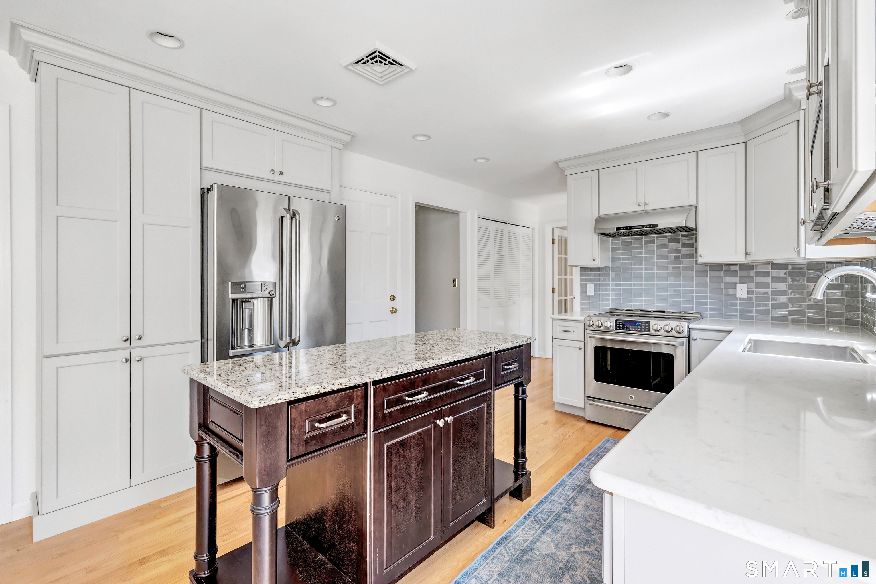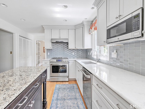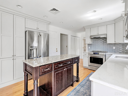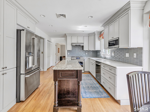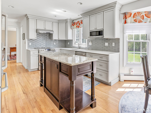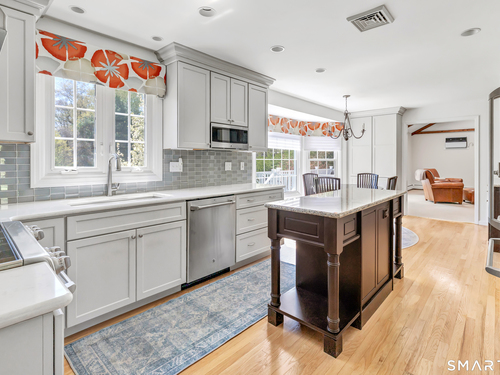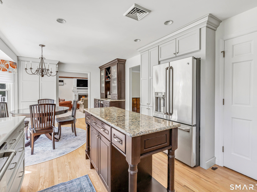 Eat In Kitchen (Main Level)Remodeled, Bay/Bow Window, Granite Counters, Quartz Counters, Island, Hardwood Floor