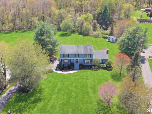 EXCEPTIONAL 4 bedroom, 2.5 bath Colonial offering 2709 sqft of beautifully updated living space plus 682+/- sqft in the amazing, walk out lower level! Every inch of this home has been upgraded, making this home truly "turn-key". The renovated eat-in kitchen features hardwood floors, granite & Quartz counters, a center island, glass subway tile backsplash, SS appliances & a beverage cooler! Enjoy the spacious family room w soaring cathedral ceilings, cozy fireplace & French doors that open to a private back deck. The main level features a formal LR, elegant DR & a convenient 1st floor office all with hardwood floors. Upstairs, you'll find 4 generously sized bedrooms (all with hardwood floors), including a serene primary suite w a beautifully renovated full bath & walk in closet. The finished lower level offers additional living space & sliding glass doors leading to a bluestone patio. Set on a beautifully landscaped LEVEL, 1.25 acre offering space, a lovely shed & privacy while maintaining a prime central location. Stunning stone work, a bluestone patio & walkways, professionally landscaped gardens & a fire pit make this property perfect for every day living & entertaining. Updates include: exterior paint, windows, HVAC, roof, front entry, driveway..., the list goes on! This home truly has it all: style, space & modern updates. CITY WATER. A must see.