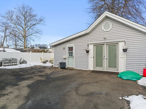 Just blocks from the beach, this updated 3-bedroom Cape on a cul-de-sac offers versatile living spaces and modern amenities. The eat-in kitchen features new appliances, while the dining room includes a charming built-in corner cabinet. An enclosed porch provides additional space for relaxing or entertaining. Two bedrooms upstairs feature sky-lights, vaulted ceilings, and built-ins, while the first-floor bedroom allows for easy access to main living areas. A cozy detached cottage could be used as a potential in-law suite. Enjoy more space to entertain in the fully-fenced backyard featuring a fire-pit. Classic Cape charm meets modern comfort in a prime Stamford location. Minutes to I-95, Stamford train station, Cove Island Park, and downtown dining, shopping, and entertainment. Seller is open to a rent-to-own option. Listing agent related to seller.