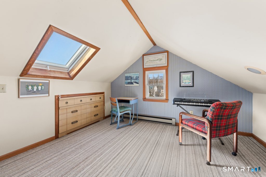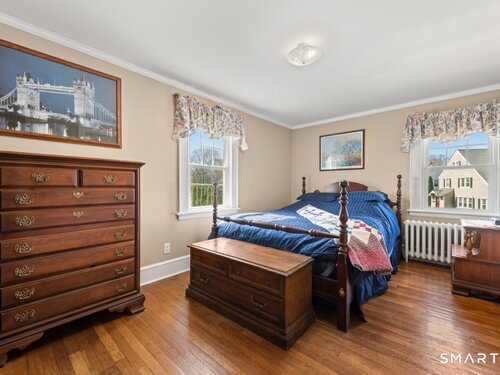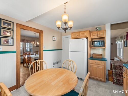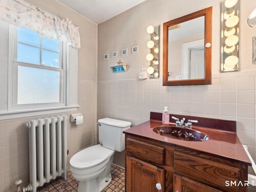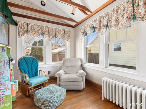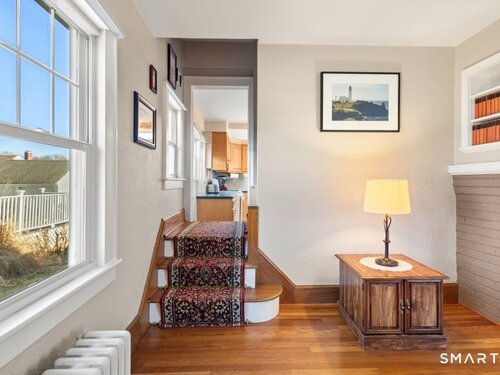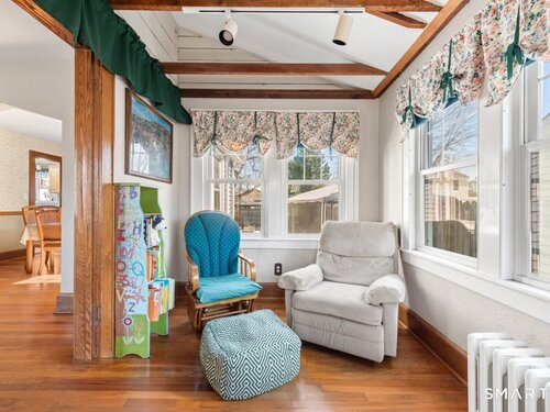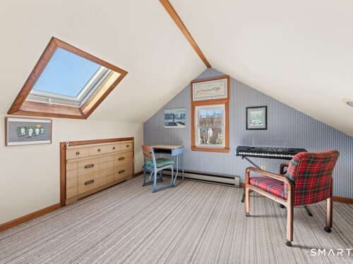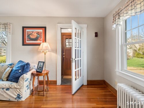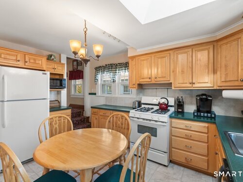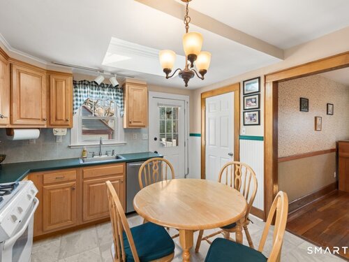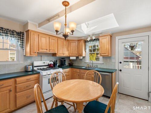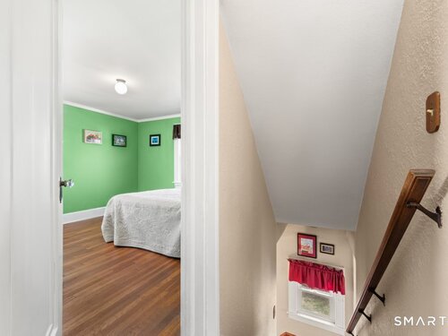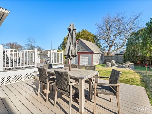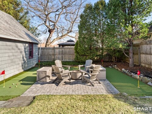 Set in Stratford's sought-after Paradise Green neighborhood, this charming vintage Colonial offers a location that is hard to beat-walkable to the Green, close to a neighborhood pond, and tucked into a quiet, desirable area. With inviting curb appeal, fresh exterior updates, and a backyard featuring a small putting green, this home blends character and comfort inside and out. A newly updated two tiered deck overlooking the yard is sure to be your go to summer spot. Lovingly maintained by long-time owners, the home is filled with timeless details including original molding, hardwood flooring, vintage door knobs, and a cozy fireplace in the living room. A sun porch just off the living room offers a bright place to relax, while the dining room sits conveniently beside the eat-in kitchen with skylight. Hardwood flooring runs through most of the main level, which also includes a convenient half bath. Upstairs are three bedrooms, all with hardwood floors, and a spacious full bath with tub. The finished attic provides great flex space for a home office, playroom, or studio. A basement offers storage or workshop potential, and the detached two-car garage adds even more utility. Recent updates include roof, siding, 200 Amp service, windows, deck and natural gas boiler. A special home in a beloved neighborhood