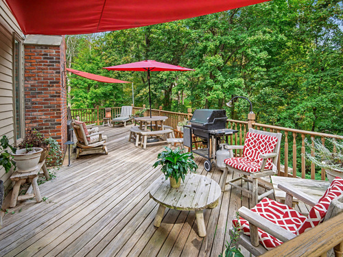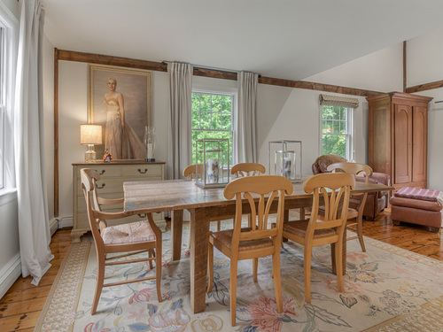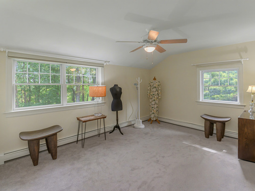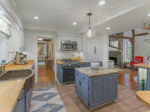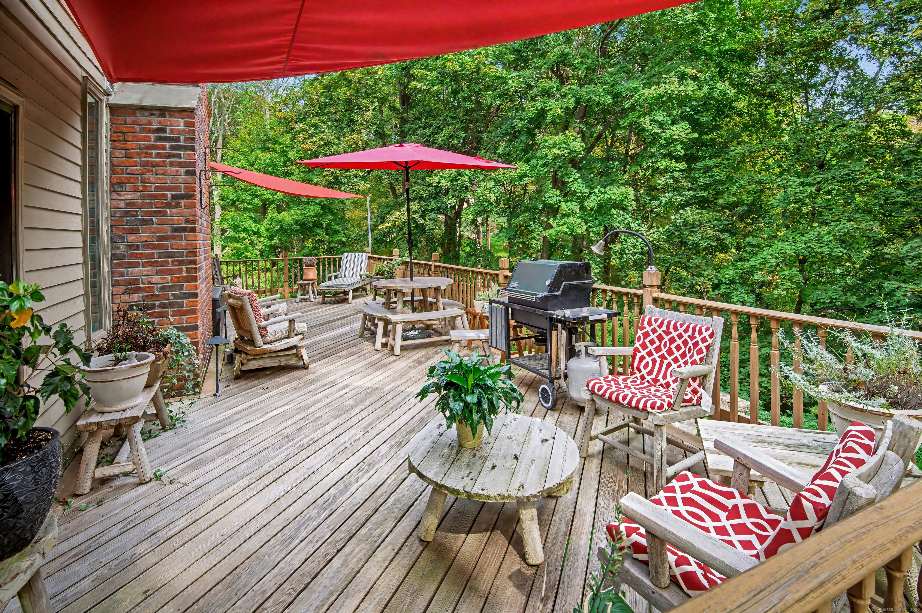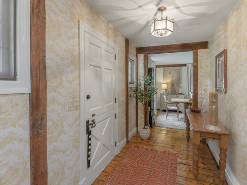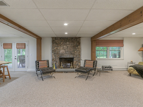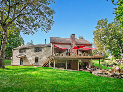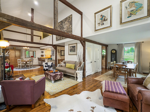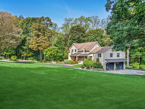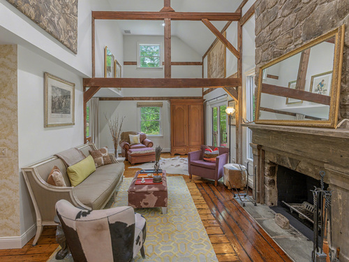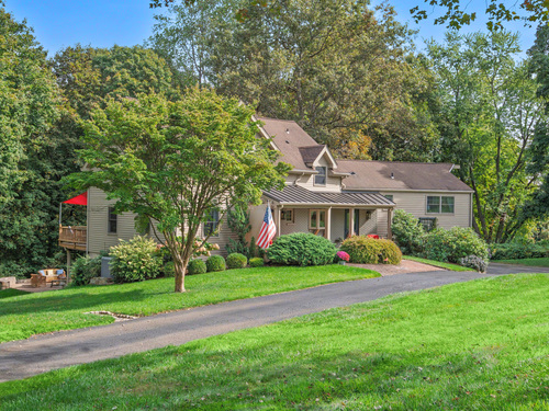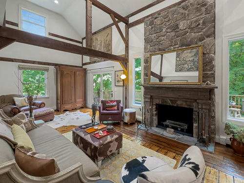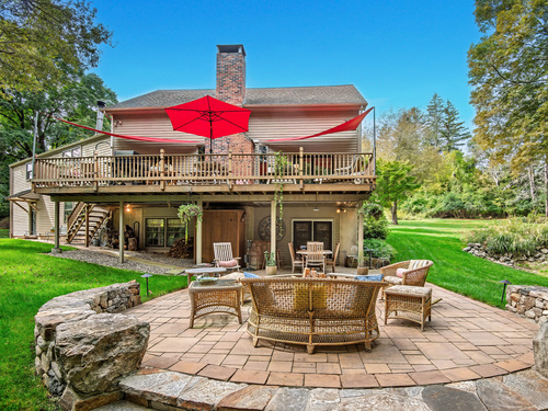 Welcome to 75 Saint Johns Road! Tucked away at the end of a quiet cul-de-sac on Ridgefield's desirable south side, this unique property offers rare privacy with an adjacent open space backdrop. Originally the barn for the historic Hillscroft Farm, the structure was thoughtfully converted to a residence in 1976 with a poured concrete foundation and steel (H&I beam) reinforcement, blending character with long-lasting stability. The main level exudes warmth and sophistication with soaring ceilings, exposed beams, and a wood-burning fireplace creating a cozy gathering space. An expansive walkout deck invites al fresco dining and relaxation. The newly updated kitchen features custom soft-close cabinetry, a hand-hammered copper farmhouse sink, Bertazzoni range, and Liebherr refrigerator-an ideal space for both everyday living and entertaining. Upstairs, the private primary suite offers a dressing room and renovated full bath. Three additional bedrooms and a full hall bath complete this level. The lower level is designed for comfort with a second fireplace, perfect for movie nights, plus an office nook, laundry, and direct access to the two-car garage. Outdoor living is equally inviting with a welcoming front porch, stone patio, and tree-lined surroundings. Don't miss the chance to own this one-of-a-kind Ridgefield home, schedule your showing today!