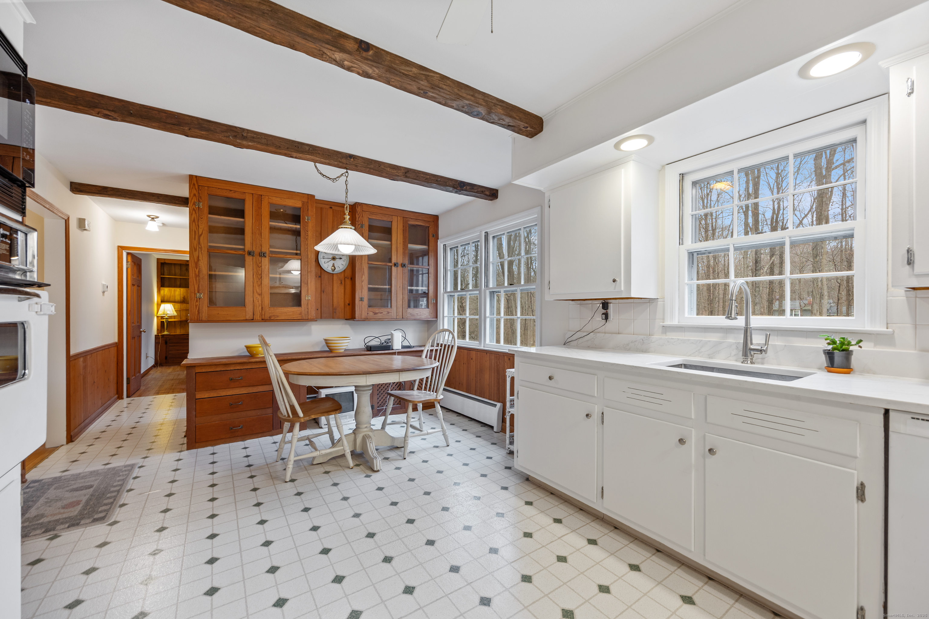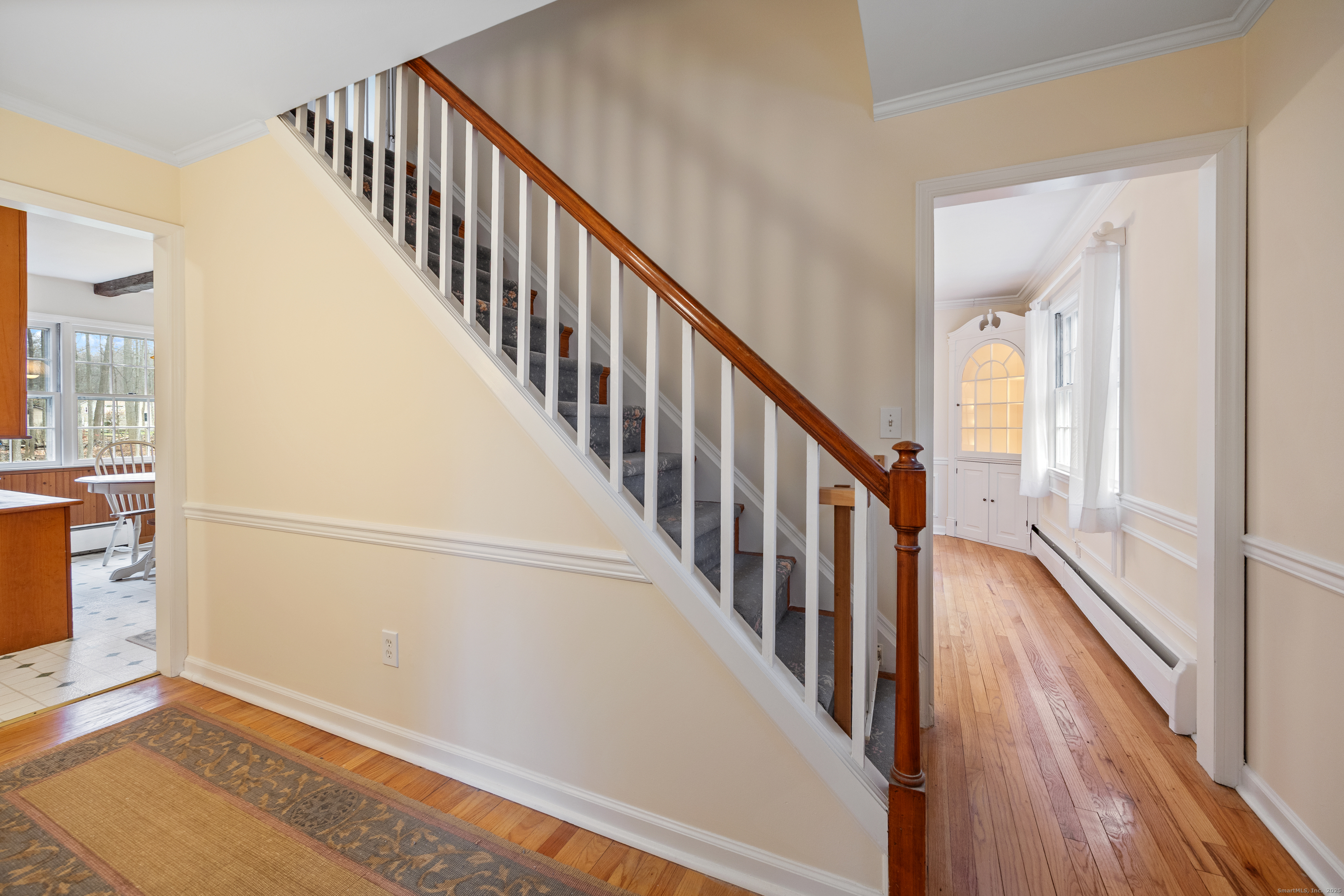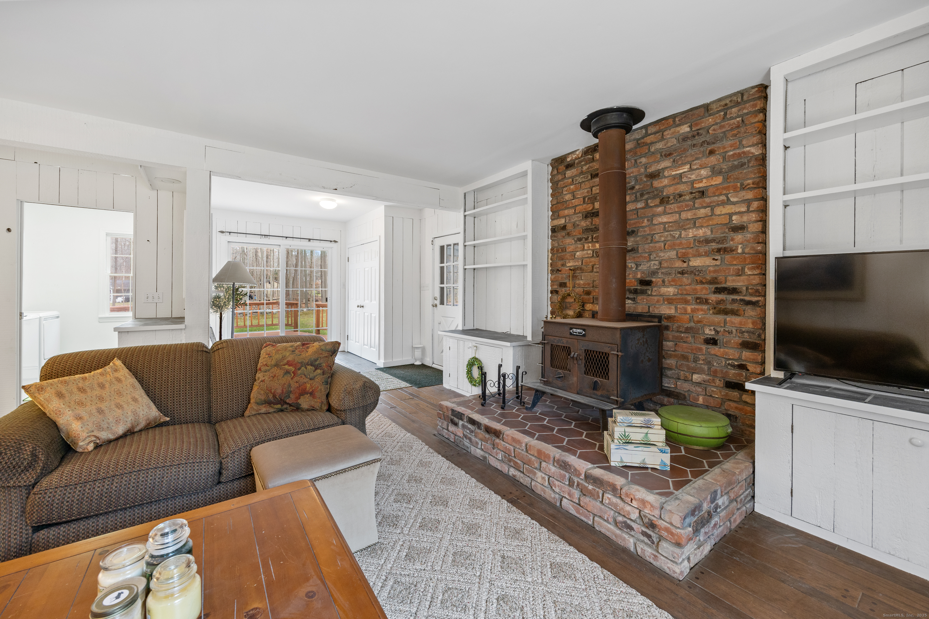 Welcome to Northern Ridgefield, where quiet country living meets unbeatable convenience. Set on a beautifully level one-acre lot, this warm and spacious Cape offers over 2,500 sq ft of living space PLUS an additional 420 sq ft of heated, walk-out lower-level space-perfect for today's flexible lifestyle. Inside, you'll find fresh paint throughout, hardwood floors on both levels, and abundant natural light. The oversized living room instantly impresses with its classic brick fireplace and large bay window, creating the perfect gathering space. A generous family room features a wood-burning stove, bow window, and sliders leading to a huge deck overlooking the property-ideal for outdoor dining, morning coffee, or weekend entertaining. The main level includes a versatile bedroom that doubles beautifully as a dedicated WFH office, offering privacy and functionality. Upstairs, you'll find three comfortable bedrooms, including a primary suite, all with hardwood floors and excellent natural light. The heated, walk-out lower level adds 420 sq ft of valuable extra space-ideal for a playroom, media area, gym, or hobby room, with easy potential to tailor it to your needs. Located in sought-after Northern Ridgefield, this home offers quick access to Danbury's retail corridor (Trader Joe's, Costco, restaurants, entertainment) and an easy commute to North Salem, Lewisboro, Katonah, and other Westchester towns. Just minutes to local farms, orchards, scenic walking trails,and Ridgefield's