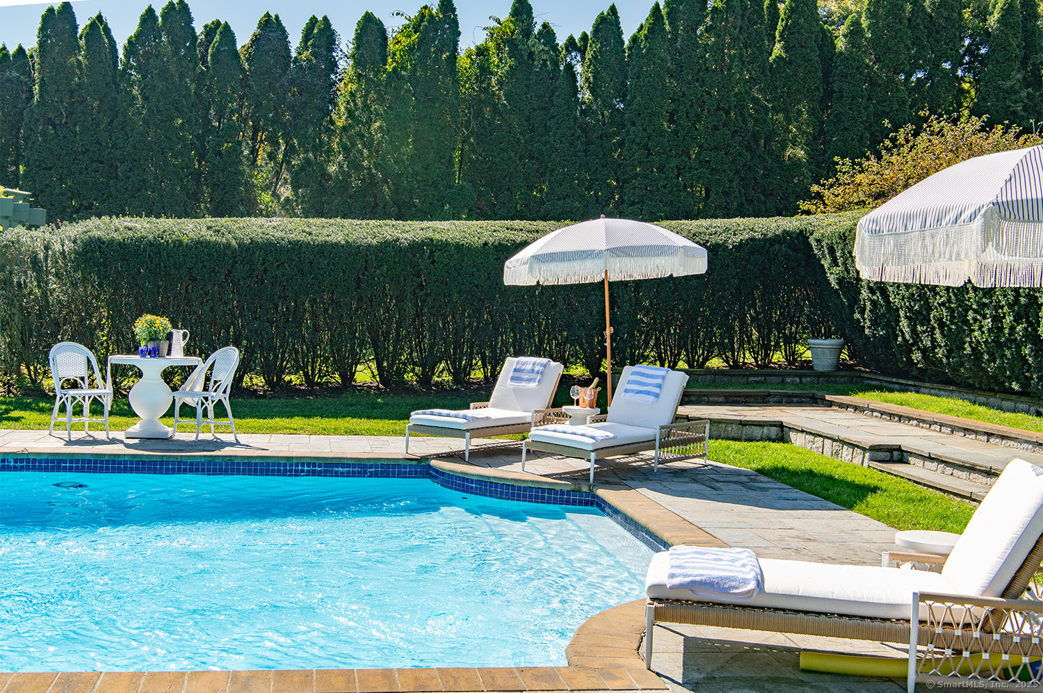 Exceptional listing at 775 Sasco Hill Road - a home that seamlessly blends timeless elegance with modern luxury. Completely updated and impeccably decorated by the current owners, this residence offers three full levels of sophisticated living. Upon entering, you're greeted by a stunning cathedral ceiling in the foyer, with 9-foot ceilings throughout the main levels that create an airy, open feel. The thoughtfully designed floor plan includes a formal living and dining room, a private library, and an open-concept kitchen that flows into the large oversize family room with vaulted ceiling - ideal for both everyday living and entertaining. Accommodations include a guest suite located above the garage, a luxurious primary suite with two walk-in closets plus beautifully appointed ensuite bath, and two additional second-floor ensuite bedrooms. The third floor offers a versatile bonus space complete with a private bedroom, full bath, large walk-in closet and plenty of space for movie nights, playtime, or a home office. Outdoors, enjoy the serenity of a large stone patio, which leads into meticulously landscaped gardens and a gunite pool, complemented by a storage shed-all set within the park like grounds on 5 private acres. Extensive upgrades have been made throughout the home and property, enhancing both functionality and aesthetics. Step into your own private oasis where peace and tranquility meets everyday living.