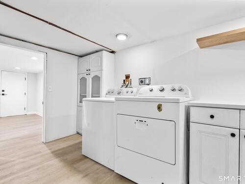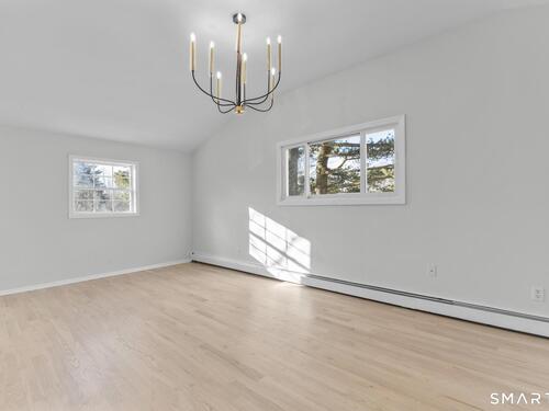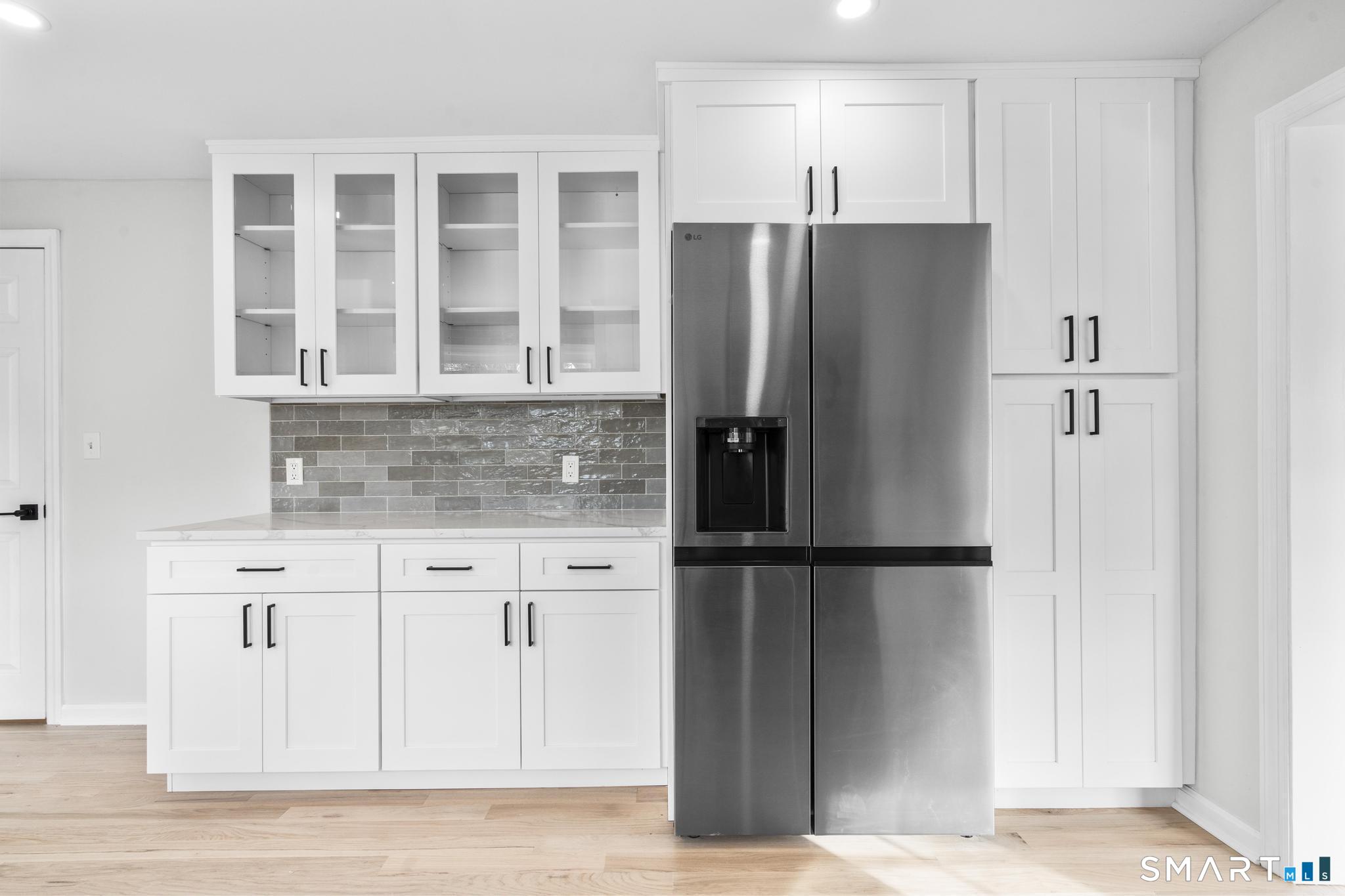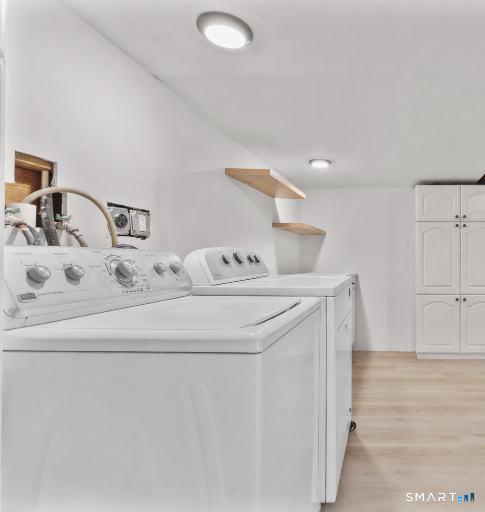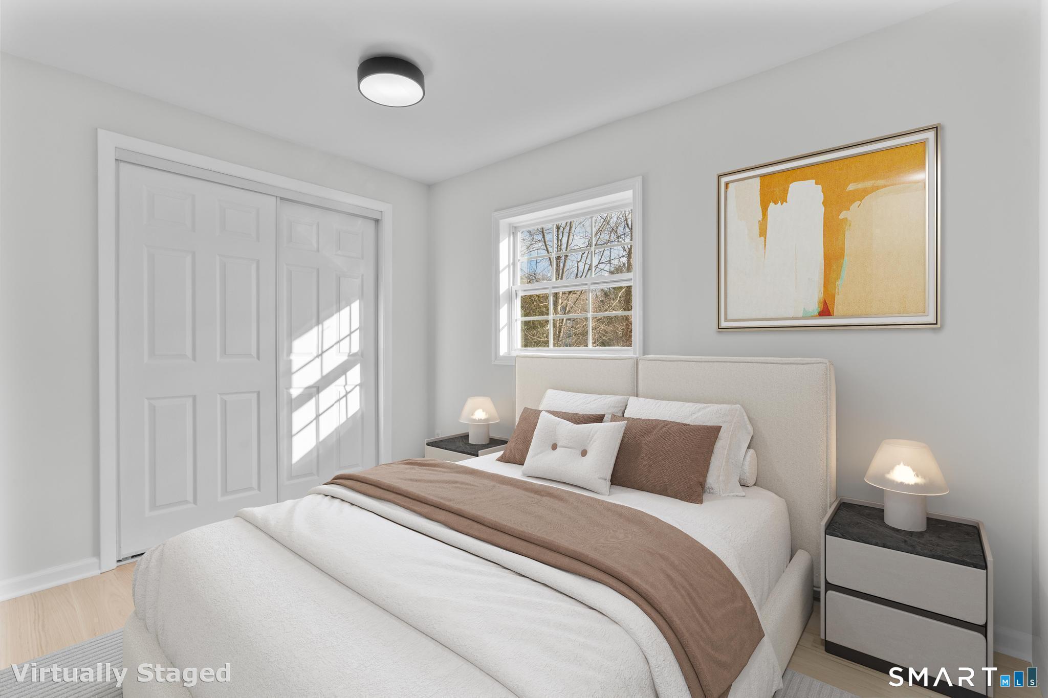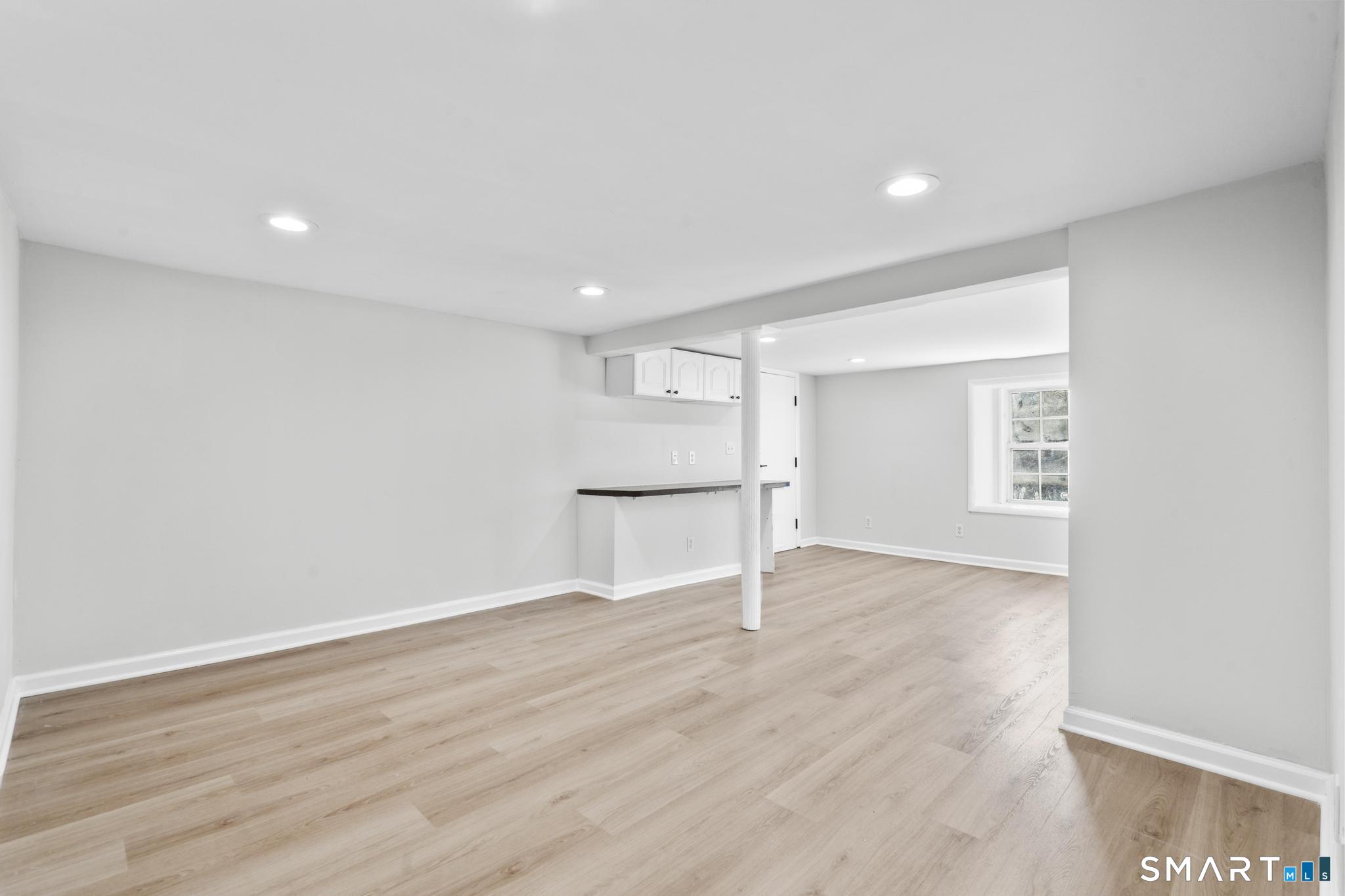 Welcome to this fully renovated 4 bedroom, 2 bath Colonial ideally located in the heart of Springdale. A charming front porch with a sleek standing seam metal roof creates a striking first impression and leads into a bright, oversized living room filled with natural light. An oversized sliding glass door opens to a brand new Trex style deck overlooking the backyard, creating a seamless flow for indoor and outdoor living. The stunning modern kitchen features shaker cabinetry w/ soft close drawers, quartz countertops, stainless steel appliances - a clean, timeless design. Adjacent to the kitchen is a dedicated dining area, along w/ a versatile 1st floor bedroom and/or home office w/ a beautifully renovated full bath featuring a stylish walk in shower. Upstairs, a luxurious primary suite offers vaulted ceilings & a spacious walk in closet. Two additional bedrooms and a brand new hall bath complete w/ a dual vanity, soaking tub, & sophisticated finishes. The lower level provides excellent flex space perfect for a den or playroom, with direct walk out access to the backyard. A well appointed laundry area with folding station, abundant basement storage, and additional attic storage enhance the home's functionality. Natural gas, city water, and city sewer, perfectly positioned on a quiet street just minutes from the Springdale train station, local shops, restaurants, downtown Stamford, and convenient access to both I95 and the Merritt Parkway. Modern living at its finest!