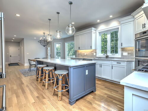 Welcome to your dream home in Trumbull's sought-after Tashua Tree Farm - where refined design meets everyday comfort. Built less than three years ago, this exceptional colonial offers 4,400+ sq ft of living space plus 1,350 sq ft in the finished walk-out lower level. With 5 BRs, 4 full baths, and 2 half baths, it blends elegance, flexibility, and comfort. At the heart of the home, the chef's kitchen shines with white cabinetry, a bold blue island, quartz countertops, and a pantry. It opens to a bright family room with fireplace and a sunroom that doubles as a second office. A main-level office provides quiet workspace, while the dining and family rooms create ideal entertaining flow. The primary suite is a peaceful retreat with a large walk-in closet and spa-like bath. Upstairs includes four additional bedrooms and three full baths, featuring an en-suite, a Jack-and-Jill, and a hallway bath. A spacious laundry room and walk-up attic add convenience and future potential. Off the three-car garage, a custom mudroom with built-in bench, cubbies, and a stylish half bath adds practical charm. Outside, a massive deck spans the width of the home-perfect for dining, entertaining, or relaxing while overlooking trees, sunset skies, and seasonal reservoir views. The level, park-like lot offers privacy and room for a future pool. Enjoy proximity to the Tashua Knolls Recreation Complex with golf, tennis, pickleball, playgrounds, and top-rated Trumbull schools nearby.