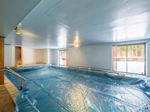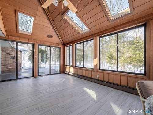 Beautiful large rambling brick ranch home in a beautiful setting on coveted Ruscoe Road. Large finished basement with an in-ground pool and full kitchen with fireplace. Four larger, light & bright bedrooms with lovely hardwood floors throughout. Oversized kitchen on main floor with fireplace and living room also with a fireplace. Light & bright home with extensive windows bringing the outside in. Gorgeous property with many plantings. Situated down a long driveway with privacy, yet only 7 minutes to Wilton Town Center. A unique opportunity to enjoy an incredible and cool home!