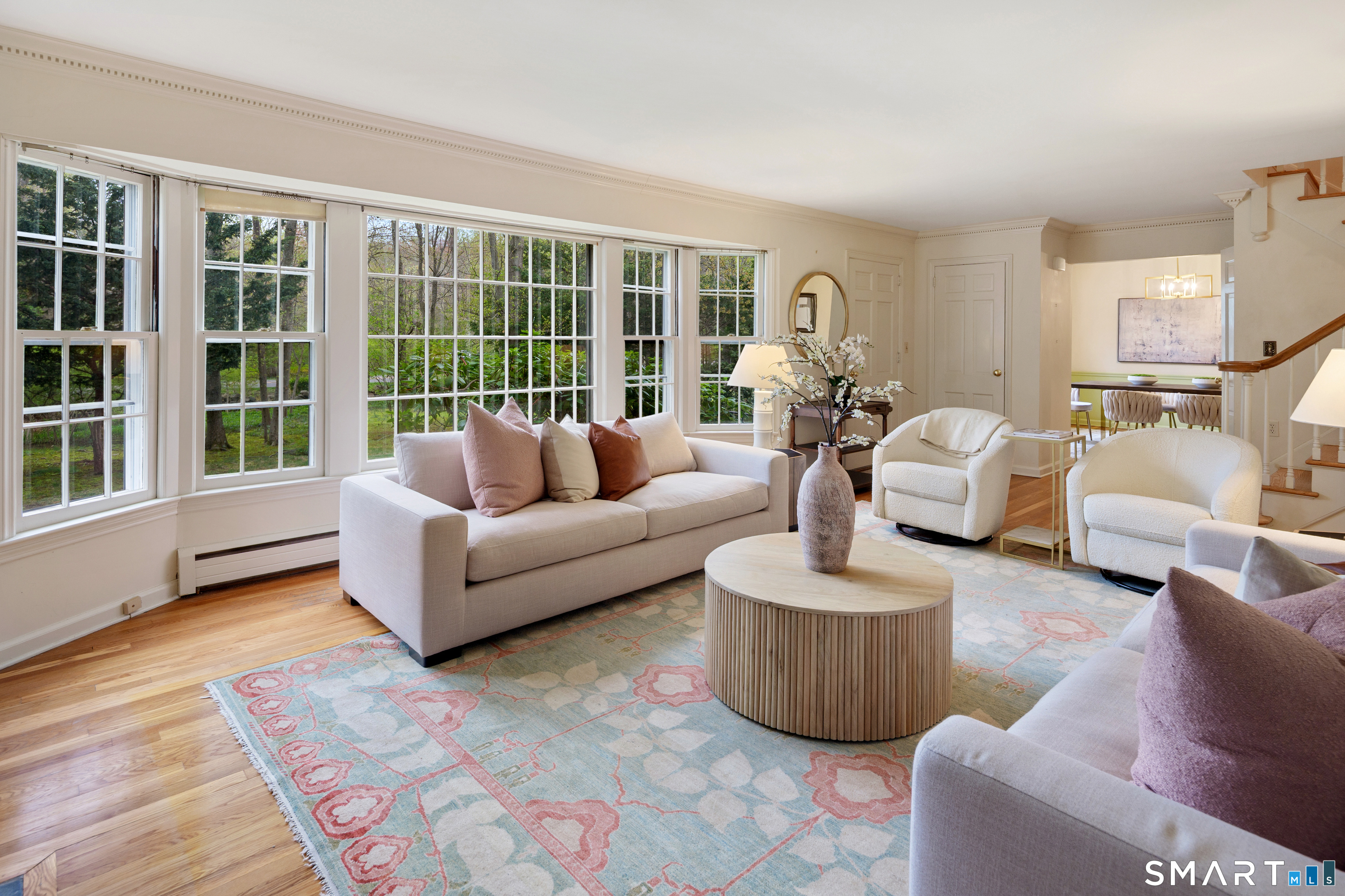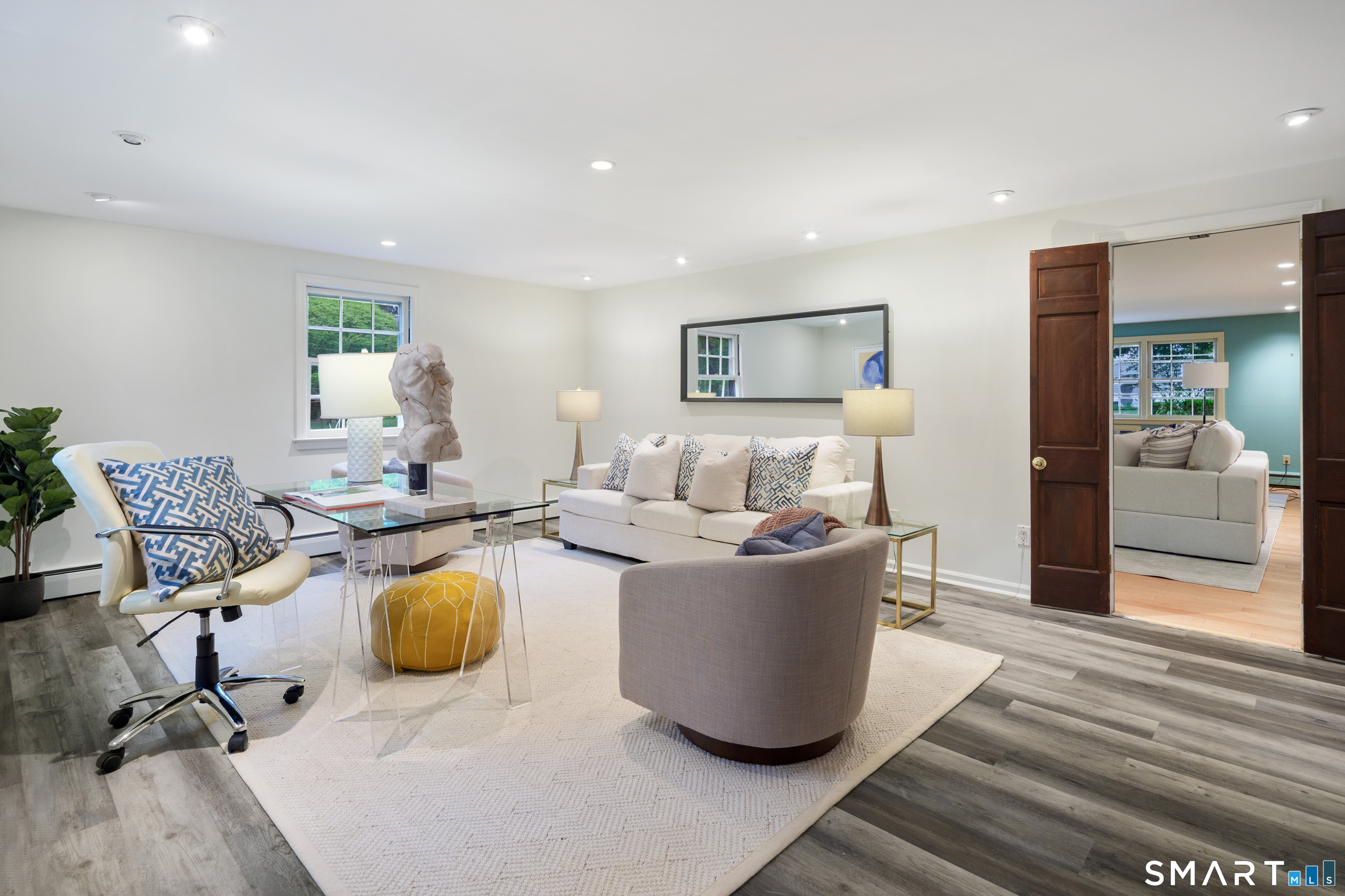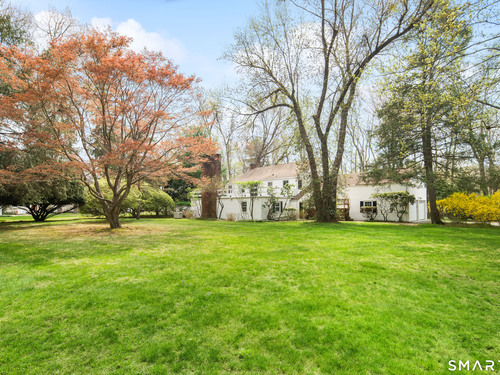 Nestled on a beautiful one acre lot, this charming home blends comfort and convenience. This home has been cherished by the same family for over 44 years. The bright main level flows easily through the living spaces, while the expansive lower level becomes the heart of the home with its spacious family room with fireplace and beautiful built-ins, private office, and fun bar area. Three bedrooms offer peaceful retreats, and the property's wide, open yard invites outdoor play, gardening, or quiet evenings under the trees. A wonderful opportunity to enjoy space inside and out. Amazing location just steps to Waveny Park; leisurely walk to town; convenient to both the Merritt Parkway and train stations; and the most charming New England Village of New Canaan with top ranking schools, restaurants, and shopping.